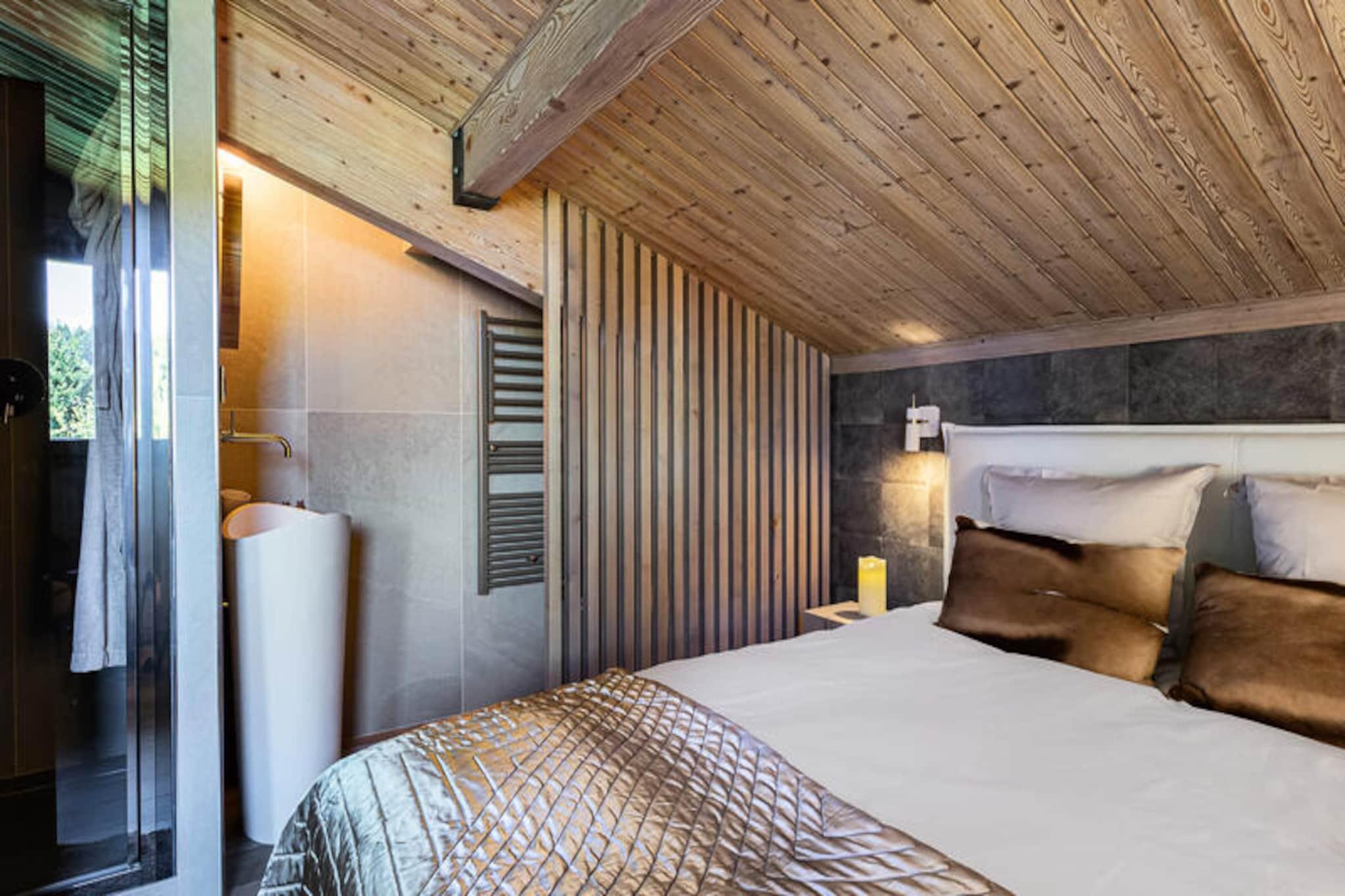 Højt over det charmerende Jaillet-område inviterer denne smukt renoverede lejlighed dig til at opleve magien ved Megève med stil. Med sin førsteklasses beliggenhed på øverste etage i Aravis-residensen kan du nyde en betagende udsigt over de omkringliggende pister og den bekvemme adgang til ski-in/ski-out. Uanset om du er her for at grave dig gennem frisk puddersne eller udforske den pulserende landsby, er dette dit perfekte alpine tilflugtssted. \n\nIndenfor blander lejligheden moderne design med autentisk bjergcharme. Detaljer i genbrugstræ og sten skaber en varm og indbydende atmosfære, mens det åbne køkken og spisestue gør det nemt at samles til måltider efter en dag med eventyr. Stuen, komplet med en hyggelig pejs og tv, er det ideelle sted at slappe af. Med tre gennemtænkt designede soveværelser, herunder et unikt triplex-værelse og et luksuriøst dobbeltværelse med eget badeværelse, kan ejendommen komfortabelt rumme op til syv gæster. En privat balkon tilbyder et roligt sted at nyde udsigten, og den underjordiske parkering sikrer problemfri ankomst. \n\nBeliggenheden er kun 400 meter fra Jaillet-gondolen og skiskolen, og beliggenheden kunne ikke være mere bekvem. Sportsarenaen og mediebiblioteket ligger en kort gåtur væk, mens Megèves fortryllende landsbycentrum er inden for rækkevidde, hvor der tilbydes butikker, gourmetrestauranter og kulturelle oplevelser. I alle årstider placerer denne lejlighed dig i hjertet af begivenhederne, samtidig med at den tilbyder et fredeligt fristed at vende tilbage til. \n\nUanset om du søger spændende skidage, naturskønne vandreture eller blot en luksuriøs flugt i Alperne, lover denne ejendom et uforglemmeligt ophold i en af ??Frankrigs mest ikoniske bjergdestinationer.
