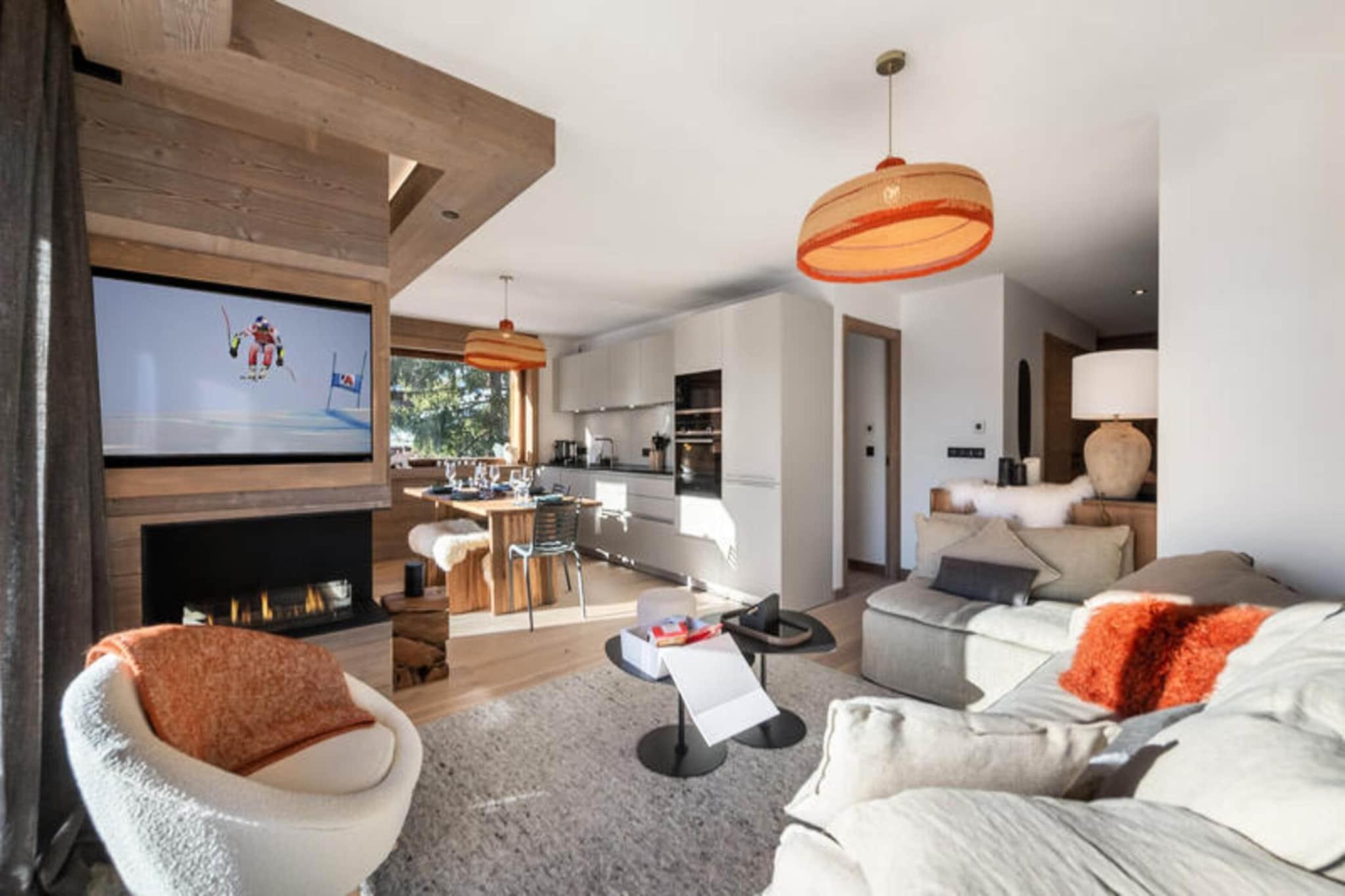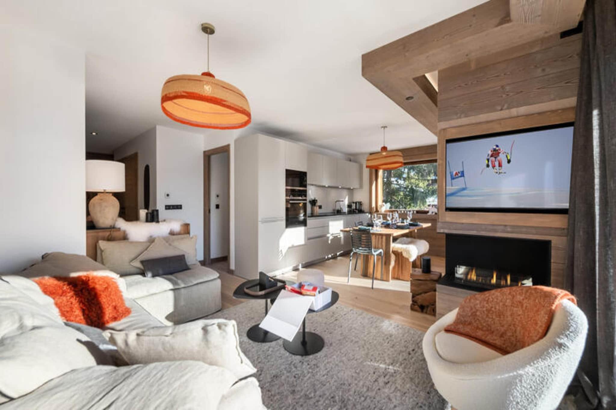 Beliggende kun få minutter fra Mont d'Arbois-svævebanen, er Ksar en prestigefyldt bjergresidens designet i traditionel Megève-chalet-stil. Denne 68 m² store 3-værelses lejlighed er ideelt beliggende kun 5 minutter til fods fra pisterne og tæt på et shuttlestoppested, der giver nem adgang til centrum af Megève. Den charmerende landsby Megève ligger kun en kort afstand, og tilbyder en række gastronomiske restauranter, kulturelle og sportsbegivenheder og en berømt golfbane. Om vinteren er skiområdet Mont d'Arbois let tilgængeligt, mens området om sommeren er perfekt til vandreture og udendørsaktiviteter. En gratis shuttle-stop er kun 50 meter væk, hvilket gør det endnu mere bekvemt at udforske landsbyen og de omkringliggende attraktioner. Lejligheden kan komfortabelt rumme op til 6 gæster med to soveværelser med dobbeltsenge og en hytte med to køjesenge. Den rummelige opholdsstue har et åbent køkken, spiseplads og opholdsstue, der alle fører til en terrasse udstyret med udendørsmøbler og tilbyder en fantastisk panoramaudsigt over bjergene. Gæsterne kan nyde et wellness-område i boligen, komplet med sauna, hammam og fitnessrum. Yderligere faciliteter omfatter et skiskab med støvletørrere og en overdækket parkeringsplads.