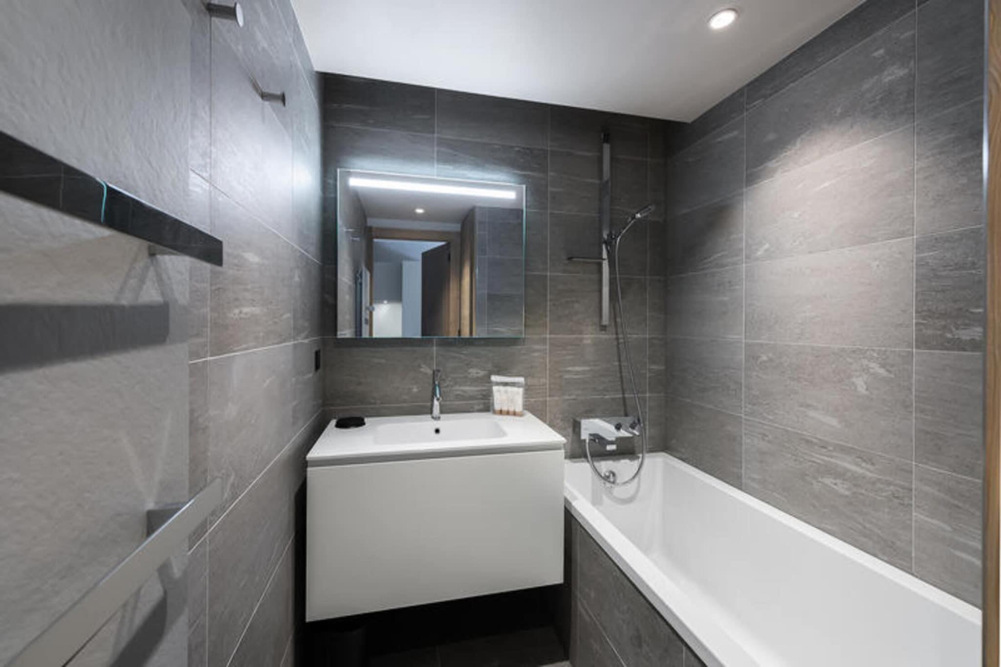 Ejendommen tilbyder sammen med dens moderne funktioner og indbydende atmosfære en charmerende lejlighed, der kan rumme op til 5 gæster. Lejligheden indeholder to soveværelser: et med en dobbeltseng og et en-suite brusebad, og et andet med en dobbeltseng og en køjeseng, hvilket gør den ideel til familier eller små grupper. Den rummelige stue med åbent køkken og spiseplads er designet til komfort og afslapning. Store vinduer oversvømmer rummet med naturligt lys, hvilket skaber en lys og indbydende atmosfære. Boligen tilbyder forskellige gratis faciliteter, herunder adgang til et afslapningsområde med swimmingpool, fitnesscenter og skirum. Bemærk venligst, at kæledyr ikke er tilladt, og at ejendommen er røgfri. Lejligheden er udstyret med en dedikeret parkeringsplads, og yderligere tjenester såsom leje af spahåndklæder og concierge-muligheder er tilgængelige mod et tillægsgebyr. Boligen er ideelt beliggende i det rolige Rochebrune-distrikt, kun 10 minutters kørsel fra centrum af Megève. Gæster har let adgang til Rochebrune-skiliften, hvilket gør den til et godt valg for skientusiaster. MegBus-transportservicen er bekvemt placeret 150 meter fra ejendommen og giver gratis transport til nærliggende områder, herunder byens centrum og skiløjperne. Megève er kendt for sin charmerende alpine landsbyatmosfære, der tilbyder en række restauranter, butikker og udendørs aktiviteter året rundt. Om sommeren er området perfekt til vandreture og mountainbiking, mens det om vinteren bliver en populær destination for skiløb og snowboarding, hvor Portes du Mont-Blanc skiområde tilbyder forskellige pister for alle niveauer. Lejligheden har et åbent køkken med moderne apparater, herunder komfur, ovn, køleskab og opvaskemaskine, hvilket gør det nemt at tilberede måltider under dit ophold. Et separat badeværelse og selvstændige toiletter tilføjer til bekvemmeligheden. Ejendommen omfatter også et skirum til opbevaring af udstyr, og gæsterne kan nyde regelmæssig rengøring to gange om ugen, med linned og håndklæder ved ankomsten. Afslapningsområdet i boligen omfatter en swimmingpool, fitnesscenter, sauna og hammam, hvilket sikrer en række forskellige måder at slappe af efter en dag med udendørs aktiviteter. For gæster, der søger ekstra luksus, er muligheder som badekåbeudlejning, concierge-tjenester og spa-behandlinger tilgængelige efter anmodning.