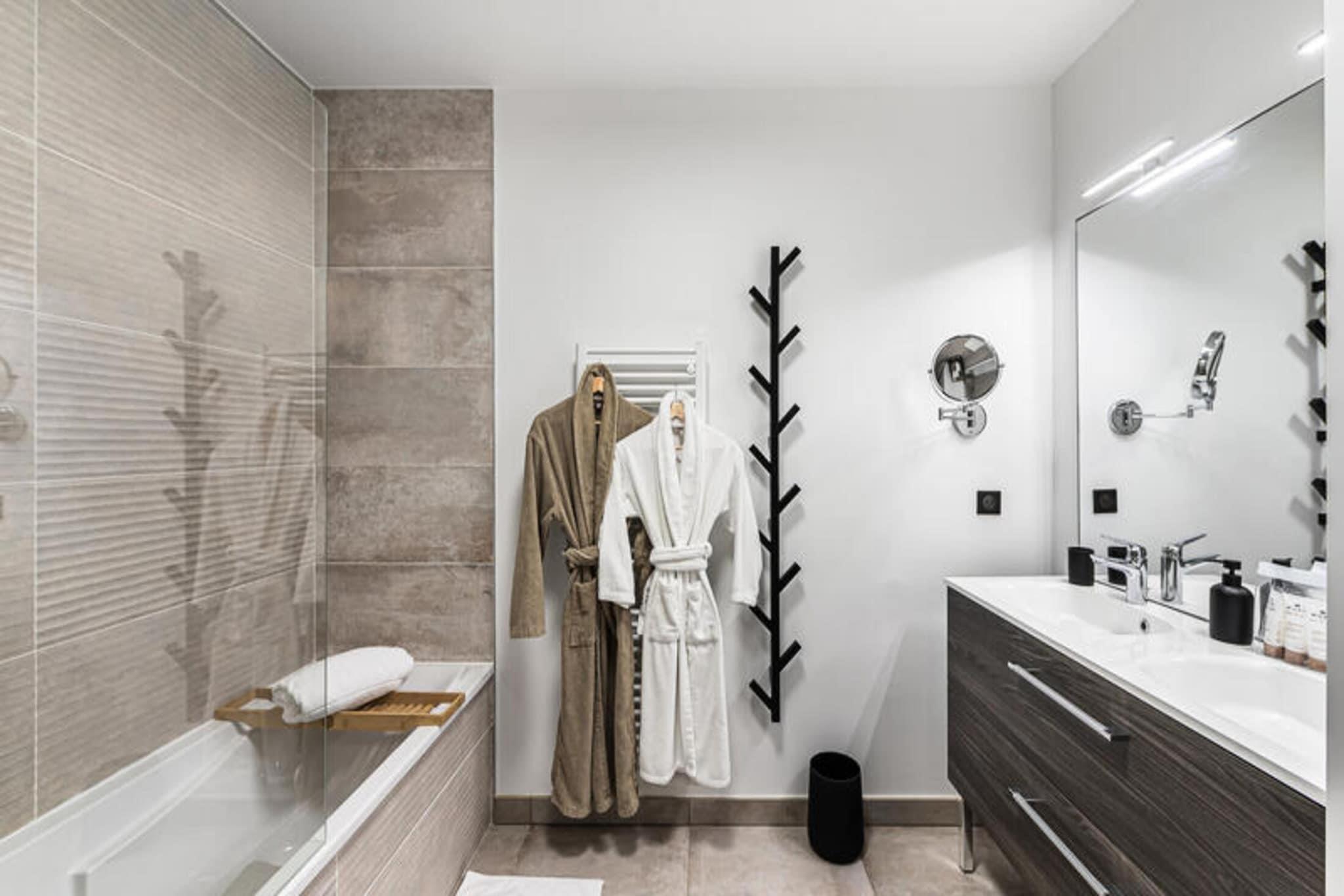 Denne stilfulde 2-værelses lejlighed i Villaret-området i Megève tilbyder et perfekt alpint tilflugtssted for op til 4 personer. Beliggende kun 15 minutters gang fra landsbyens centrum, kan gæsterne nyde både ro og nem adgang til lokale attraktioner. Lejligheden har en rummelig opholdsstue med et fuldt udstyret åbent køkken, ideel til socialt samvær, og en komfortabel lounge. Det store soveværelse er indrettet med en dobbeltseng (160x200), mens det andet soveværelse har to enkeltsenge (90x200), hvilket gør det perfekt til familier eller små grupper. Til lejligheden hører desuden badeværelse med dobbelt håndvask og separat toilet. Boligen er ideelt placeret for vintersportsentusiaster, med nem adgang til Megèves skiløjper, og den charmerende landsby byder på butikker, restauranter og afterski-muligheder. Uanset om du er her for at stå på ski om vinteren eller vandre om sommeren, tilbyder denne lejlighed den perfekte base for dine alpine eventyr. Gæsterne kan slappe af på terrassen, der er udstyret med udendørsmøbler og en smuk udsigt. Yderligere faciliteter omfatter en privat parkeringsplads i garagen, et skiskab for nemheds skyld og regelmæssig rengøring.
