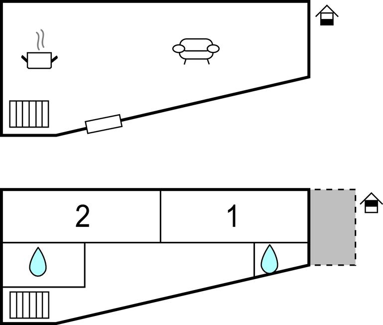 Badeværelse 2m2 (nr. 1) - WC. Varmt og koldt vand. Bruser