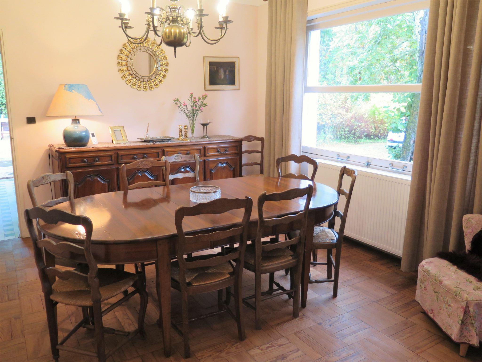 "Le Belon", 7-room house 250 m2 on 2 levels. Comfortable and tasteful furnishings: living/dining room with open-hearth fireplace and dining table. Exit to the terrace. Lounge with open-hearth fireplace (only for decoration), satellite TV (flat screen). 1 room with 1 french bed (160 cm, length 200 cm). 2 rooms, each room with 2 beds (90 cm, length 190 cm). Kitchen (oven, dishwasher, 4 ceramic glass hob hotplates, toaster, kettle, microwave, electric coffee machine) with small dining table. Bathroom, shower/WC, sep. WC, double hand-basin. Upper floor: 1 room with 1 french bed (160 cm, length 200 cm), shower. 1 room with 1 french bed (160 cm, length 200 cm), shower/WC. Electric heating. Parquet floors. 2 terraces. Terrace furniture, barbecue, deck chairs. Beautiful view of the forest. Facilities: washing machine, children's high chair, baby cot for up to 2 year olds. Internet (WiFi, free). Please note: non-smoking house. Maximum 2 pets/ dogs allowed. Smoke alarm. Offer by a private individual according to Art. 155, IV of CGI.