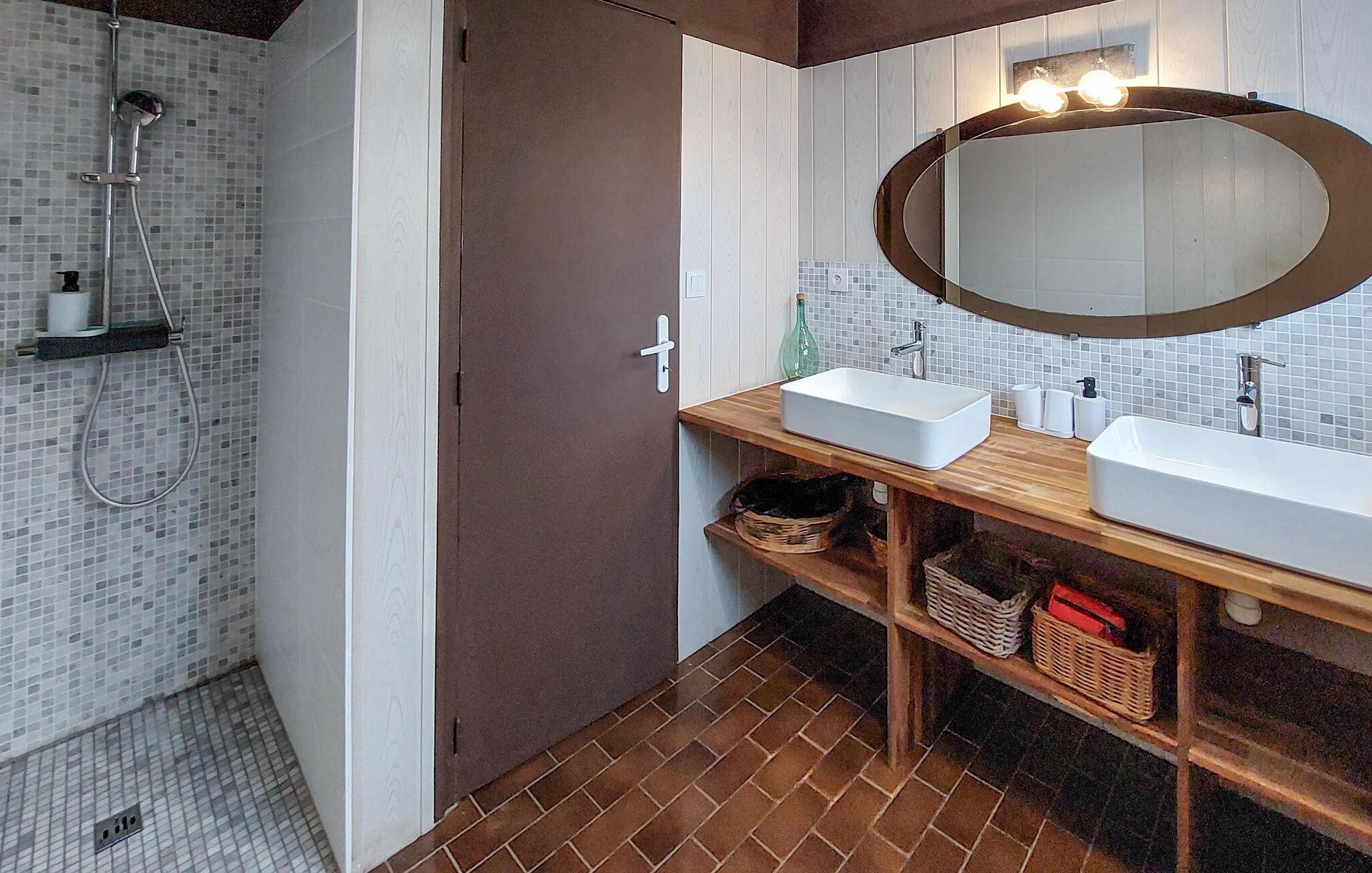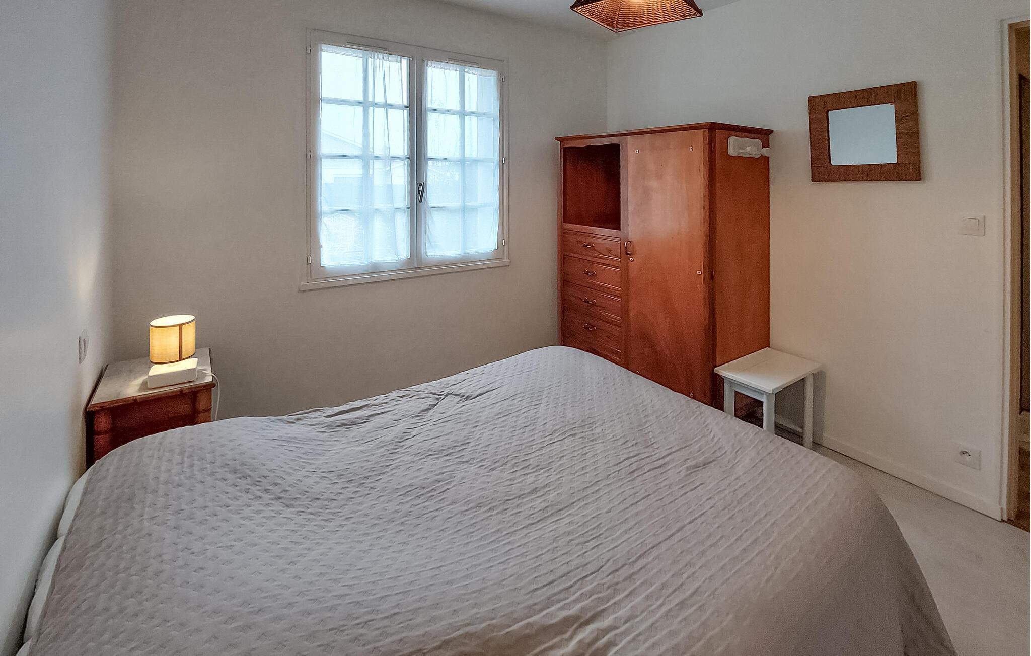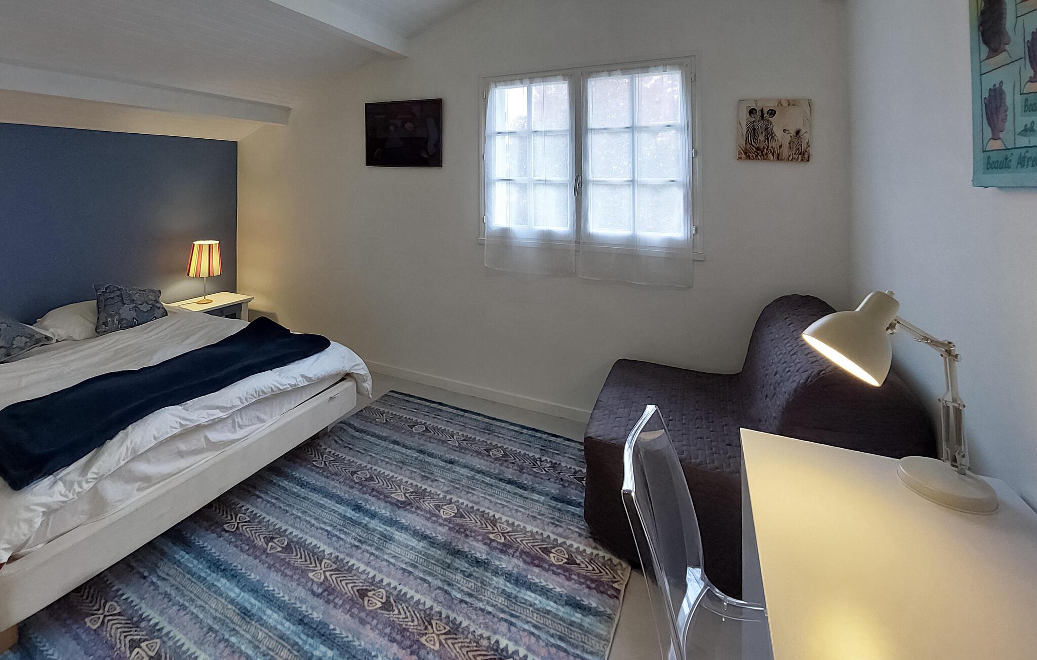 Dette rummelige feriehus byder jer velkommen med en hyggelig atmosfære og tilbyder masser af plads til en hyggelig ferie med en større familie eller en gruppe venner. Glæd jer til at lave mad i det charmerende køkken og planlægge jeres eventyr over fælles måltider ved det indbydende spisebord. Efter en begivenhedsrig dag kan I slappe af med en spilleaften eller nyde en god samtale over et glas vin i den komfortable stue.