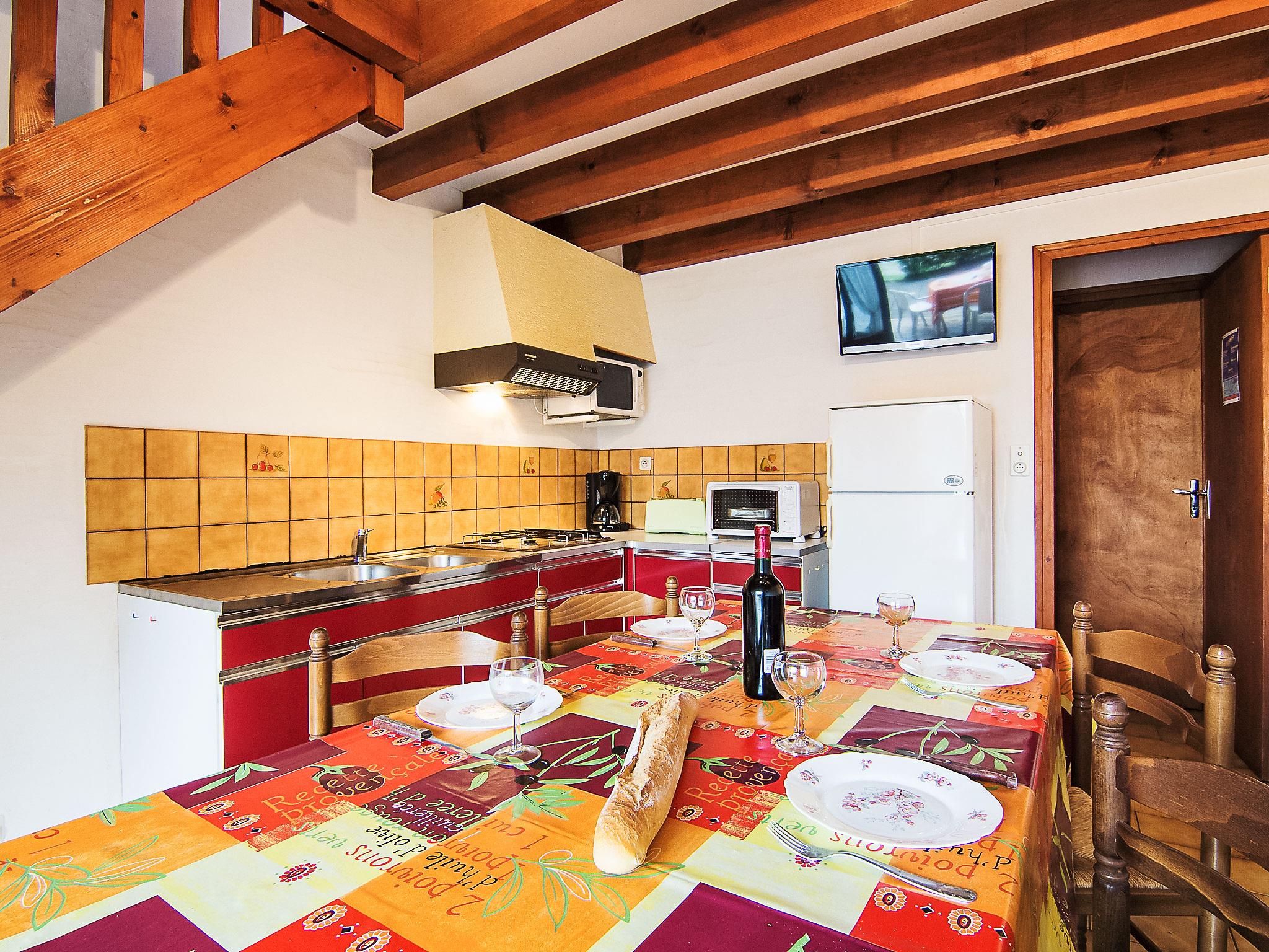 3-room terraced house 50 m2 on 2 levels. Simple furnishings: living/dining room with TV and international TV channels (flat screen). Exit to the terrace. Kitchenette (1 hot plate, mini-oven, oven, 4 gas rings, toaster, kettle, microwave, electric coffee machine, Capsules for coffee machine (filtre) extra). Shower, sep. WC. Heating not available in all rooms. Upper floor: 1 room with sloping ceilings with 2 beds (90 cm, length 190 cm). 1 room with sloping ceilings with 1 bed (90 cm, length 190 cm), 1 french bed (1 x 140 cm, length 190 cm). Terrace. Terrace furniture, deck chairs (1). Facilities: Internet (WiFi, free). Please note: maximum 1 pet/ dog allowed. Smoke alarm.