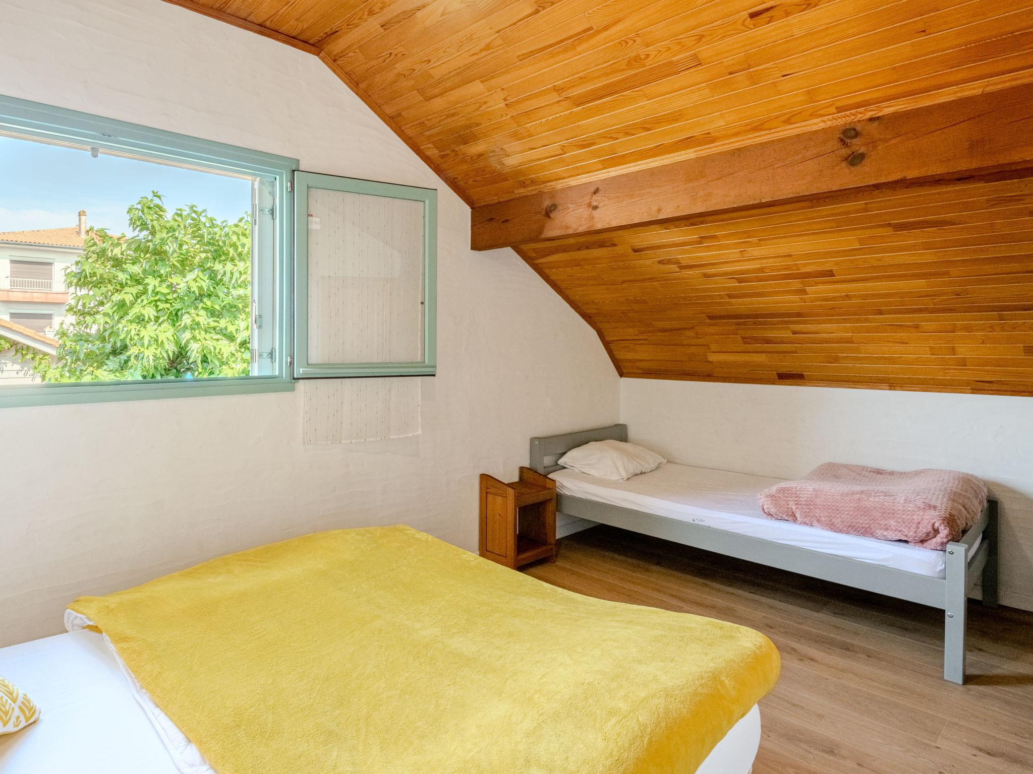 3-room terraced house 50 m2 on 2 levels. Simple furnishings: living/dining room with TV and international TV channels (flat screen). Exit to the terrace. Kitchenette (1 hot plate, mini-oven, 4 gas rings, toaster, kettle, microwave, electric coffee machine, Capsules for coffee machine (filtre) extra). Shower, sep. WC. Heating not available in all rooms. Upper floor: 1 room with sloping ceilings with 2 beds (90 cm, length 190 cm). 1 room with sloping ceilings with 1 bed (90 cm, length 190 cm), 1 french bed (140 cm, length 190 cm). Terrace. Terrace furniture, deck chairs (1). Facilities: Internet (WiFi, free). Please note: maximum 1 pet/ dog allowed. Smoke alarm. Offer by a private individual according to Art. 155, IV of CGI.