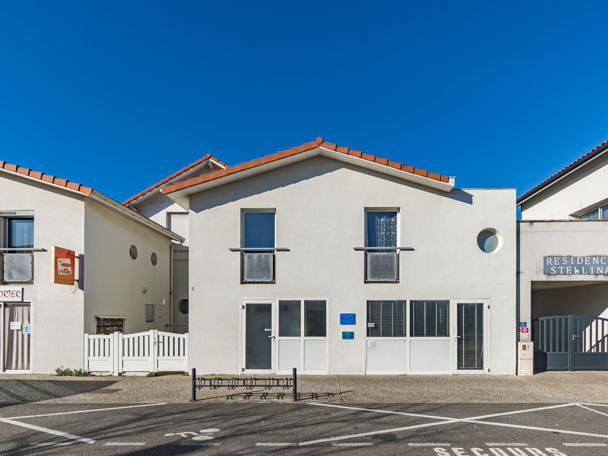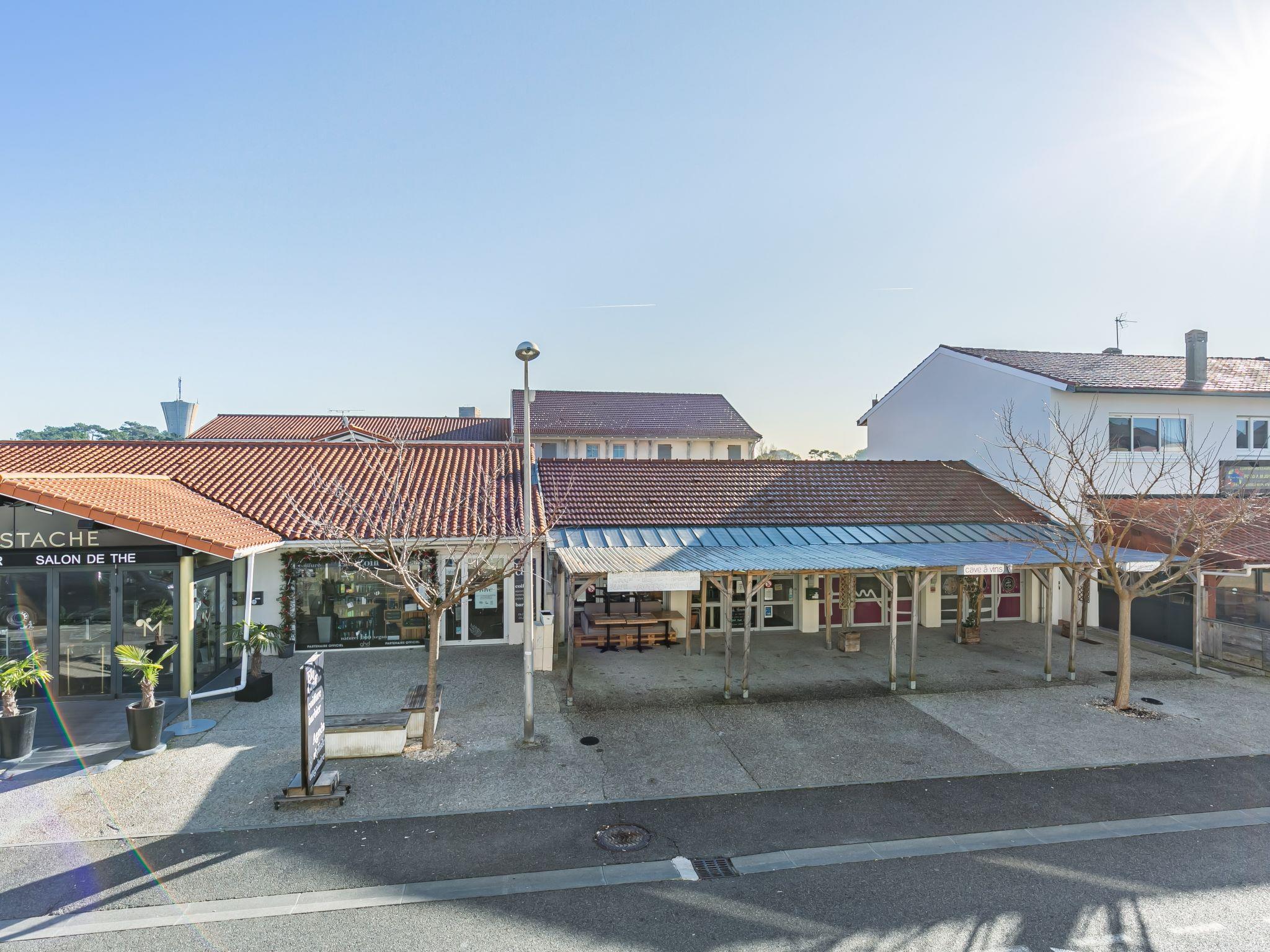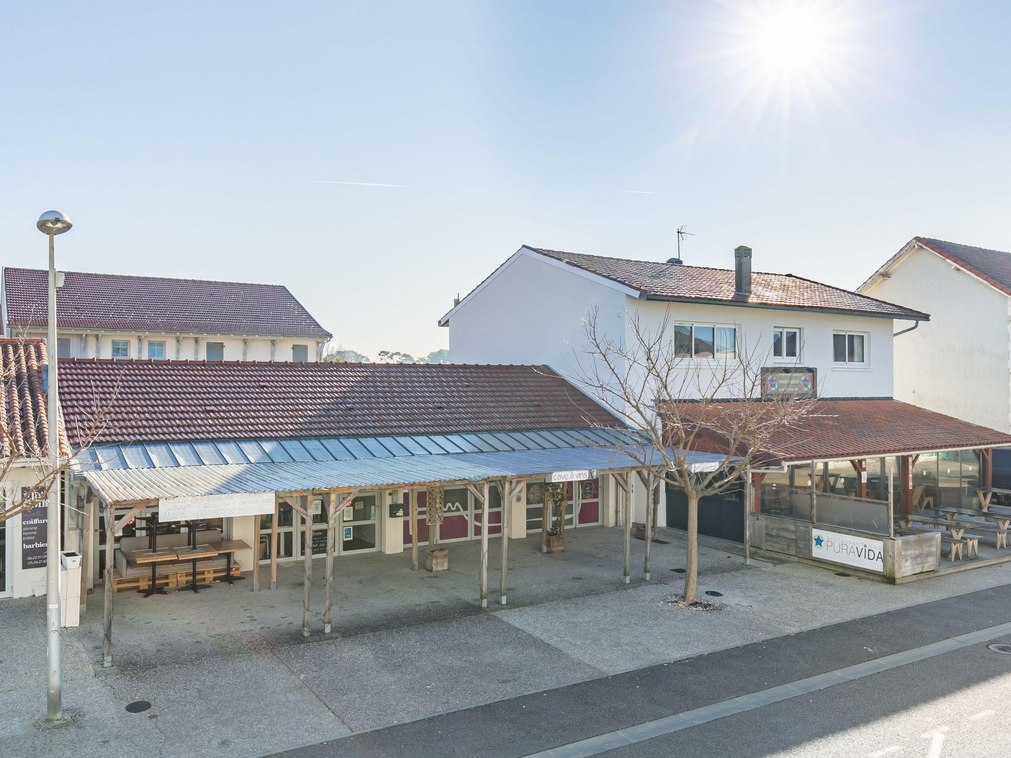 Mimizan Plage: Residence "Rés de la paix". In the centre of Mimizan Plage, in a busy position, 150 m from the sea, 6 km from the lake, 150 m from the beach, 150 m from the river, in a pedestrian area. Shop 150 m, supermarket 300 m, restaurant, bar, bakery, pedestrian zone, bicycle rental 20 m, bus stop 150 m, railway station "Labouheyre" 30 km, sandy beach "La garluche" 150 m, bathing lake "Aureilhan" 10 km. Golf course (9 hole) 6 km, surf school 150 m. Nearby attractions: Bordeaux 120 km, Arcachon 70 km, Biscarrosse 40 km, Centre nautique 7 km, Casino de jeux 1 km. Hiking paths: Eco Musée de marquèze 40 km.