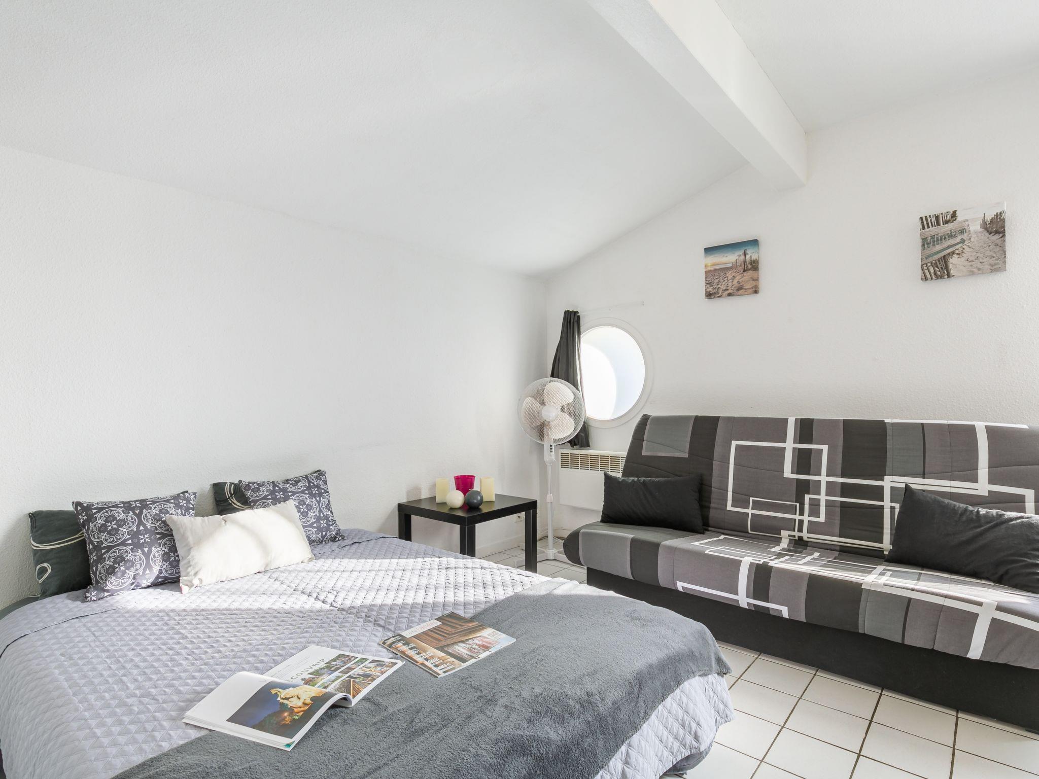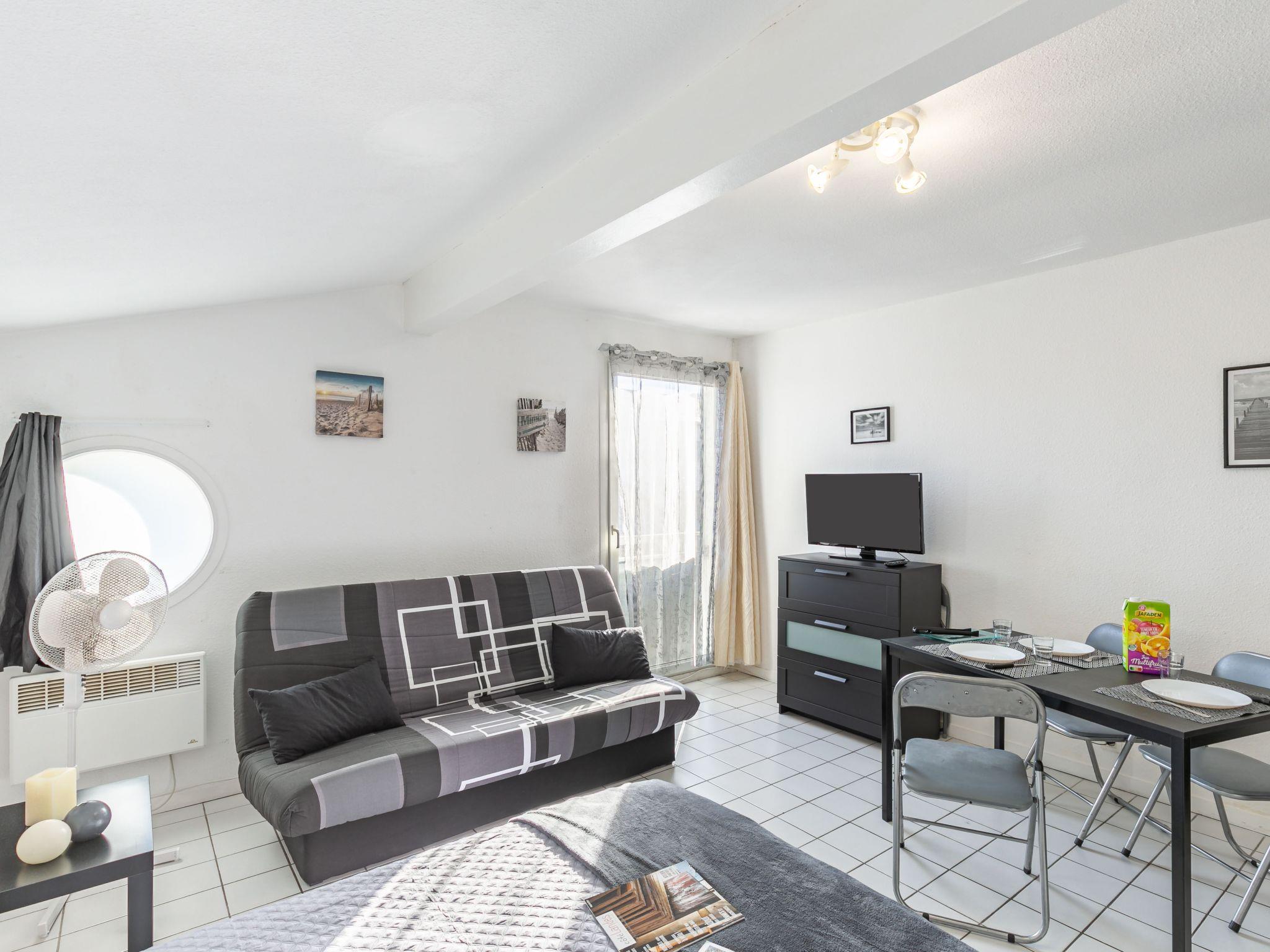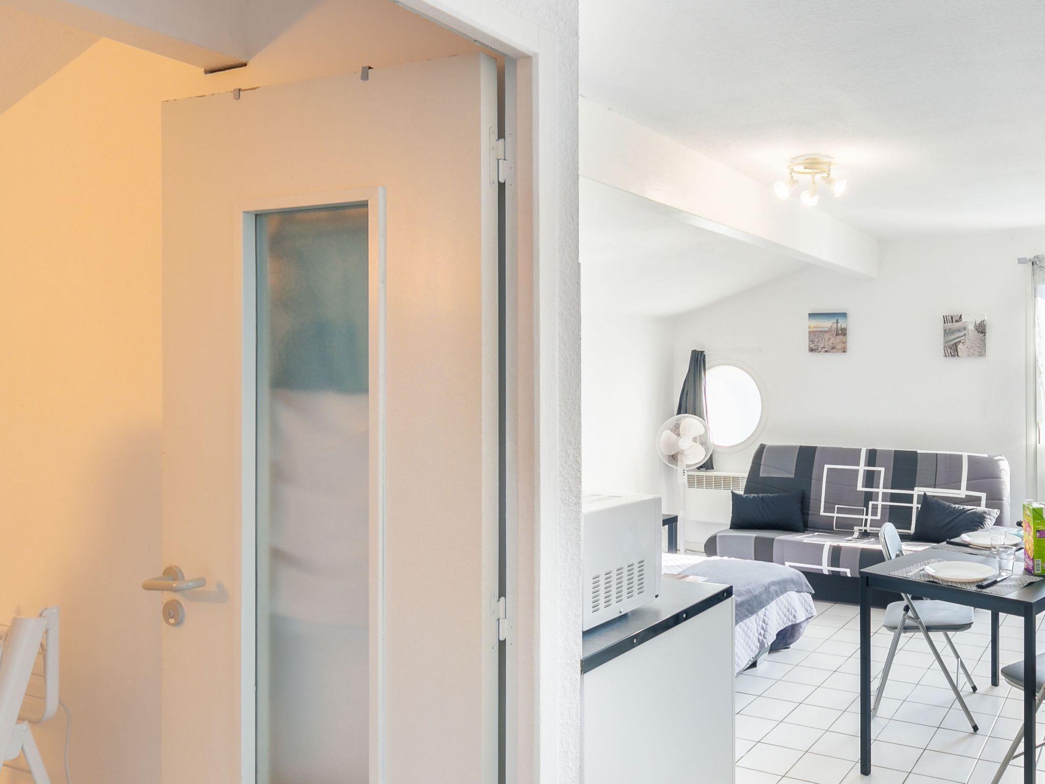 1-room studio 24 m2 on 1st floor. Practical furnishings: living/dining room with 2 sofabeds (130 cm, length 190 cm), dining nook and TV (flat screen), electric heater. Kitchenette (2 hot plates, toaster, kettle, microwave, electric coffee machine). Shower/WC. Facilities: Internet (WiFi, extra). Please note: apartment street side. 1 small pet/ dog allowed. Smoke alarm.