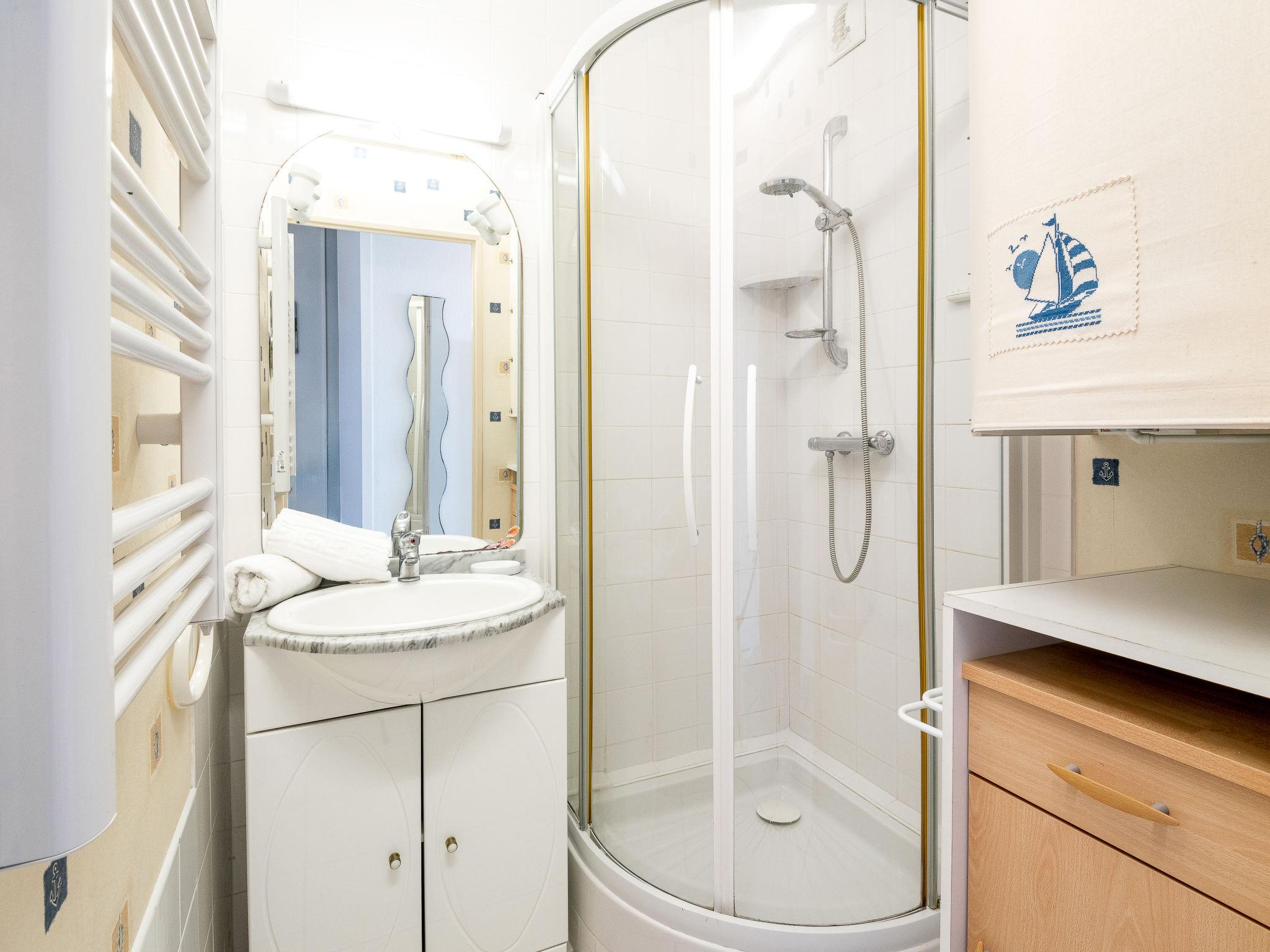 2-room apartment 28 m2 on 3rd floor, south-west facing position. Comfortable and beautiful furnishings: living/dining room with TV (flat screen). Exit to the balcony. Sleeping alcove with 1 x 2 bunk beds (90 cm, length 190 cm). 1 room with 1 french bed (1 x 140 cm, length 190 cm). Kitchenette (dishwasher, 1 ceramic glass hob hotplate, 3 gas rings, toaster, kettle, freezer, electric coffee machine, Capsules for coffee machine (SENSEO) extra, combination microwave) with dining table. Shower, sep. WC. Electric heating. Balcony 4 m2, south facing position and west facing position. Balcony furniture. Very beautiful view of the sea. Facilities: washing machine, iron, hair dryer. Internet (WiFi, extra). Parking (1 car). Please note: non-smokers only. Maximum 1 pet/ dog allowed. Smoke alarm. Offer by a private individual according to Art. 155, IV of CGI. 401840157229