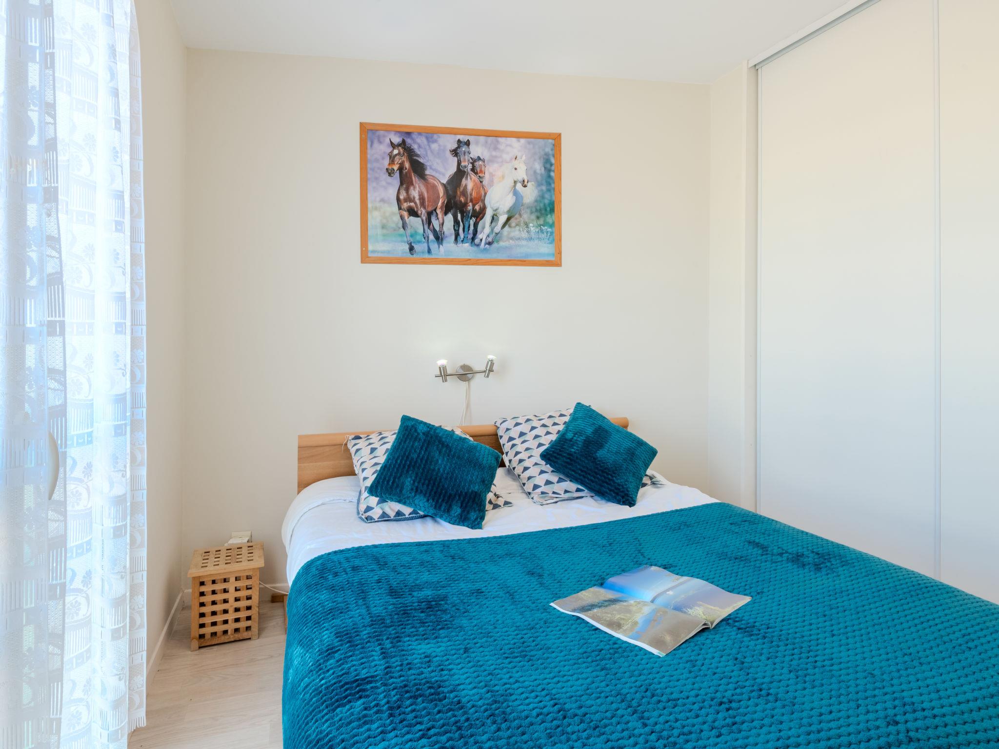 2-room apartment 38 m2 on 2nd floor. Practical furnishings: living/dining room with 1 double sofabed and TV (flat screen), radio, CD-player and DVD. Exit to the balcony. 1 room with 1 french bed (1 x 140 cm, length 190 cm). Kitchenette (4 hot plates, mini-oven, dishwasher, microwave). Shower, sep. WC. Electric heating. Balcony. Balcony furniture. View of the sea. Facilities: washing machine. Internet (WiFi, extra). Parking space n 18. Please note: maximum 1 pet/ dog allowed. TV only FR. Smoke alarm.