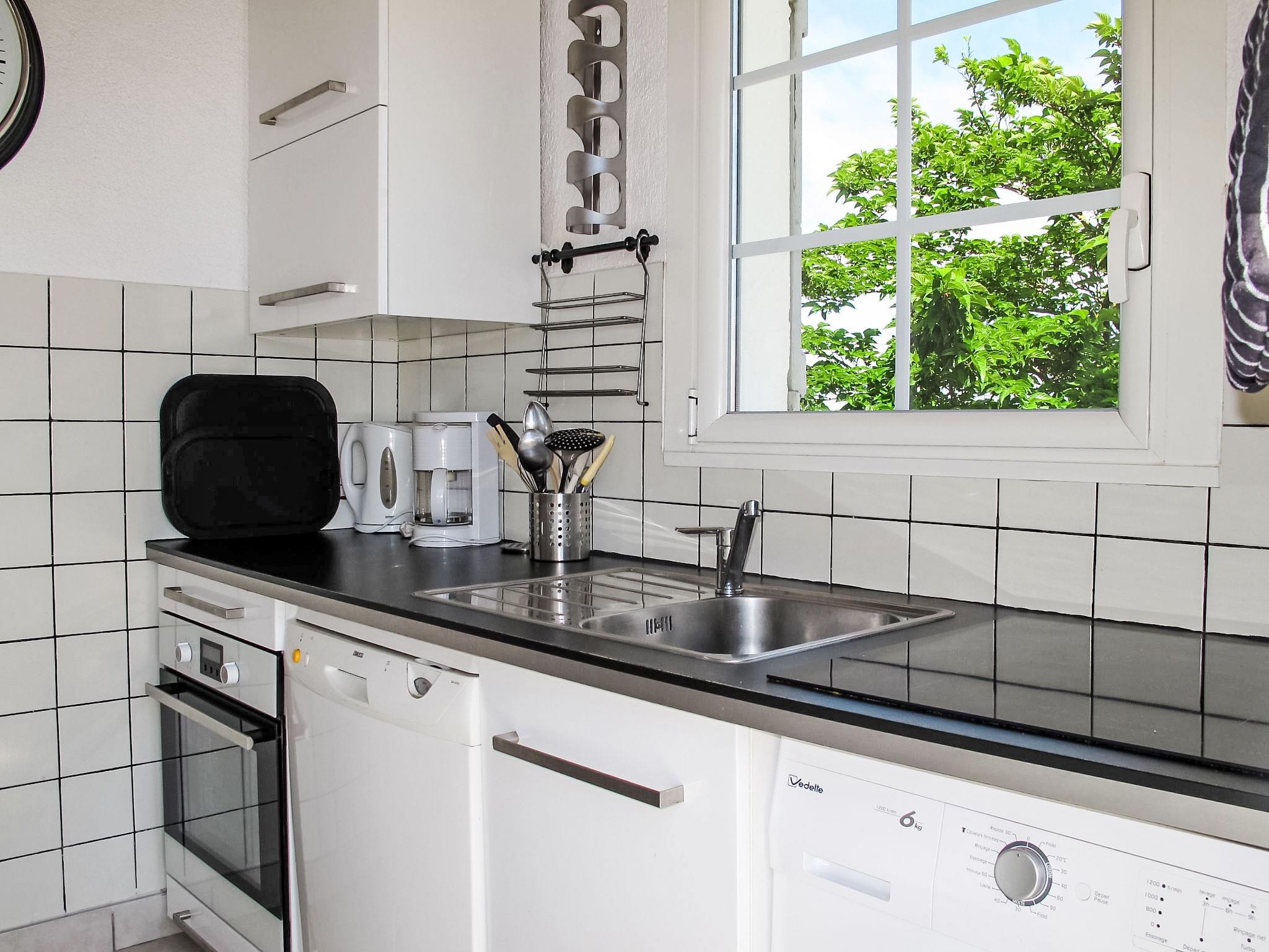3-room apartment 65 m2, on the upper ground floor. Simple and beautiful furnishings: living/dining room with 2 double beds (2 x 140 cm, length 190 cm), TV (flat screen), radio and CD-player. Exit to the terrace. 1 room with 1 french bed (1 x 140 cm, length 190 cm), shower. 1 room with 1 french bed (1 x 140 cm, length 190 cm), shower. Kitchen (oven, dishwasher, 4 induction hot plates, microwave, freezer). Sep. WC. Electric heating. Large terrace 20 m2, south facing position and west facing position. Terrace furniture, deck chairs (2). Partial view of the sea. Facilities: washing machine. Internet (WiFi, free). Please note: non-smokers only. TV only DE, FR. Smoke alarm. separate entrance, accessible from the terraces.