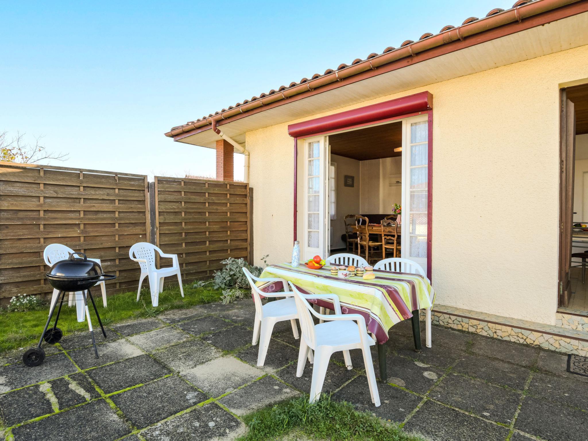 Terraced house. In the resort 800 m from the centre of Mimizan Plage, 400 m from the edge of the forest, 300 m from the sea, 10 km from the lake, 300 m from the beach. Parking. Shop 600 m, grocery 800 m, shopping centre 6 km, bakery 800 m, bicycle rental 300 m, bus stop 900 m, sandy beach "plage sud" 300 m, bathing lake "Aureilhan" 10 km. Golf course (9 hole) 10 km, surf school 300 m, riding stable 10 km, cycle lane 200 m. Nearby attractions: skate parc 1.5 km, eco musée de Marquèze 40 km, Disc Gold 1.5 km, Casino de jeux 1.5 km, Arcachon 70 km, Biscarrosse 35 km.