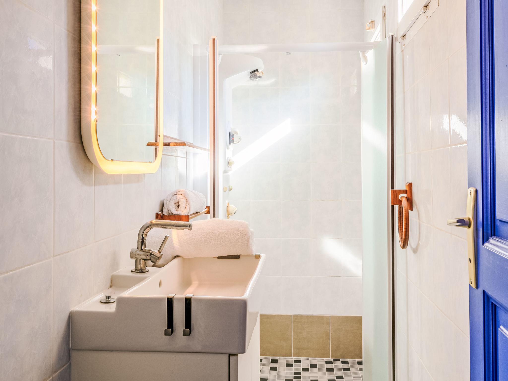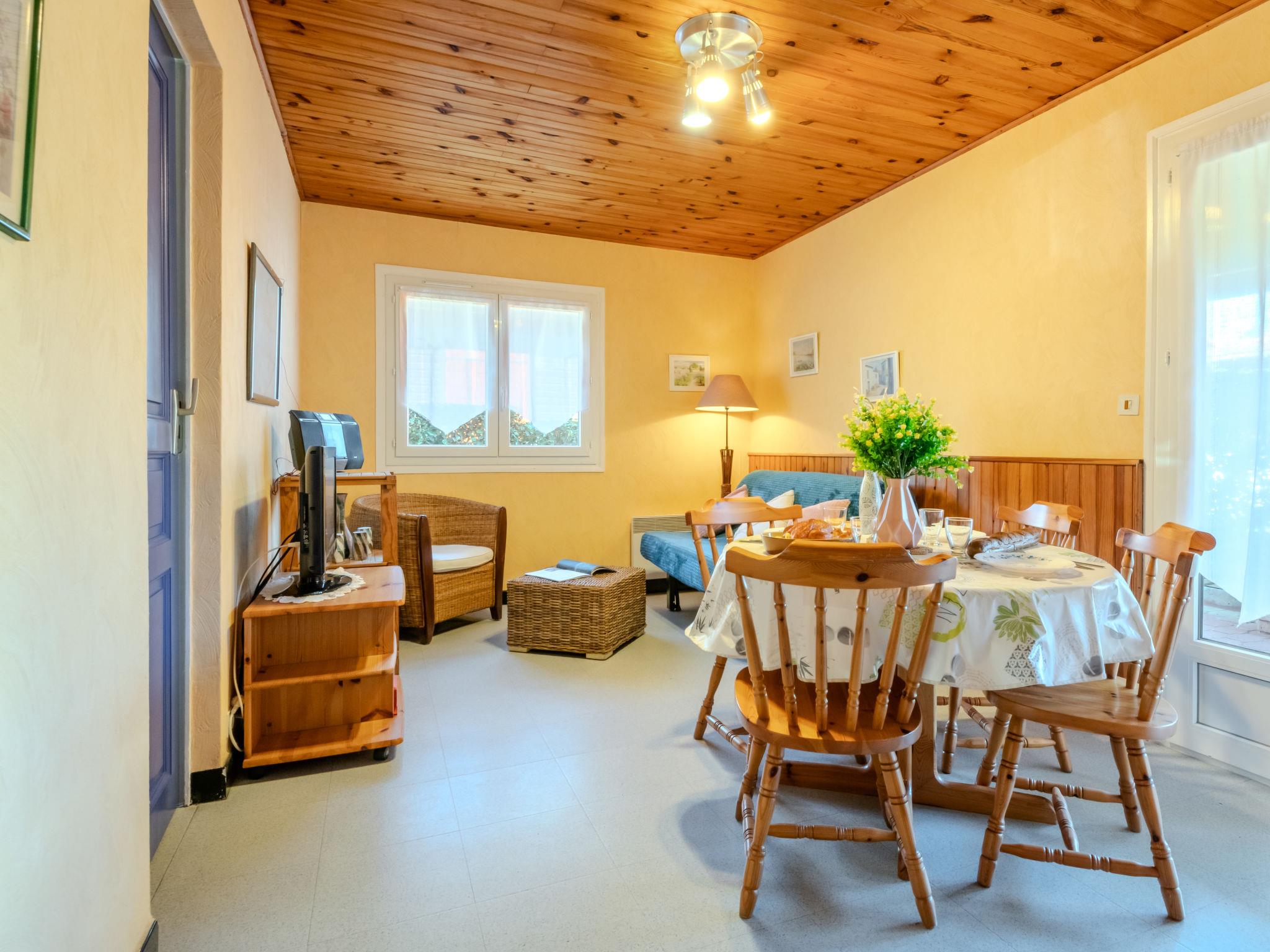 3-room house 60 m2. Beautiful furnishings: living/dining room with 1 sofabed (120 cm), satellite TV and international TV channels (flat screen), hi-fi system and DVD. Exit to the terrace. 1 room with 1 french bed (1 x 140 cm, length 190 cm). Exit to the terrace. 1 room with 1 french bed (1 x 140 cm, length 190 cm). Kitchen (4 hot plates, oven, dishwasher, microwave). Shower, sep. WC. Electric heating. Terrace roofed, north facing position terrace, south facing position. Terrace furniture, deck chairs (4). Facilities: washing machine. Internet (WiFi, free). Please note: maximum 1 pet/ dog allowed. Smoke alarm.