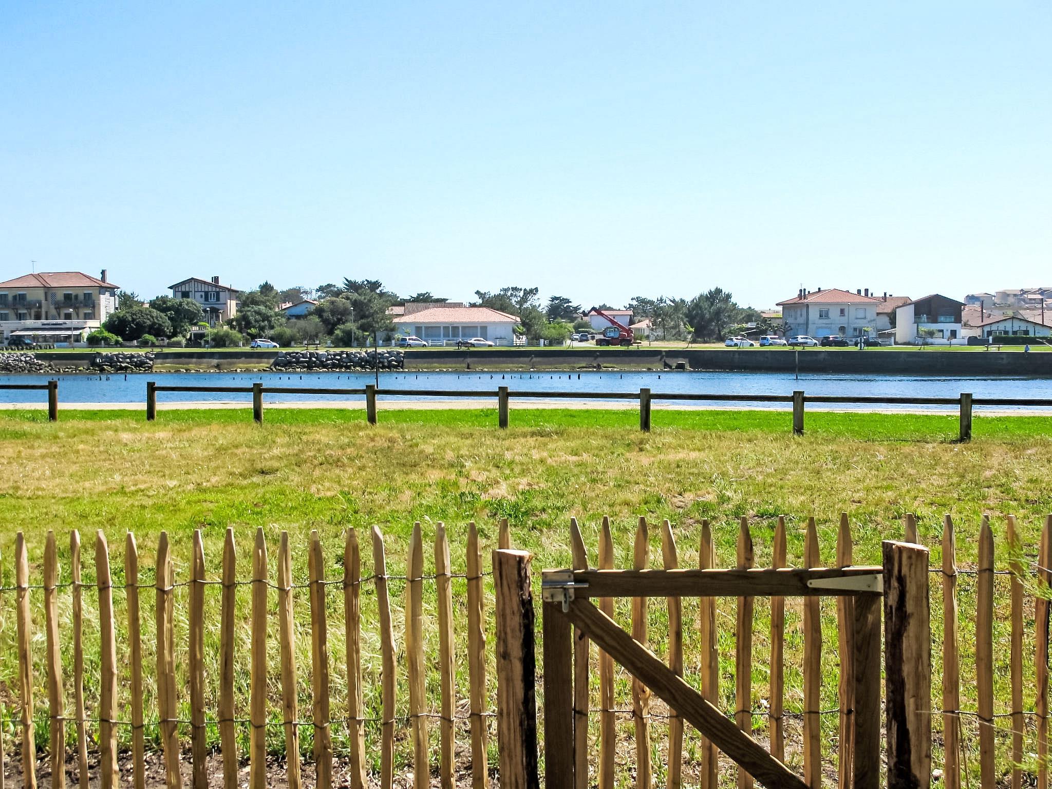 Terraced house "Le Hameau des Pêcheurs 1". In the resort 350 m from the centre of Mimizan-Plage, 400 m from the sea, 400 m from the beach, 60 m from the river. Private: property 200 m2. Supermarket 500 m, bus stop 260 m, railway station "Labouheyre" 30 km, sandy beach 400 m, park "Landes Aventure" 6 km, indoor swimming pool 6 km, bathing lake "Aureilhan" 10 km. Golf course (9 hole) 6 km, surf school 400 m, riding stable 7 km. Nearby attractions: Arcachon 70 km, Bordeaux 120 km, Biscarosse 40 km, Centre Nautique 7 km, Casino Mimizan Plage. Hiking paths: Parc naturel régional des Landes.