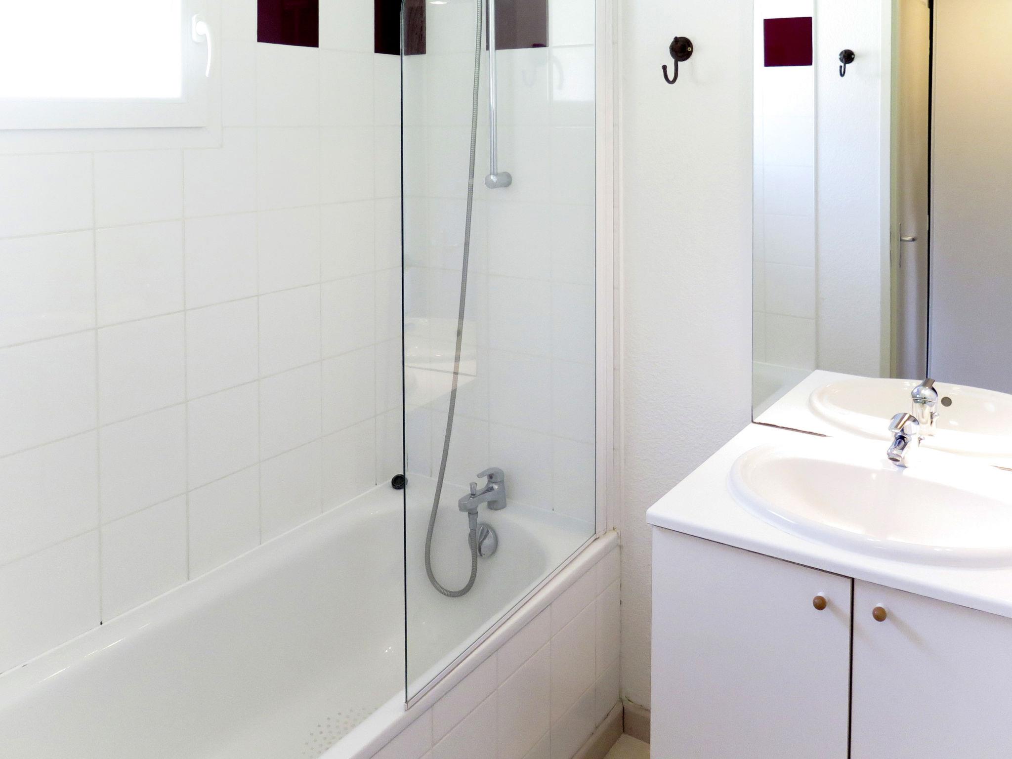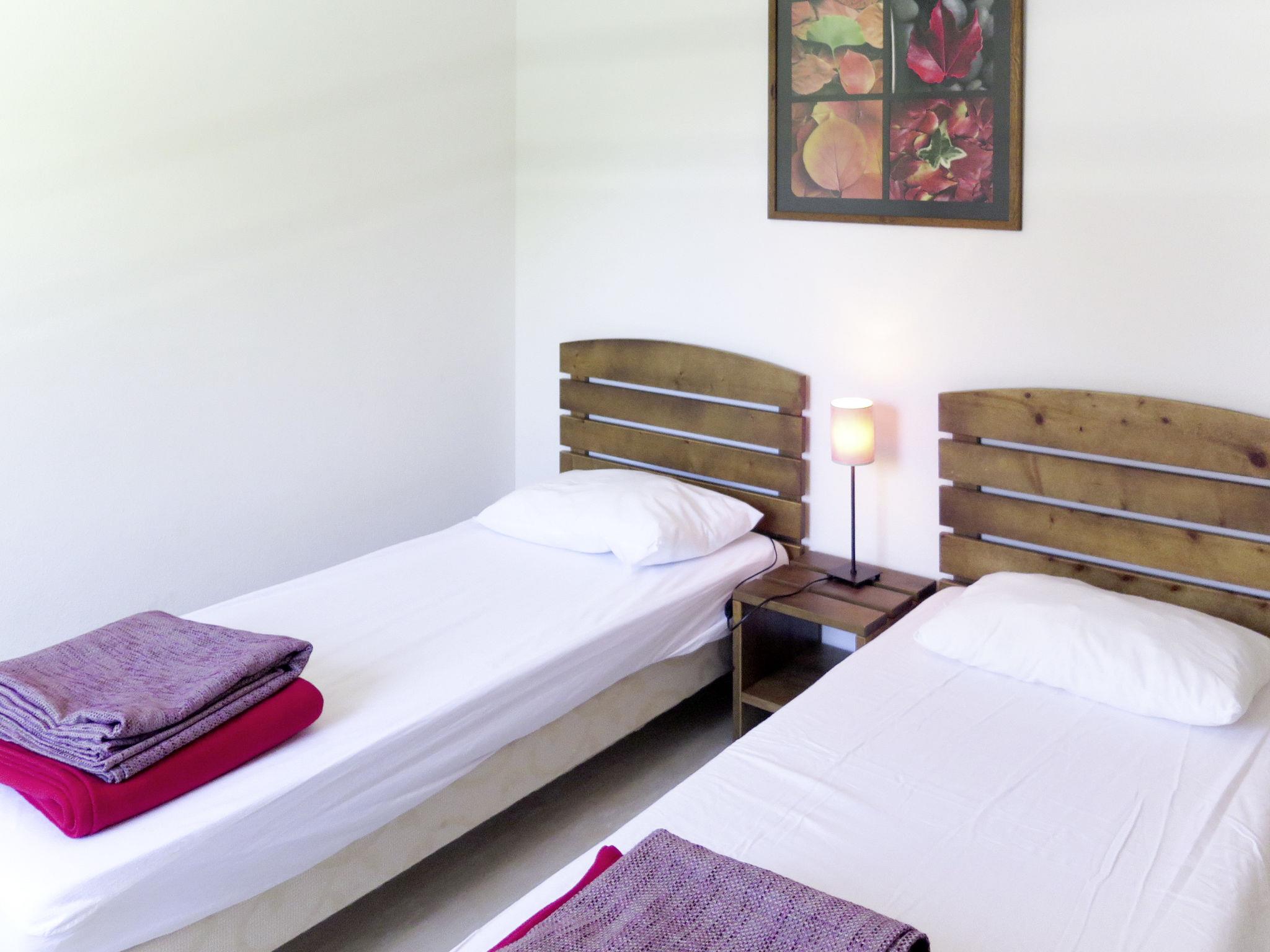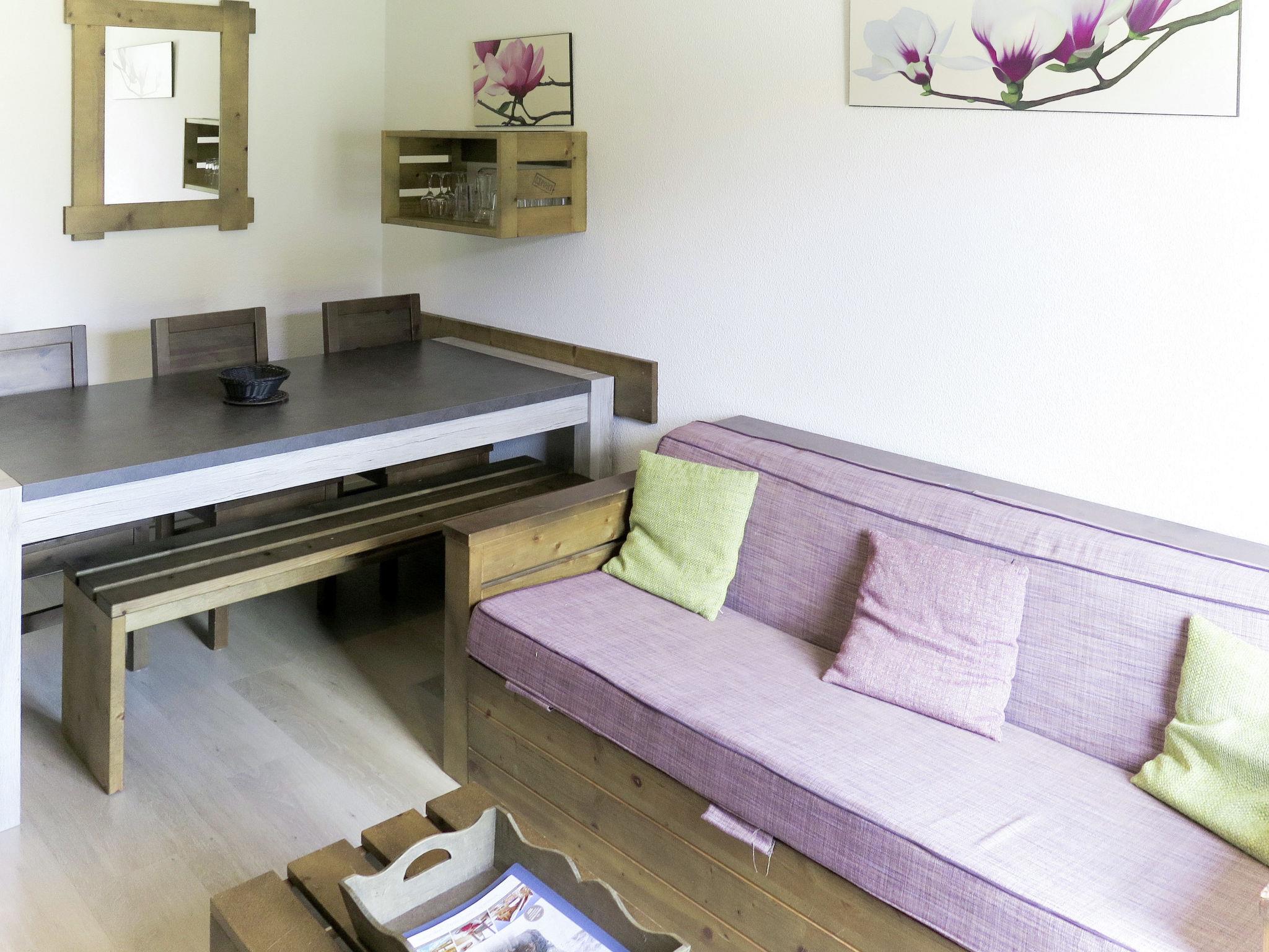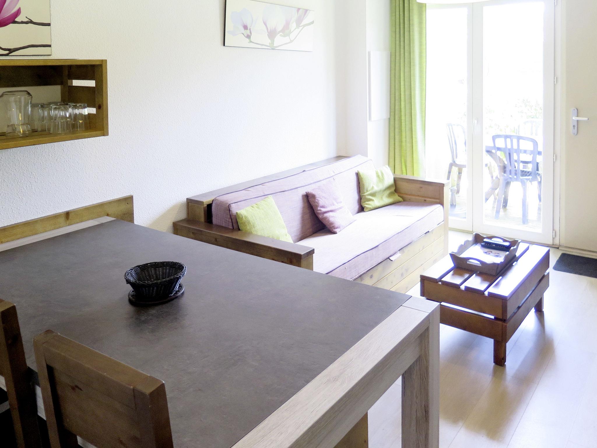 "Les Terrasses du Lac", 3-room apartment 40 m2 on 2 levels. Beautiful furnishings: living/sleeping room with 1 double sofabed, dining table and TV. Exit to the balcony, to the terrace. Open kitchen (dishwasher, 4 ceramic glass hob hotplates, electric coffee machine, combination microwave). Upper floor: 1 room with 1 french bed. 1 room with 2 beds. Bath/WC. Electric heating. Balcony or terrace. Terrace furniture, balcony furniture. Facilities: children's high chair, baby cot (extra). Internet (WiFi, extra). Parking (1 car). Please note: non-smokers only. Maximum 2 pets/ dogs allowed. Smoke alarm, fire extinguisher.