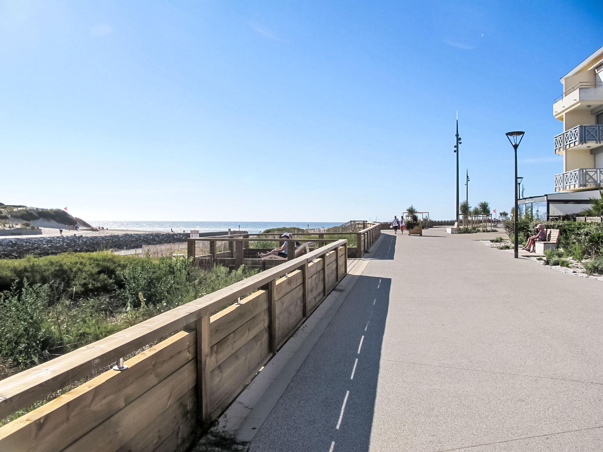 2-room apartment 28 m2 on 1st floor. Practical and beautiful furnishings: living/dining room with 1 double sofabed (1 x 140 cm), TV (flat screen). Exit to the balcony. 1 small room 9 m2 with 1 french bed (1 x 140 cm). Kitchenette (mini-oven, dishwasher, 1 ceramic glass hob hotplate, 4 gas rings, toaster, kettle, electric coffee machine, Capsules for coffee machine (tassimo + filtre) extra). Bath/WC. Electric heating. Balcony 8 m2. Balcony furniture. View of the sea. Facilities: washing machine. Internet (WiFi, extra). Please note: no parking. Maximum 1 pet/ dog allowed. TV only FR. Smoke alarm.