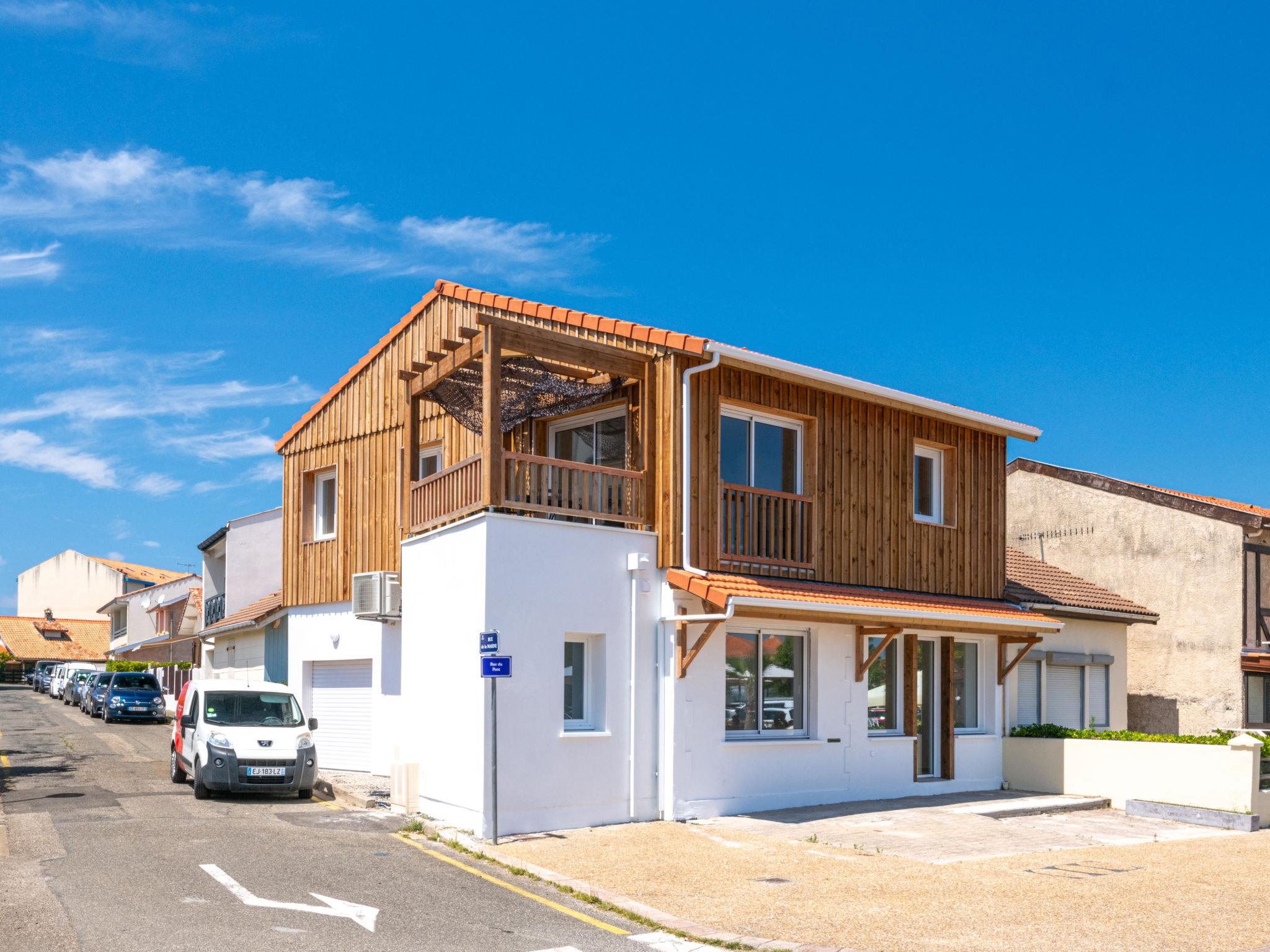 Apartment block "La Pergola". In the centre of Mimizan Plage, in a central, busy position. In the house: storage room for bicycles. Shop 200 m, grocery 100 m, supermarket 600 m, restaurant 10 m, bakery 150 m, bicycle rental 500 m, bus stop 270 m, sandy beach "La jetée" 150 m, park "Landes aventures" 6 km, bathing lake "Aureilhan" 10 km. Golf course (9 hole) 6 km, surf school 400 m, riding stable 10 km. Nearby attractions: Bordeaux 120 km, Arcachon 70 km, Bisacrrosse 40 km, Centre nautique 7 km, Casino Mimizan Plage. Hiking paths: Parc régional des landes 45 m.