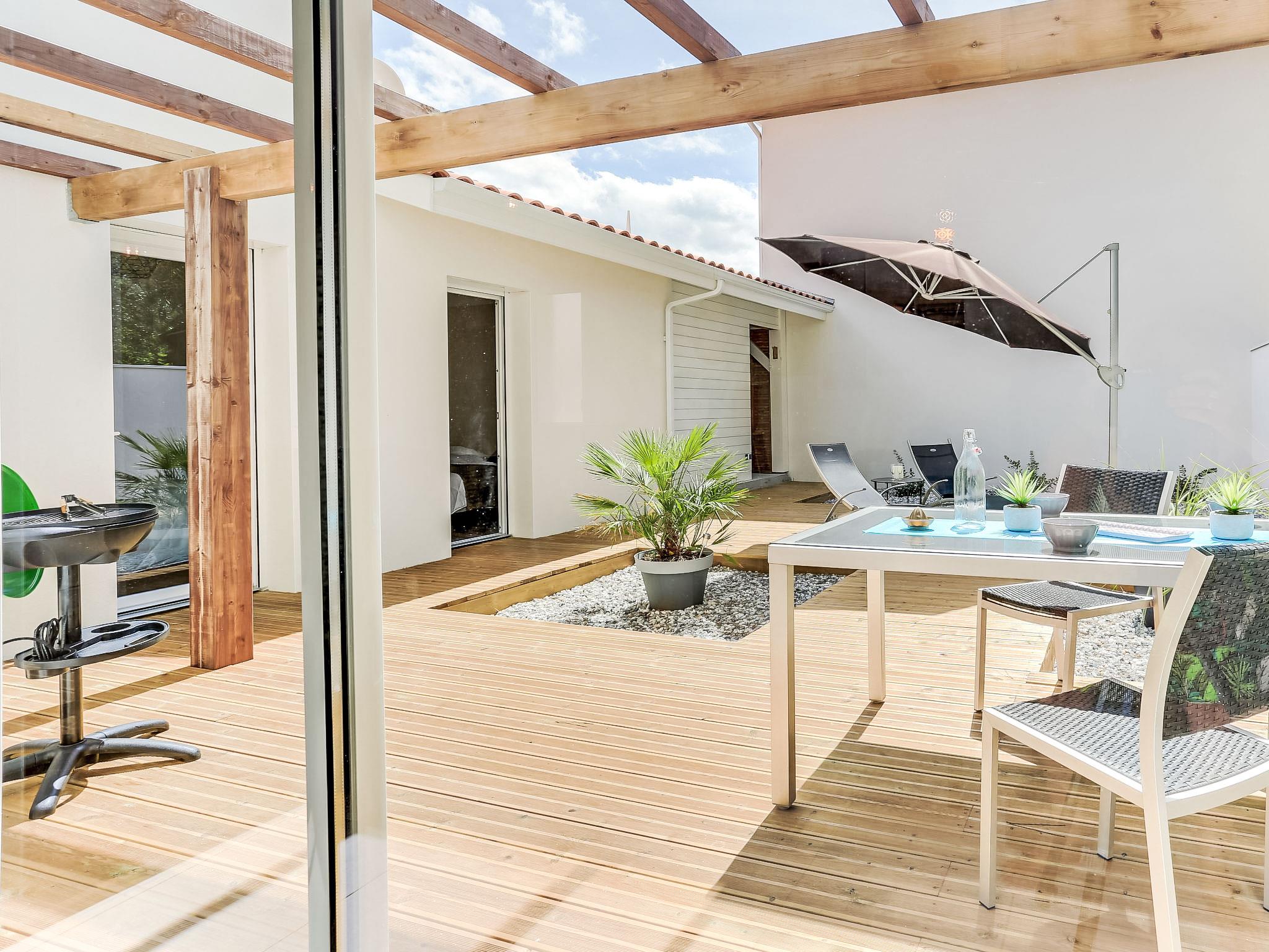 Modern residence "Les Patios de Flore", 2 storeys, built in 2018. 12 apartments in the residence. In the resort 800 m from the centre of Mimizan Plage, 1.4 km from the sea, 1.4 km from the beach. In the house: storage room for bicycles (for shared use). Grocery 1.2 km, restaurant 500 m, bar, bakery 1.3 km, bicycle rental 1.2 km, bus stop "Mimiz Bus en haute saison" 10 m, sandy beach "Remember" 1.5 km, indoor swimming pool 6 km, bathing lake "Aureilhan" 9 km. Surf school 1.4 km, riding stable 6 km, cycle lane 500 m. Nearby attractions: Skate Parc 30 m, Camping 200 m. Residence with electric gates.