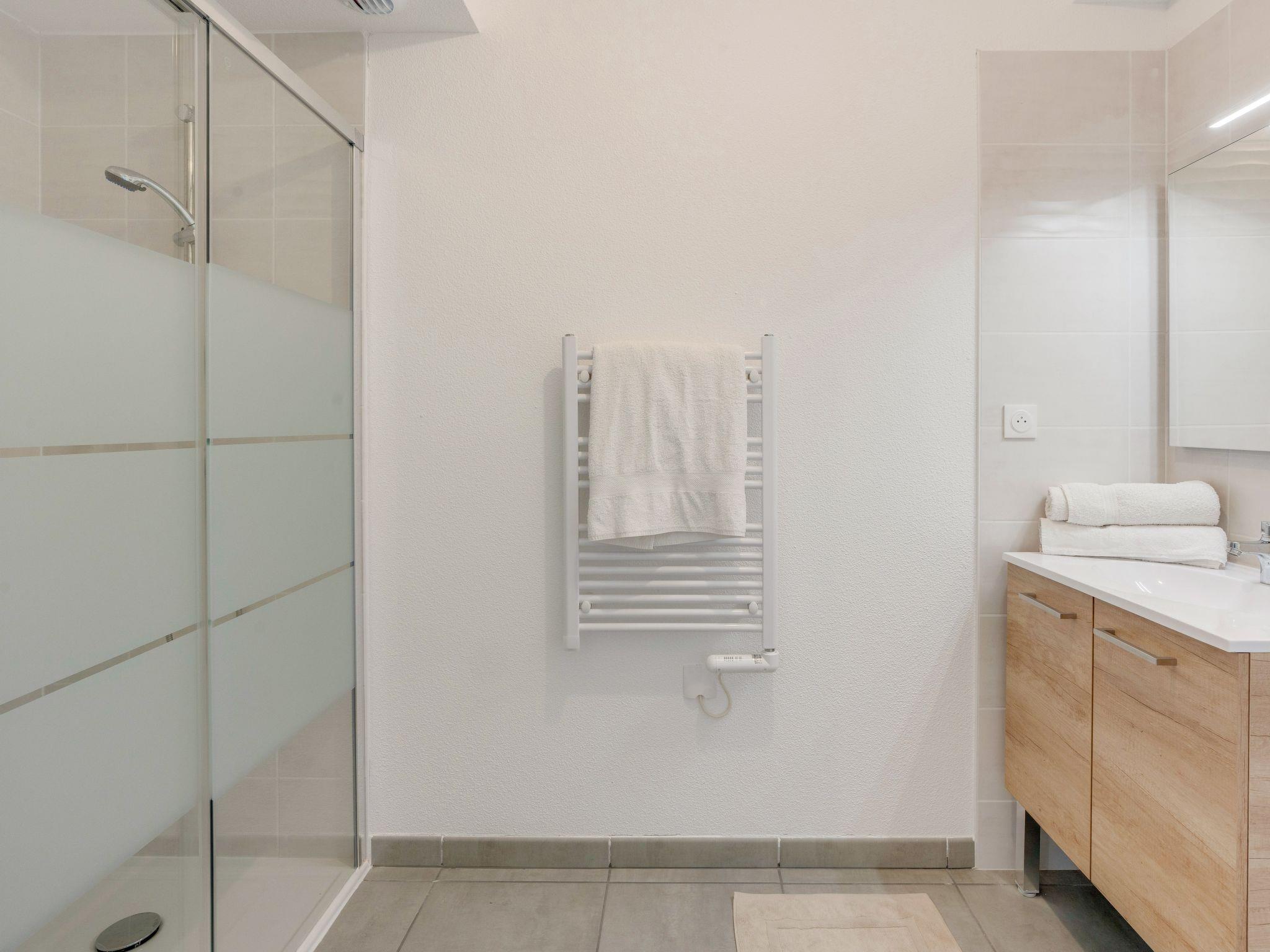"Soleil Couchant B03", 3-room maisonette 54 m2, on the ground floor. Comfortable and modern furnishings: living room with TV (flat screen). Kitchen-/living room (oven, dishwasher, 1 ceramic glass hob hotplate, 2 gas rings, toaster, kettle, microwave, electric coffee machine) with dining table, air conditioning, boiler and electric shutters. Exit to the terrace. Shower/WC. Air-conditioning. Upper floor: 1 room with 1 french bed (1 x 140 cm, length 190 cm). 1 room with 1 x 1 bunk beds (90 cm, length 190 cm), 1 french bed (1 x 140 cm, length 190 cm). Sep. WC. Terrace 10 m2, south facing position and west facing position. Terrace furniture. Facilities: washing machine, iron. Internet (WiFi, extra). Parking space n 26. Please note: non-smokers only. 1 small pet/ dog allowed. Smoke alarm. Offer by a private individual according to Art. 155, IV of CGI.