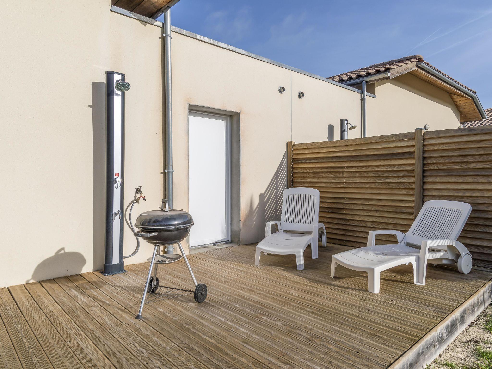 Modern, beautiful single-family house "Lamanchs", built in 2019. In the resort 900 m from the centre of Mimizan Plage, 900 m from the sea, 10 km from the lake, 900 m from the beach. Private: property 500 m2 (fenced). Terrace (20 m2), garden furniture, barbecue, parking on the premises. Shop 800 m, grocery 650 m, restaurant 800 m, bakery 700 m, pedestrian zone 750 m, bicycle rental 1 km, bus stop 850 m, sandy beach "garluche" 1 km, park "disc golf" 1 km, bathing lake "Aureilhan" 10 km. Golf course (9 hole) 10 km, surf school 900 m, riding stable 10 km. Nearby attractions: Arcachon 70 km, Biscarrosse 40 km, casino de la plage 250 m.