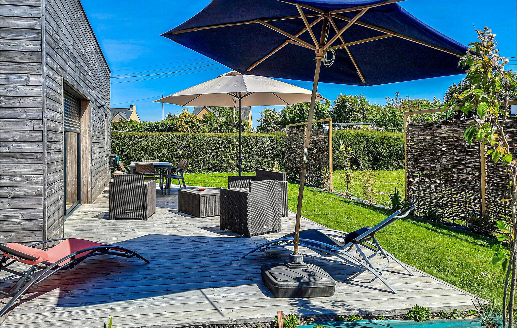 Dette moderne træhus tilbyder jer og familien masser af plads til at udfolde sig og nyde den franske sommer i fulde drag. I det velindrettede og rummelige feriehus kan I glæde jer til de stille morgentimer ved morgenmad og solopgang, mens den private have med træveranda står til rådighed for jer i dagtimerne. Her kan i solbade, gå lange ture eller se frem til en hyggelig atmosfære med jeres nærmeste i aftentimerne med en friskfanget fisk på grillen. Strande såsom Plage de Poulguen eller den fine sandstrand Kéroun er kun hhv. 6 og 6,9 km væk.