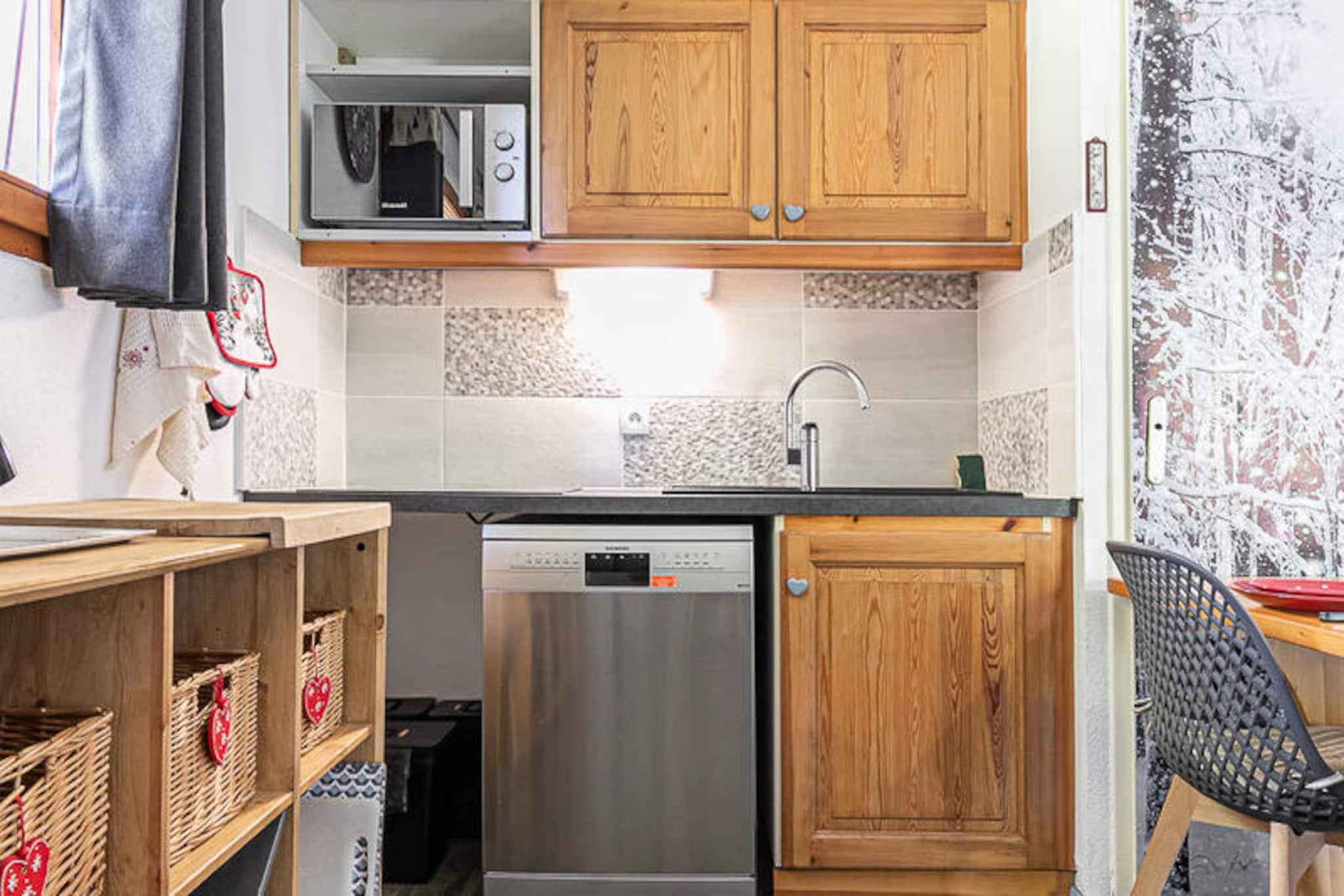 I hjertet af de franske alper, hvor den friske bjergluft møder charmen fra en traditionel alpelandsby, tilbyder denne dejlige lejlighed i stueetagen det perfekte tilflugtssted for familier og små grupper. Beliggende kun 100 meter fra Charmasson-pisten og 500 meter fra Valfréjus' livlige centrum, kombinerer den bekvemmelighed med roen ved en bjergferie. Uanset om du er her for spændingen ved skiløb eller roen ved sommervandreture, placerer denne bolig dig i centrum af det hele. Træd ind i denne fuldt renoverede lejlighed på 40 m², og føl dig straks hjemme. Den hyggelige stue inviterer dig til at slappe af med en udtrækssovesofa, tv, dvd-afspiller, smarthøjttaler og et udvalg af brætspil og bøger. Det åbne køkken er en kokkes drøm, udstyret med et stort køleskab, fryser, opvaskemaskine, varmluftsovn, mikrobølgeovn og endda specialapparater som et raclettesæt og en pandekagemaskine. Med to soveværelser - et soveværelse med en dobbeltseng og en udtræksseng og et kahytrum med køjesenge - kan dette rum komfortabelt rumme op til seks gæster. Moderne bekvemmeligheder såsom håndklædetørrer på badeværelset og Wi-Fi sikrer et behageligt ophold. Lejlighedens 20 m² store terrasse er et højdepunkt, perfekt til at nyde solen eller et måltid med udsigt over de omkringliggende tinder. Skientusiaster vil sætte pris på ski-in/ski-out-adgangen via Charmasson-stoleliften, mens Arrondaz-svævebanen og feriestedets centrum kun ligger en kort gåtur væk. Valfréjus tilbyder en række butikker, skiskoler og afterski-muligheder, hvilket gør det til en pulserende destination året rundt. Uanset om du er tiltrukket af tiltrækningen af ??snedækkede pister eller skønheden i alpine somre, tilbyder denne lejlighed en indbydende base for at skabe uforglemmelige minder. Med sin blanding af moderne komfort og uovertruffen beliggenhed venter dit bjergeventyr.