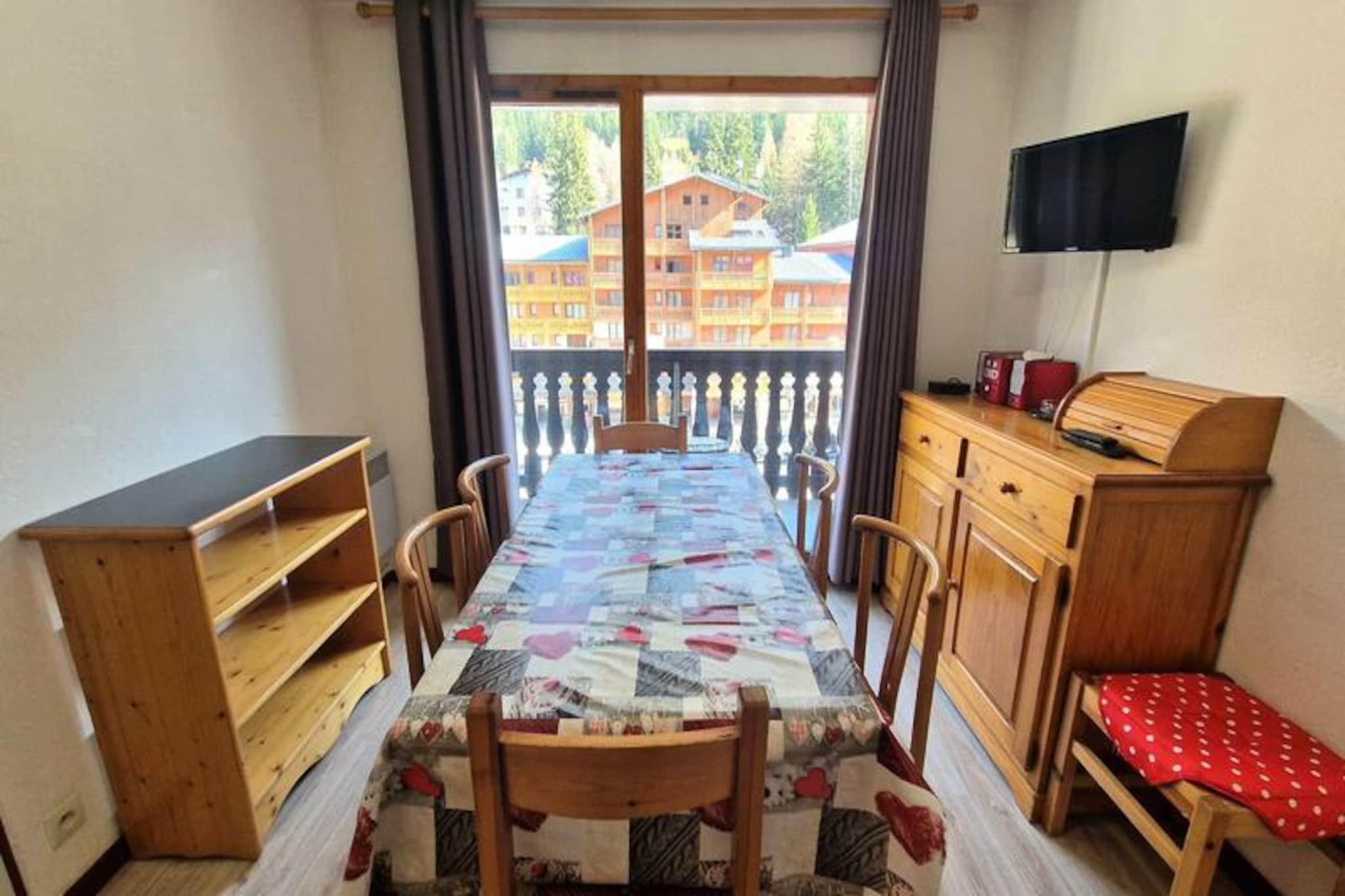 Midt i de franske alpers pulserende energi tilbyder denne charmerende toværelses lejlighed med hytte et indbydende tilflugtssted for op til seks gæster. Beliggende i hjertet af feriestedet, kun få skridt fra pisterne og svævebanen, hvilket sikrer ubesværet adgang til de verdensklasse ski- og snowboardmuligheder, som regionen er kendt for. Uanset om du er her for vintersport eller sommerens bjergeventyr, er denne bolig en perfekt base for din alpine ferie. \n\nIndvendigt er lejligheden omhyggeligt designet til at maksimere komfort og funktionalitet. Stuen har en hyggelig udtræksseng til to personer, mens et separat soveværelse med en dobbeltseng og en hytte med køjesenge giver ekstra sovepladser. En dør adskiller hytten fra opholdsstuen, hvilket sikrer privatliv for alle gæster. Tekøkkenet er fuldt udstyret med fire kogeplader, køleskab, mikrobølgeovn og opvaskemaskine, hvilket gør det nemt at tilberede måltider efter en dag med udforskning. Badeværelset har et badekar, og der er et separat toilet for nemheds skyld. Gå ud på den østvendte balkon for at nyde den friske bjergluft og morgensolen. \n\nResidensen tilbyder også praktiske faciliteter såsom et skirum i stueetagen, der sikrer, at dit udstyr altid er klar til det næste eventyr. Med butikker, skiskoler og spisesteder lige i nærheden er alt, hvad du behøver, inden for rækkevidde. Om sommeren forvandles området til et paradis for vandrere og naturelskere med stier, der fører til betagende udsigter og fredfyldte alpine landskaber. \n\nUanset om du søger spændende dage på pisterne eller rolige aftener under den stjerneklare alpehimmel, kombinerer denne lejlighed bekvemmelighed, komfort og charme for at skabe uforglemmelige minder i hjertet af de franske alper.