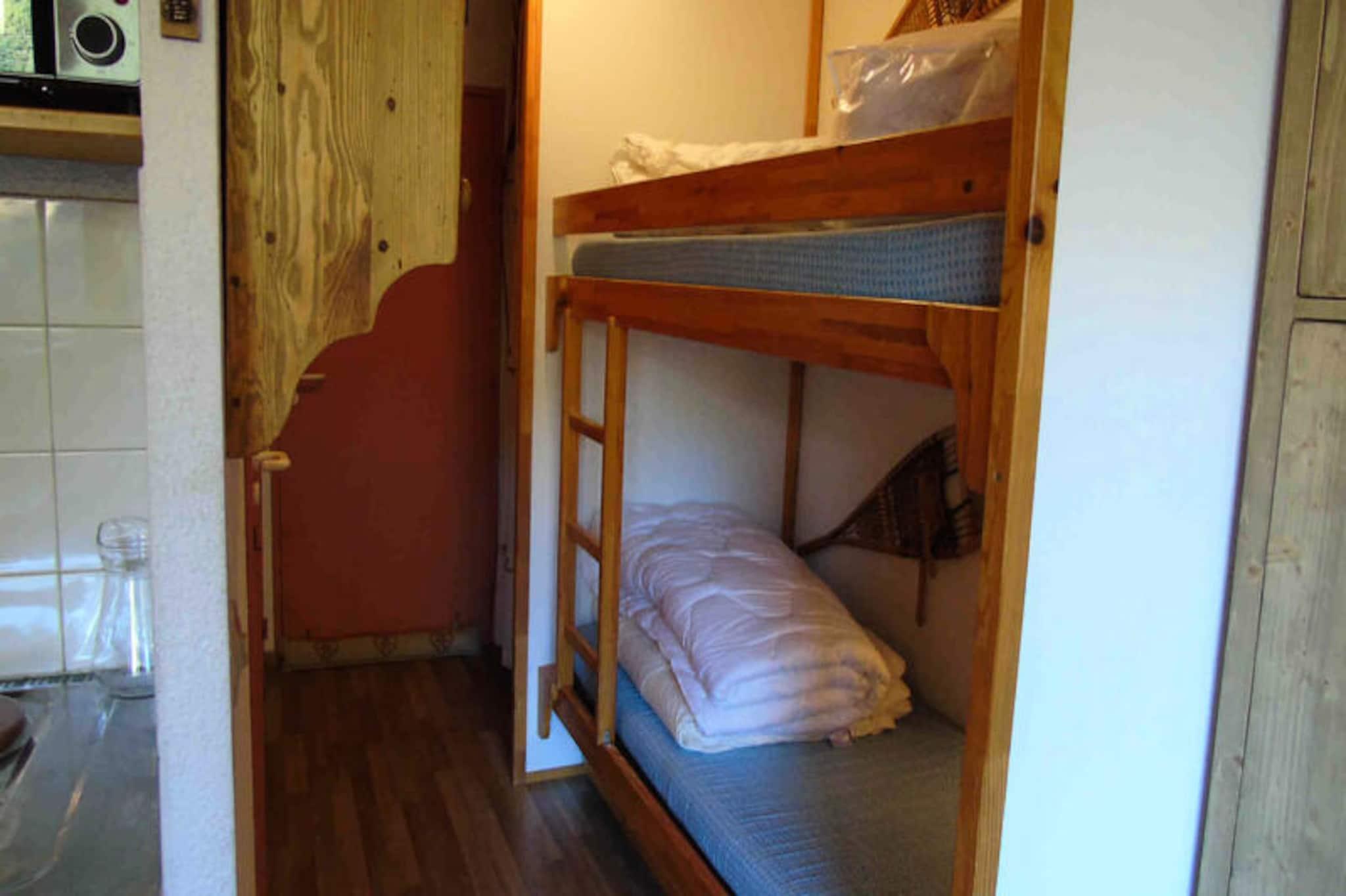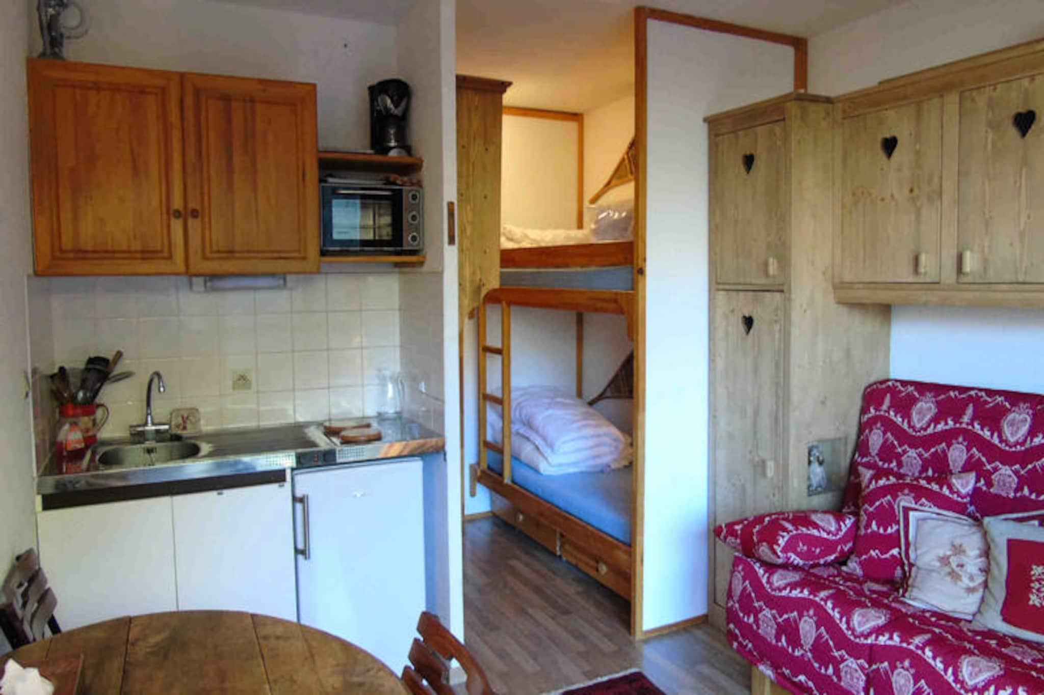 Denne charmerende studiolejlighed, der ligger på anden sal i Vita Parc-residensen i Valfréjus, tilbyder et hyggeligt tilflugtssted for op til fire gæster. Med Arrondaz-svævebanen, butikker og skiskoler kun 50 meter væk, er du perfekt placeret til både vinter- og sommereventyr. Fra den nordvestvendte balkon kan du nyde den betagende udsigt over dalen og de uberørte landskaber i Vanoise Nationalpark - et sandt paradis for både naturelskere og friluftsentusiaster. \n\nIndvendigt er lejligheden omhyggeligt designet til at maksimere komfort og bekvemmelighed. Tekøkkenet er fuldt udstyret med alt, hvad du behøver for at tilberede solide måltider efter en dag med udforskning, inklusive et raclette- og fonduesæt til en autentisk alpin middagsoplevelse. Opholdsstuen har et tv og radio, hvilket skaber et indbydende rum at slappe af. Sovepladserne inkluderer køjesenge i entréområdet og en sovesofa i stuen, hvilket sikrer en afslappende nats søvn for alle. Et badeværelse med badekar og separat toilet fuldender planløsningen, mens dyner og puder er inkluderet for ekstra komfort. Valfréjus tilbyder gratis udendørs parkering, og yderligere tjenester såsom liftkort, leje af udstyr og overdækket parkering er tilgængelige efter anmodning. Om sommeren åbner aktivitetskort op for en verden af ??muligheder, lige fra vandreture til at udforske den nærliggende nationalpark. Uanset om du er her for at klatre på snedækkede pister eller sole dig i alpint solskin, er dette studie den perfekte base for uforglemmelige minder i de franske alper.