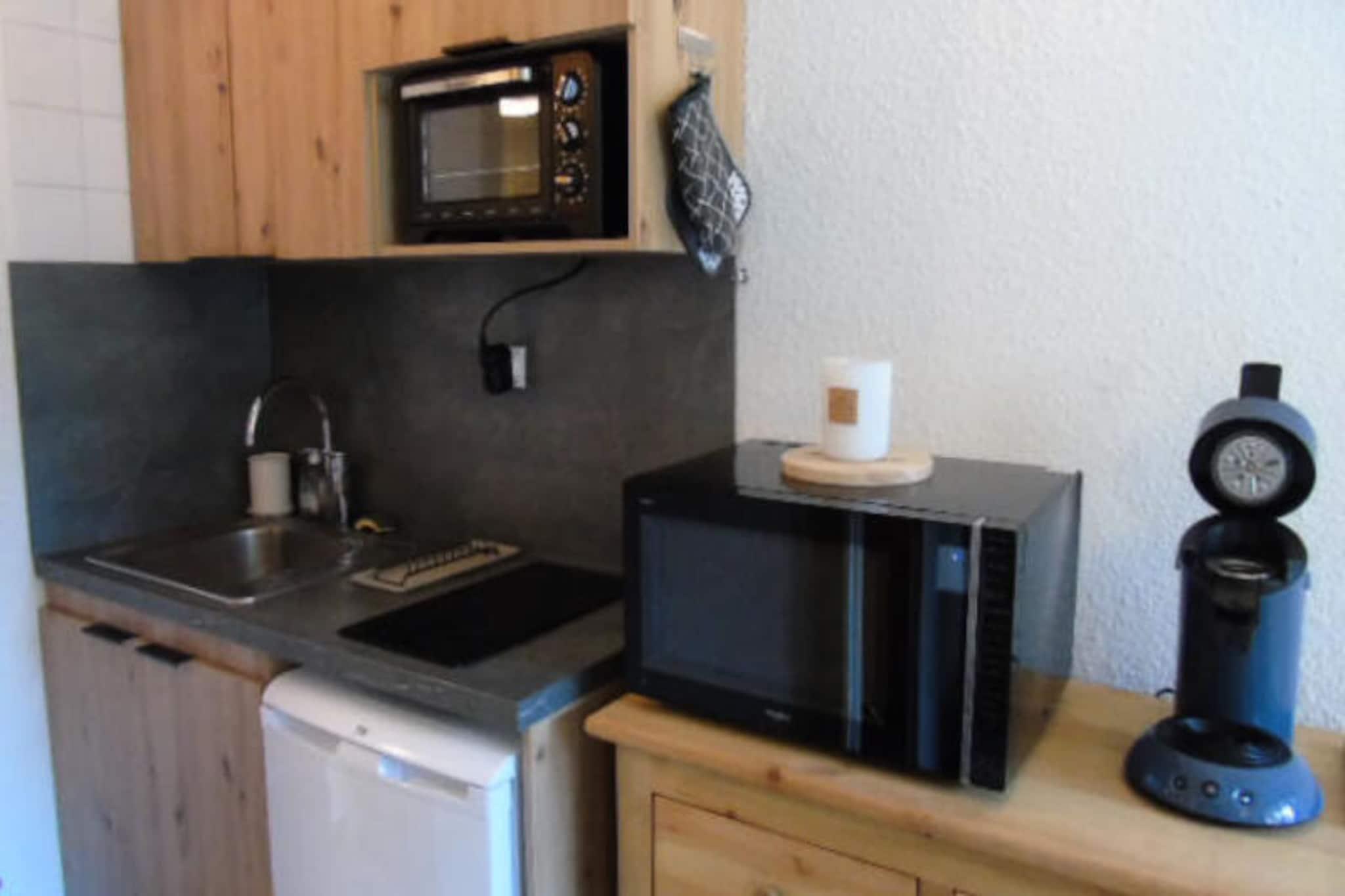 I udkanten af ??den maleriske Vanoise Nationalpark tilbyder denne charmerende studiolejlighed i Valfréjus et hyggeligt tilflugtssted for par eller små grupper, der søger en alpin ferie. Ejendommen blev renoveret i 2022 og ligger i Thabor Residence, kun 20 meter fra Arrondaz-svævebanen og lokale butikker samt 50 meter fra skiskoler, hvilket gør den til en ideel base for både vintersportsentusiaster og sommereventyrere. Den nordvendte terrasse tilbyder en fredfyldt udsigt over den omkringliggende naturskønhed og inviterer dig til at slappe af og nyde den rolige bjergatmosfære. \n\nIndvendigt er lejligheden omhyggeligt designet til at maksimere komfort og bekvemmelighed inden for sin 19 m² store planløsning. Det udstyrede tekøkken inkluderer moderne apparater såsom keramisk kogeplade, ovn, mikrobølgeovn, Nespresso-kaffemaskine og specialsæt til raclette og fondue, perfekt til at nyde traditionelle alpine måltider. Opholdsstuen har et tv og en sovesofa, der kan laves om til en dobbelt soveplads, mens en hyggelig sovealkove tilbyder en ekstra enkeltseng. Badeværelset er udstyret med badekar, håndvask, hårtørrer og toilet, hvilket sikrer et behageligt ophold. Sengelinned er inkluderet, og yderligere faciliteter såsom skiboks og støvsuger er inkluderet for din bekvemmelighed.\n\nValfréjus er et pulserende feriested med gratis udendørs parkering og en række tjenester tilgængelige, herunder liftkort, udlejning af udstyr og aktivitetskort til sommergæster. Uanset om du udforsker de uberørte stier i Vanoise Nationalpark, glider ned ad pisterne eller blot nyder de lokale butikker og restauranter, placerer dette studie dig i hjertet af det hele. Med sin førsteklasses beliggenhed og moderne komfort er det det perfekte valg til en mindeværdig alpin ferie.