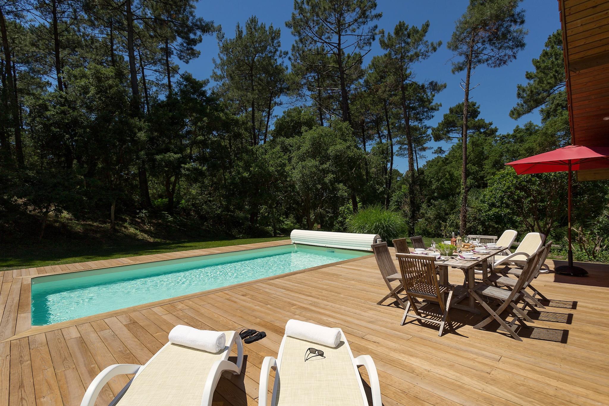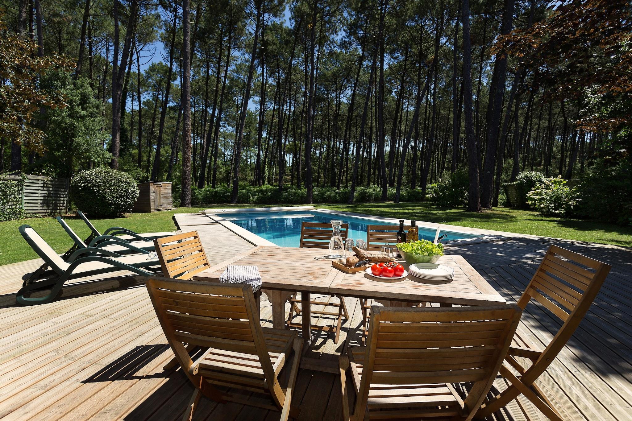 Velkommen til din fredfyldte flugt i hjertet af Moliets, beliggende mellem Atlanterhavet og et hav af fyrretræer. Denne smukke villa i Landes-stil blander rustik fransk charme med moderne bekvemmeligheder og byder på en rummelig have, privat pool og hyggelig pejs. Uanset om du nyder morgenkaffe på træterrassen eller nyder et aftenbad i boblebadet, er hver detalje designet til afslapning. Villaen sover op til 8 og tilbyder fleksible sovearrangementer perfekt til familier eller grupper. Beliggende lige ved Golf de Moliets-banen og kun 1,2 km fra uberørte strande via naturskønne cykelstier, er denne villa en drøm for udendørsentusiaster. Tilbring dine morgener med at tee ud, dine eftermiddage med at slappe af på det gyldne sand, og dine aftener med at spise under stjernerne. Du er også en kort gåtur fra tennisbaner, en indbydende hotelbar og en charmerende restaurant. For dagsture, udforsk nærliggende Biarritz, Saint-Jean-de-Luz eller den spanske grænseby Hendaye - hver kun en time væk. Tag din lodne ven med! Moliets er vidunderligt kæledyrsvenligt og tilbyder hundevenlige strande og fyrretræsduftende vandrestier som Courant d'Huchet naturreservat. Lokale caféer udstiller endda vandskåle og godbidder til firbenede gæster. Uanset om du er på eventyr med din hvalp eller slapper af ved poolen, tilbyder denne villa en virkelig inkluderende og uforglemmelig ferie ved Atlanterhavet.