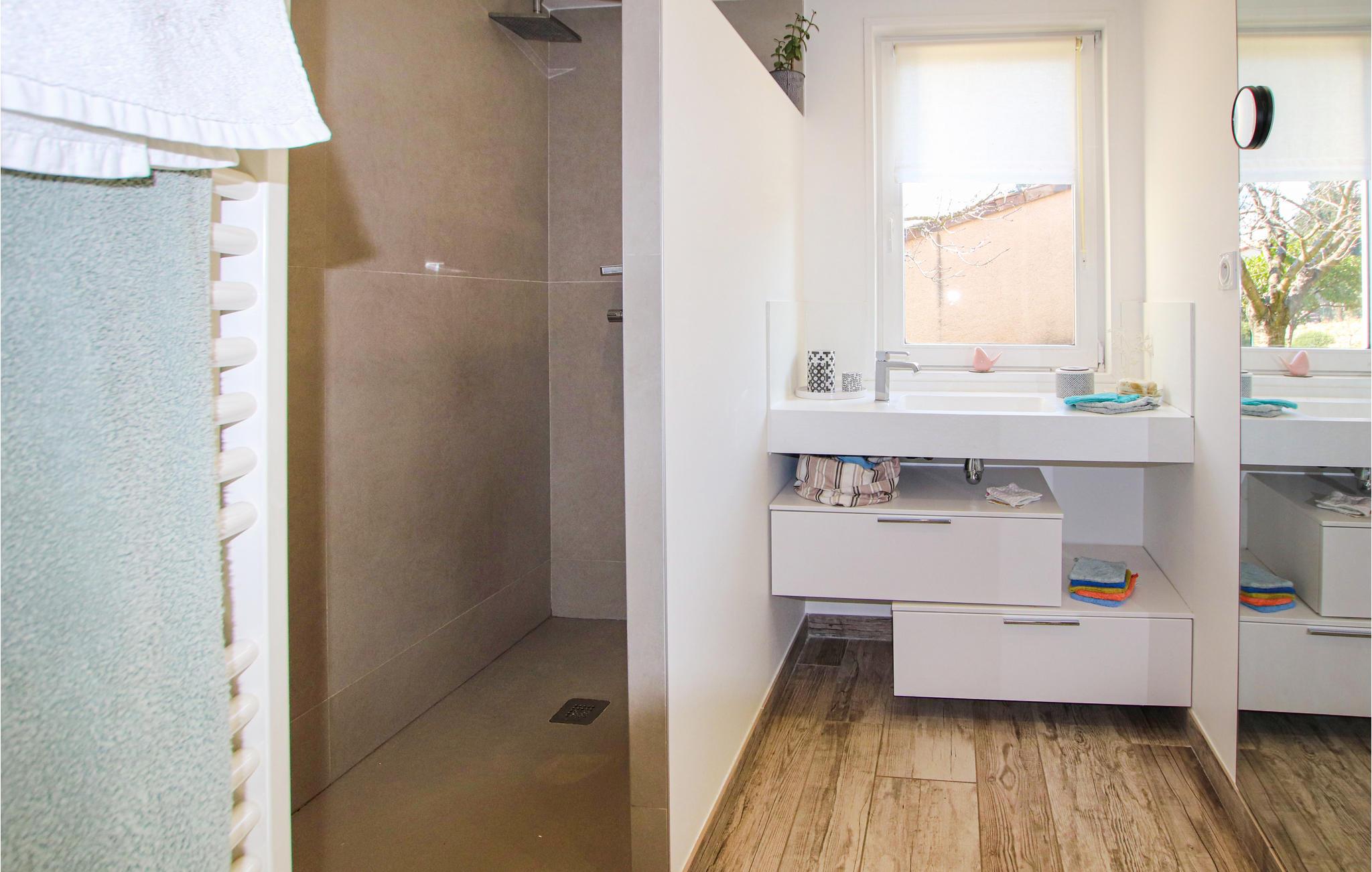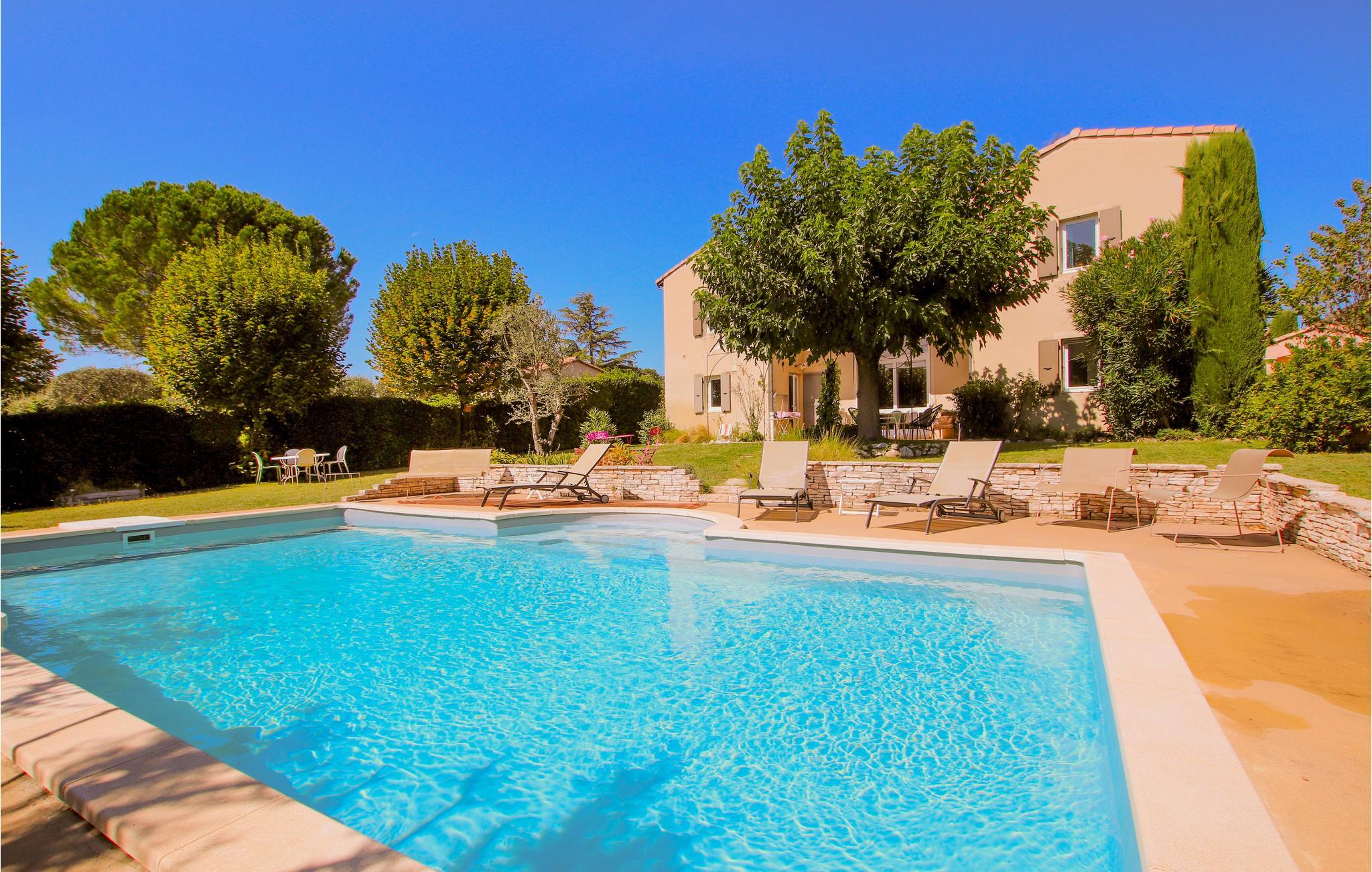 Denne skønne moderne villa ligger højt placeret i middelalderlandsbyen Sauzet, tæt på smuk natur.