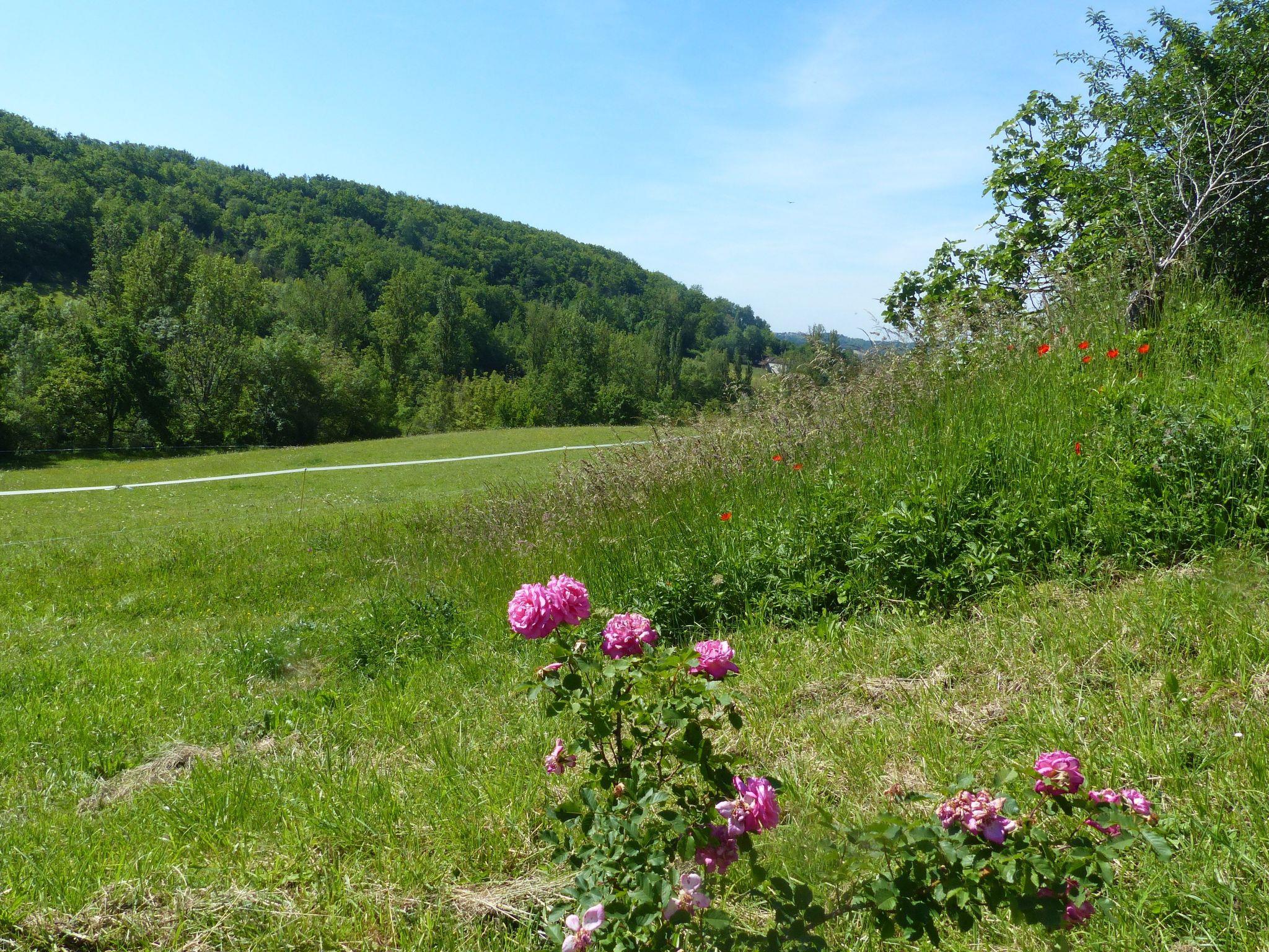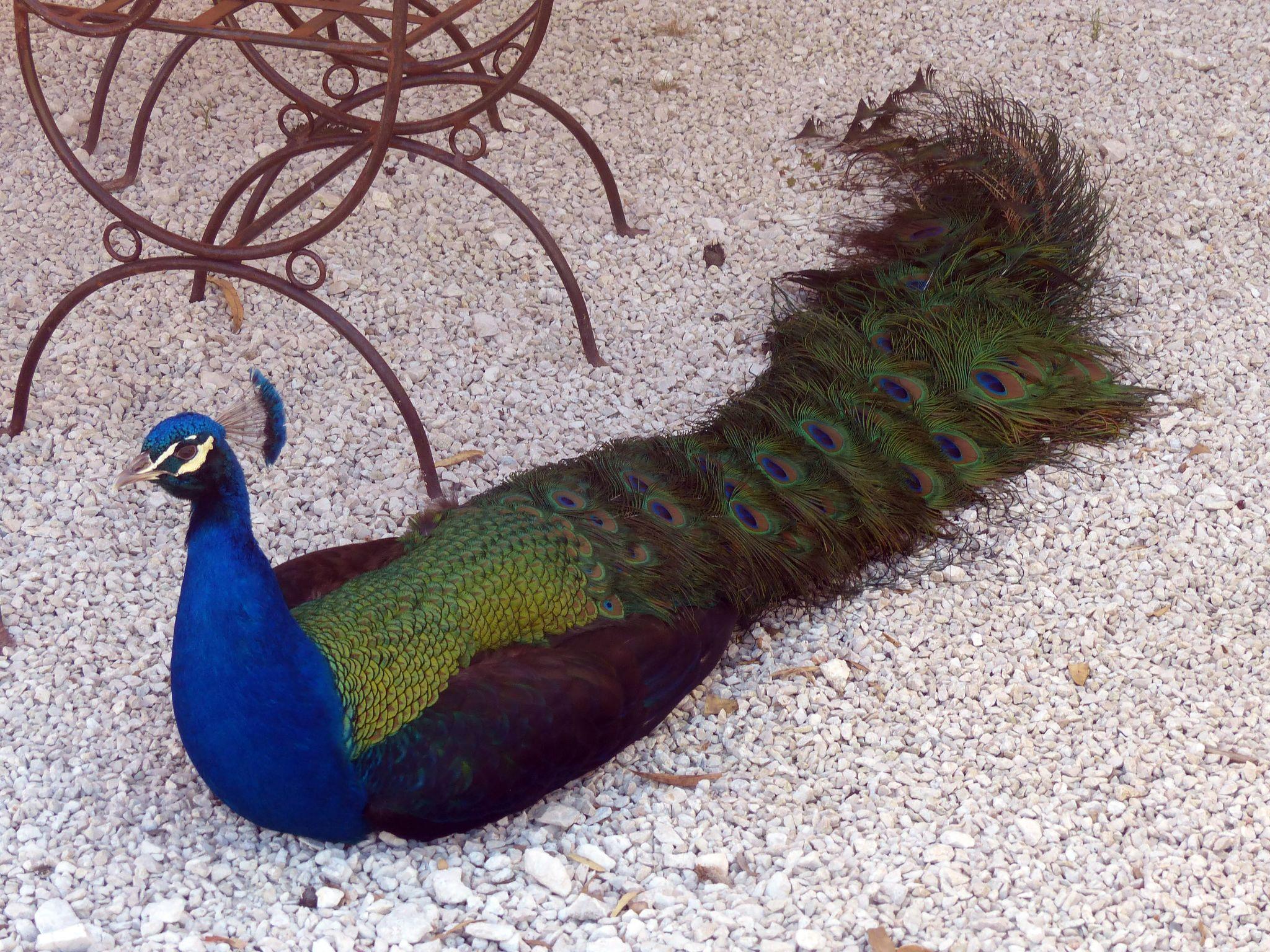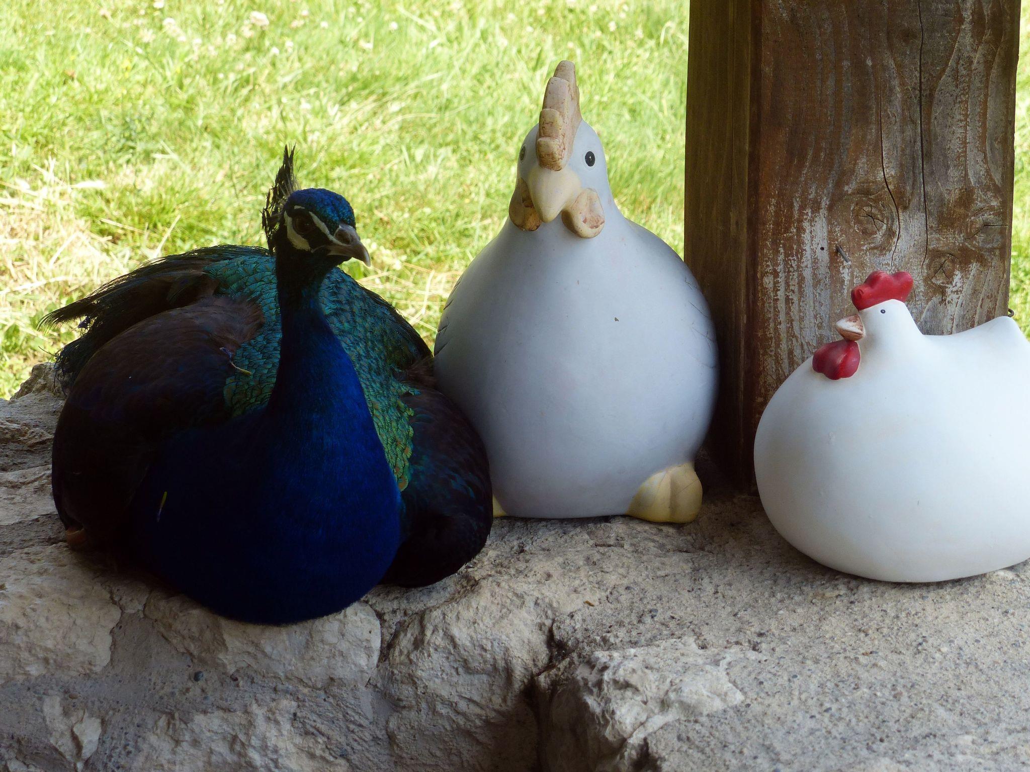 With a bit of luck, you can feel like Asterix and Obelix in the evening and watch the wild boars at our spring on the other side of the valley. Our animals (3 dogs, 2 cats and 7 peacocks) romp around on the "village square" and keep things busy. We love children and children love our peacock farm!