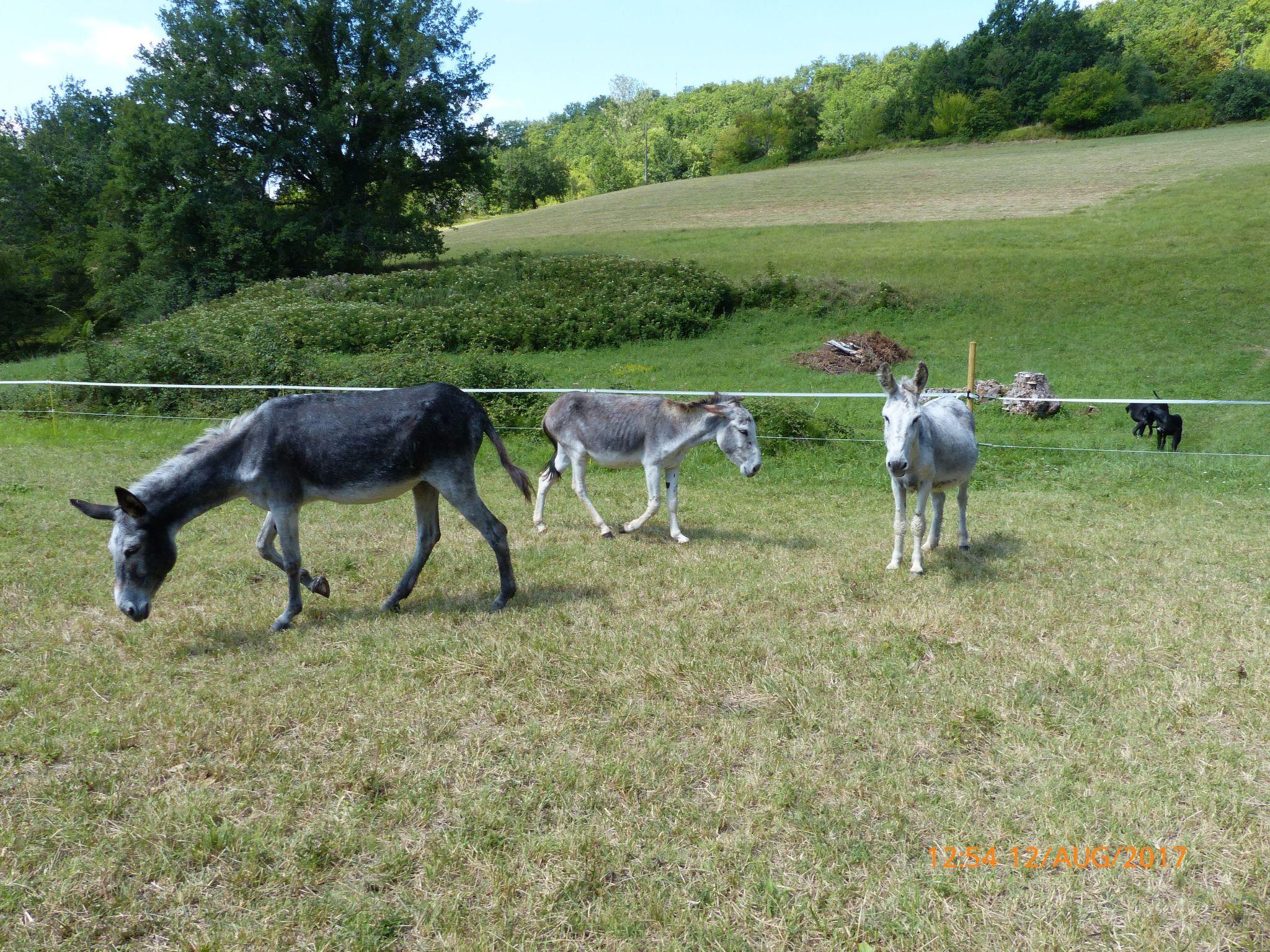 When you enter the house from our "village square", you will find yourself in a wonderful location that is almost all yours! The pergola-covered terrace with its magnificent view is equipped with a new table and chairs for 4 people, and the child-proof fenced pool (7.5 x 12.5 m) with sunbathing area and sun loungers is all yours! Behind it is a children's playground the size of a football pitch with a petanque court. On the opposite side of our "village square" is a small, open games room with a games table (cards, poker etc.), darts and lots of toys. Down in our valley is the private "nature reserve", the Lac du Polonaise, which was created almost 100 years ago by a Polish owner of the estate. On our private zoo on the farm there are 2 dogs (a large Great Dane and a French special mix), they are all very affectionate and friendly, the 7 cats keep their distance, the 6 peacocks romp around the farm and retreat to the oak trees at night and the donkeys are either in the stable or in the pasture, they are also very affectionate and trusting.