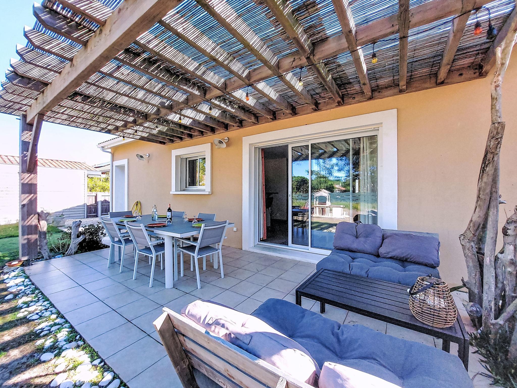 Single-family house "Les Ormes", built in 2012. 1.5 km from the centre of Montalivet, 21 km from the centre of Lesparre, 85 km from the centre of Bordeaux, in the residential district, 1.5 km from the sea. Private: natural state property 800 m2 (fenced) with trees. Pergola, parking (for 2 cars) at the house on the premises. Supermarket 1.5 km, bus stop "Av. De l'Europe/Montalivet" 800 m, sandy beach "Montalivet" 1.5 km.