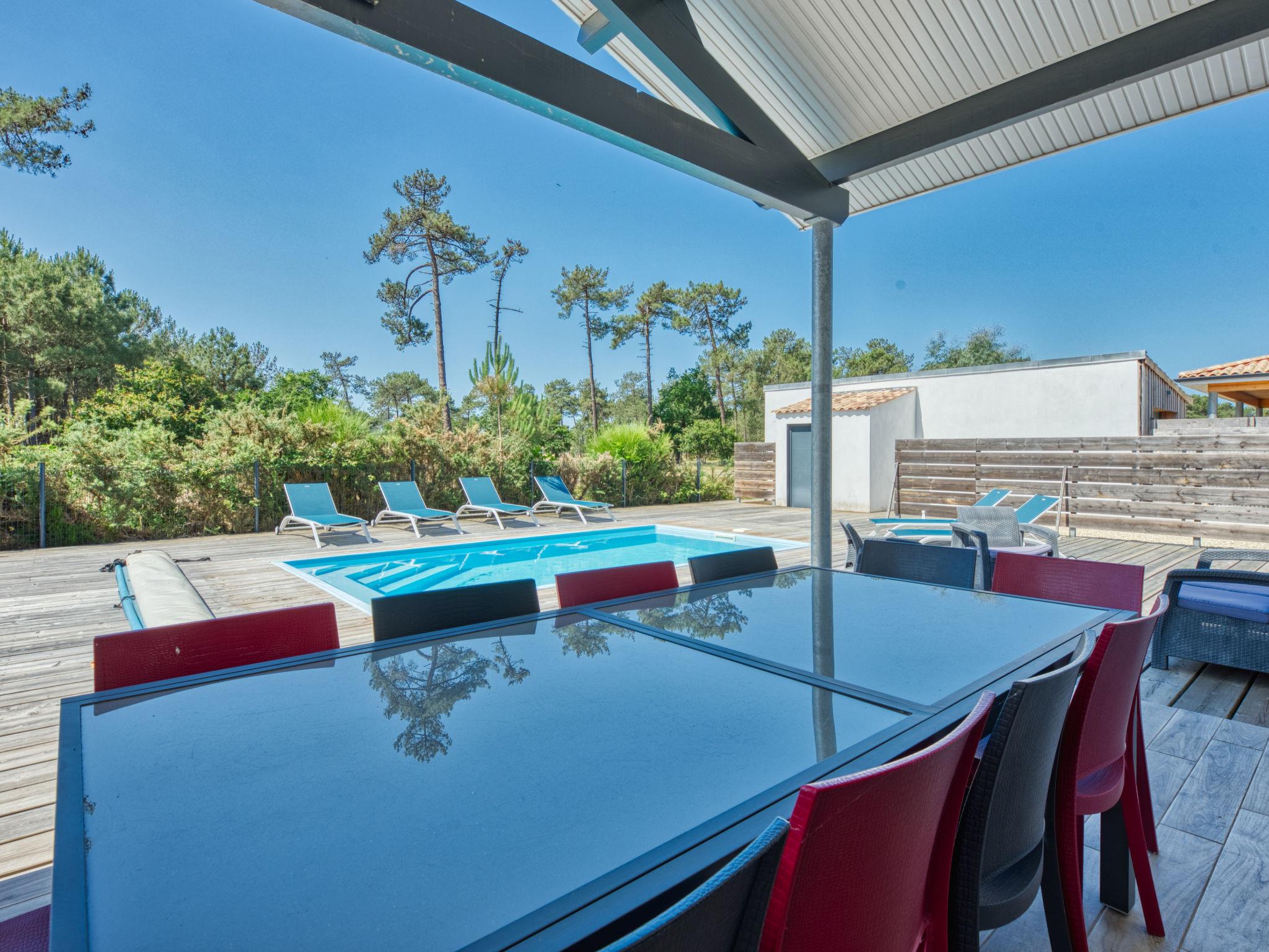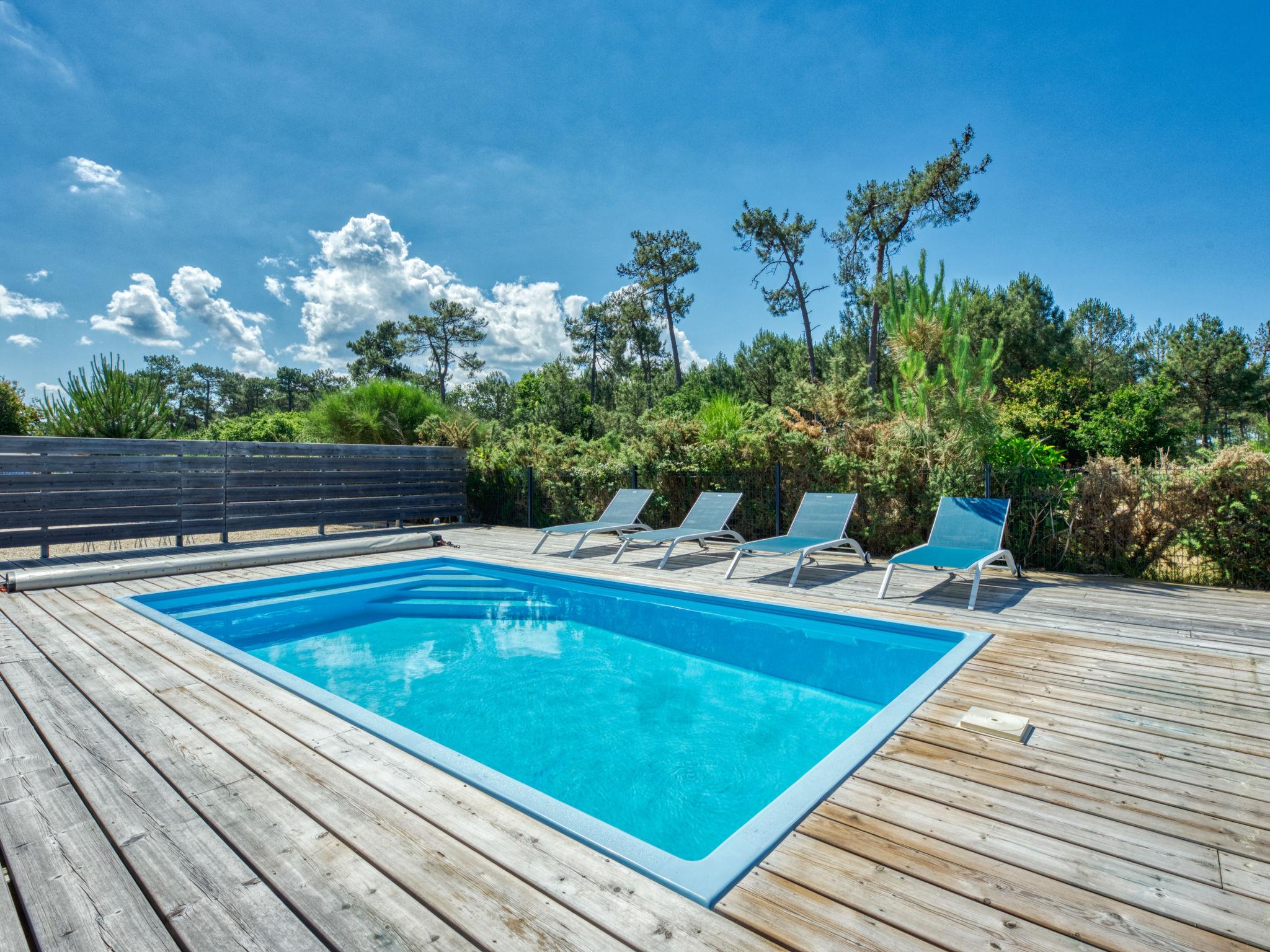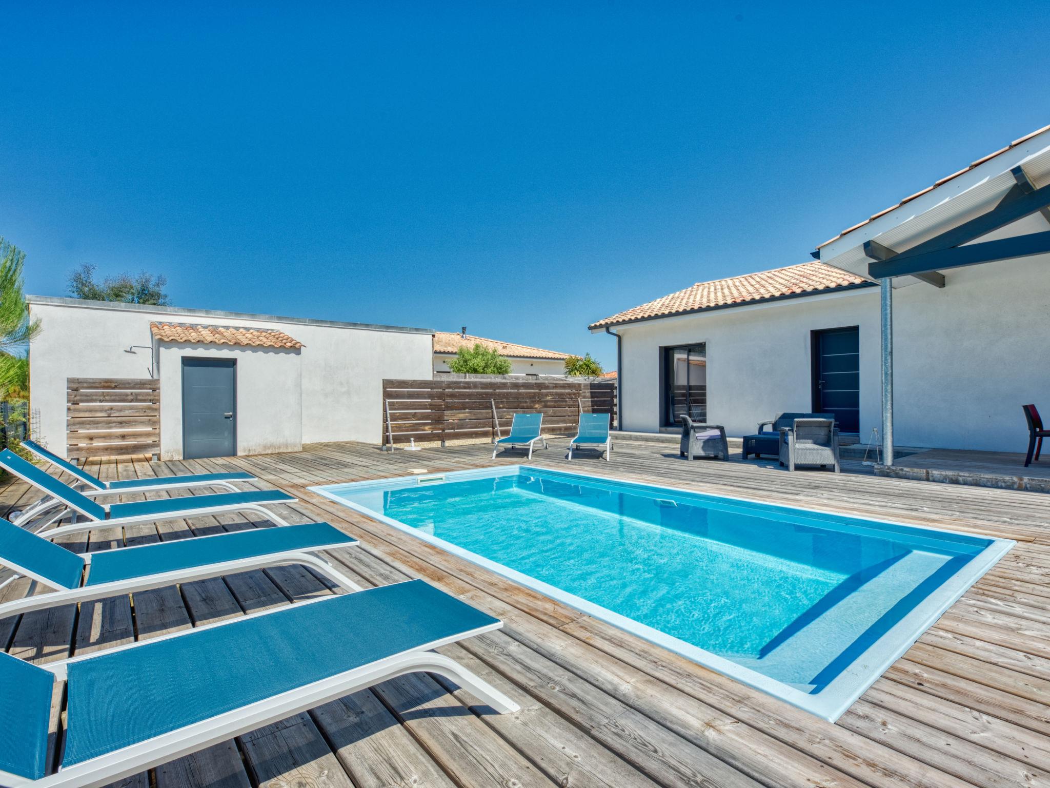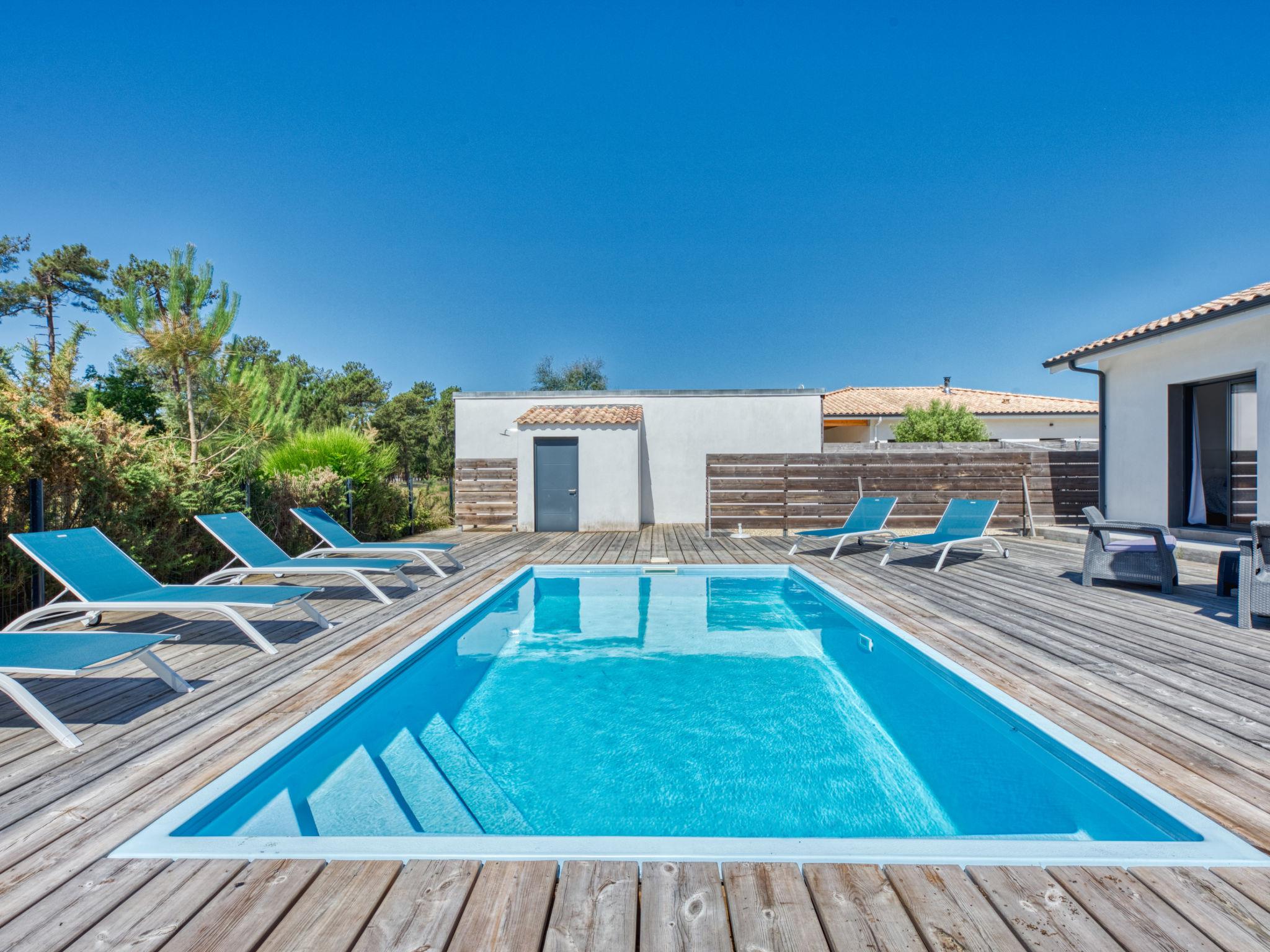 Modern, beautiful, comfortable villa "Les Alyzés", built in 2019. In the district of Vensac-Océan 2.5 km from the centre of Montalivet, 9 km from the centre of Vendays, 85 km from the centre of Bordeaux, in the residential district, 1.5 km from the sea. Private: property 600 m2 (fenced), swimming pool (7 x 4 m, depth 140 cm, seasonal availability: 01.May. - 31.Oct.) with internal staircase and shutter cover. Outdoor shower, terrace, parking (for 3 cars) at the house on the premises. Supermarket 2.5 km, bus stop "Av. De l'Europe/Montalivet" 2 km, sandy beach 1.5 km. Cycle lane 50 m. The owner does not accept any groups. Neighbourhood highly sensitive to noise. Quietness and good behaviour expected.