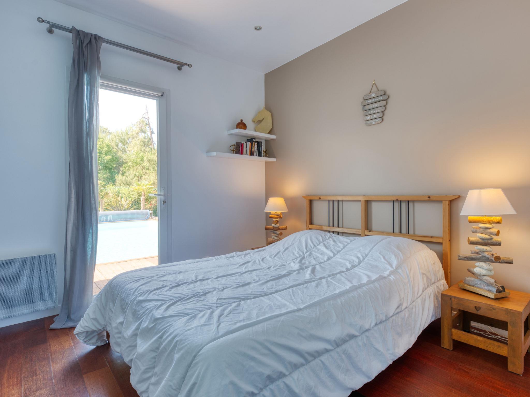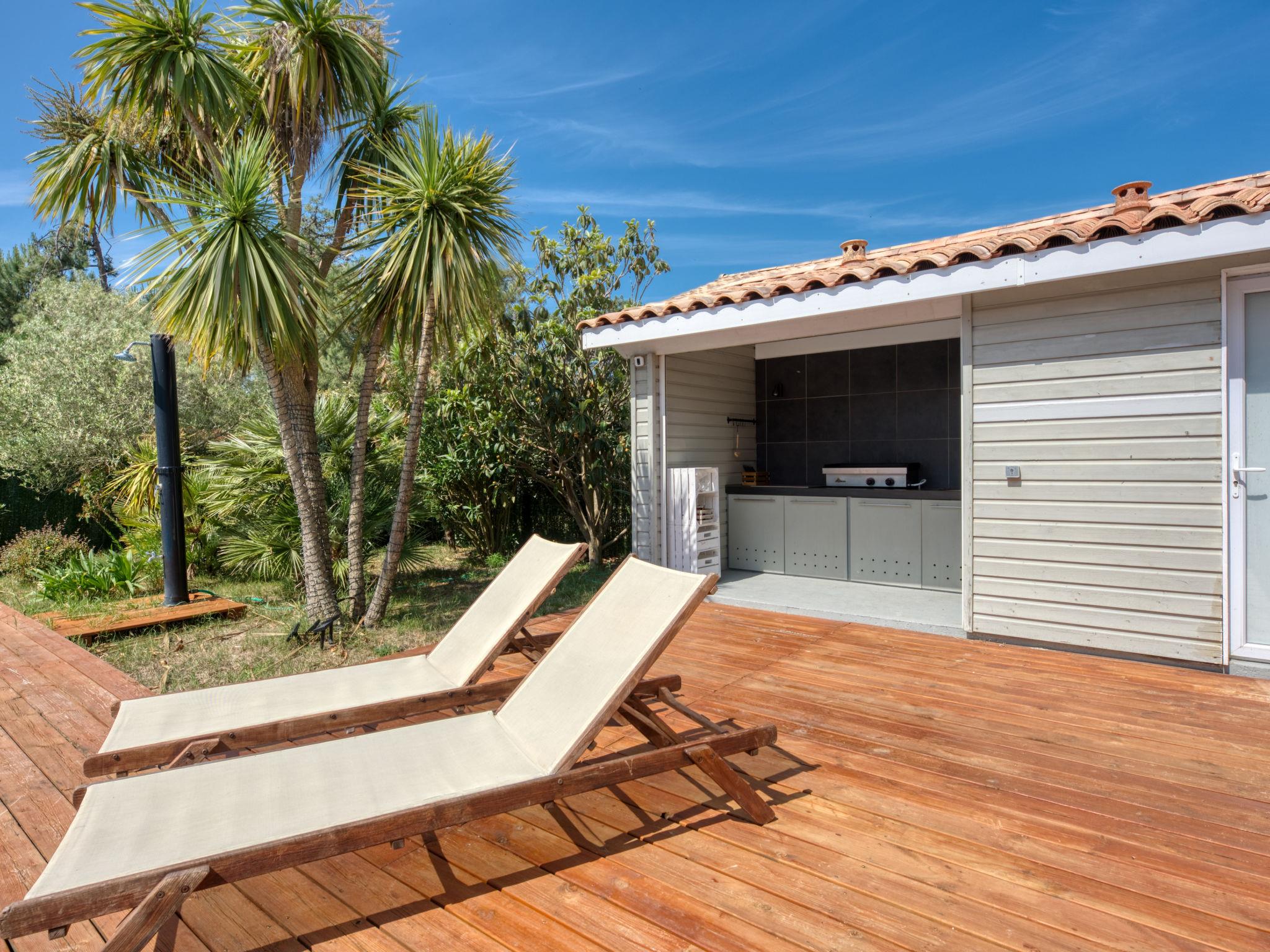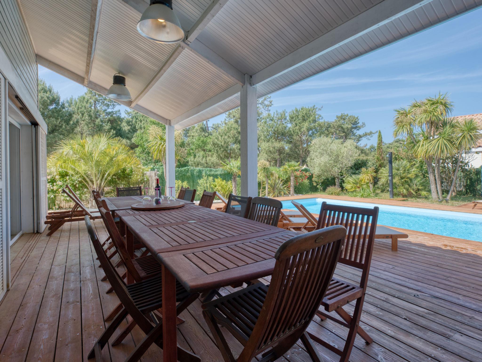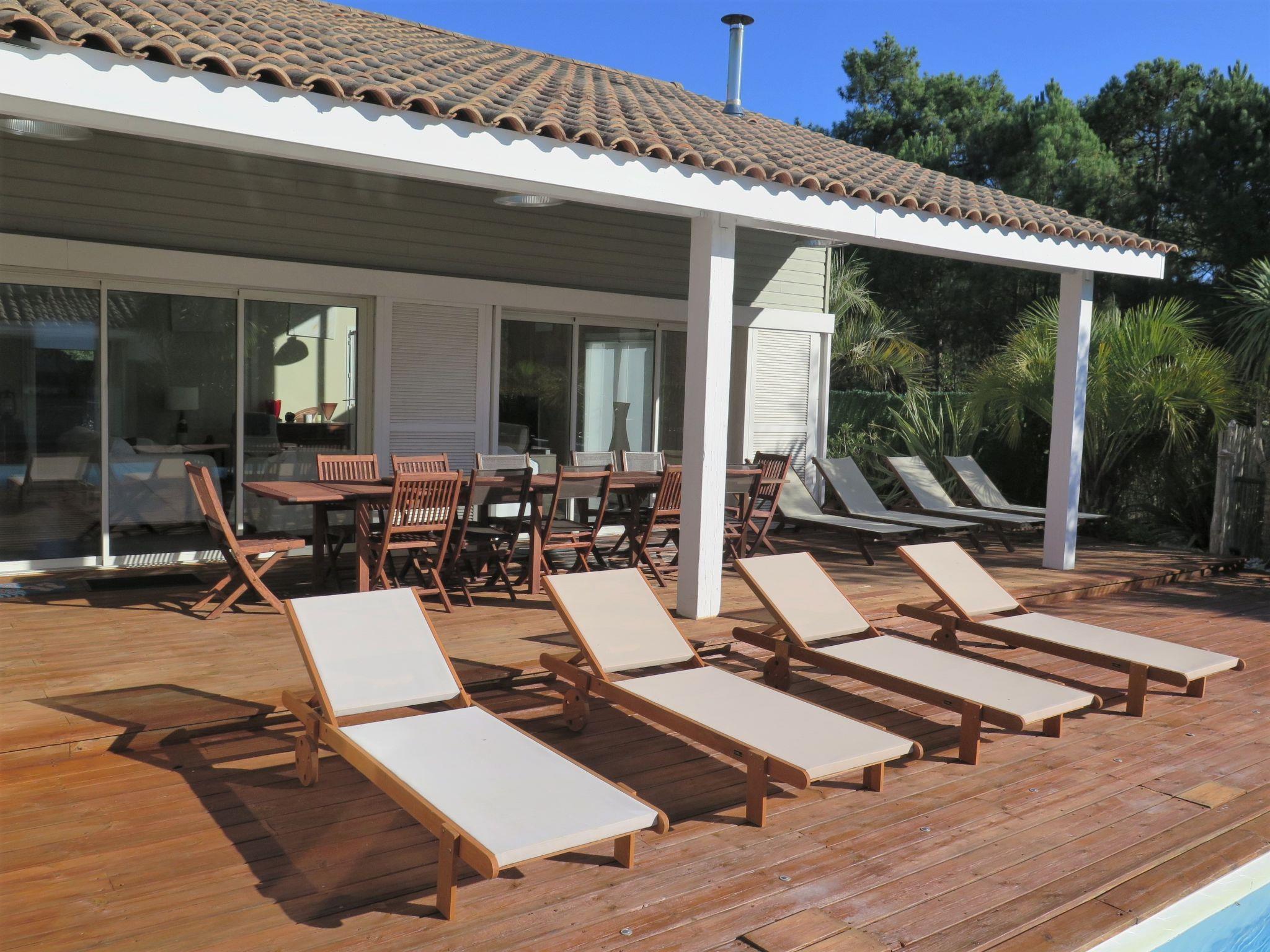 Modern, beautiful, comfortable villa "Jusant". In the district of Vensac-Océan 1.5 km from the centre of Montalivet, 9 km from the centre of Vendays, 85 km from the centre of Bordeaux, in the residential district, 800 m from the sea. Private: property 900 m2 (fenced), well-kept garden, swimming pool angular, heated (8 x 4 m, depth 170 cm, seasonal availability: 01.May. - 31.Oct.) with shutter cover and salt-electrolysis pool-cleaning system. Outdoor shower, table tennis, terrace, parking (for 2 cars) at the house on the premises, public parking on the road. Shop 1.5 km, supermarket 2.5 km, restaurant 1.5 km, bus stop "Av. De l'Europe/Montalivet" 1.5 km, sandy beach "Vensac-Océan" 1 km. Cycle lane 10 m. Nearby attractions: Accrobranche, paintball, karting, surf. The owner does not accept any groups. Neighbourhood highly sensitive to noise. Quietness and good behaviour expected.