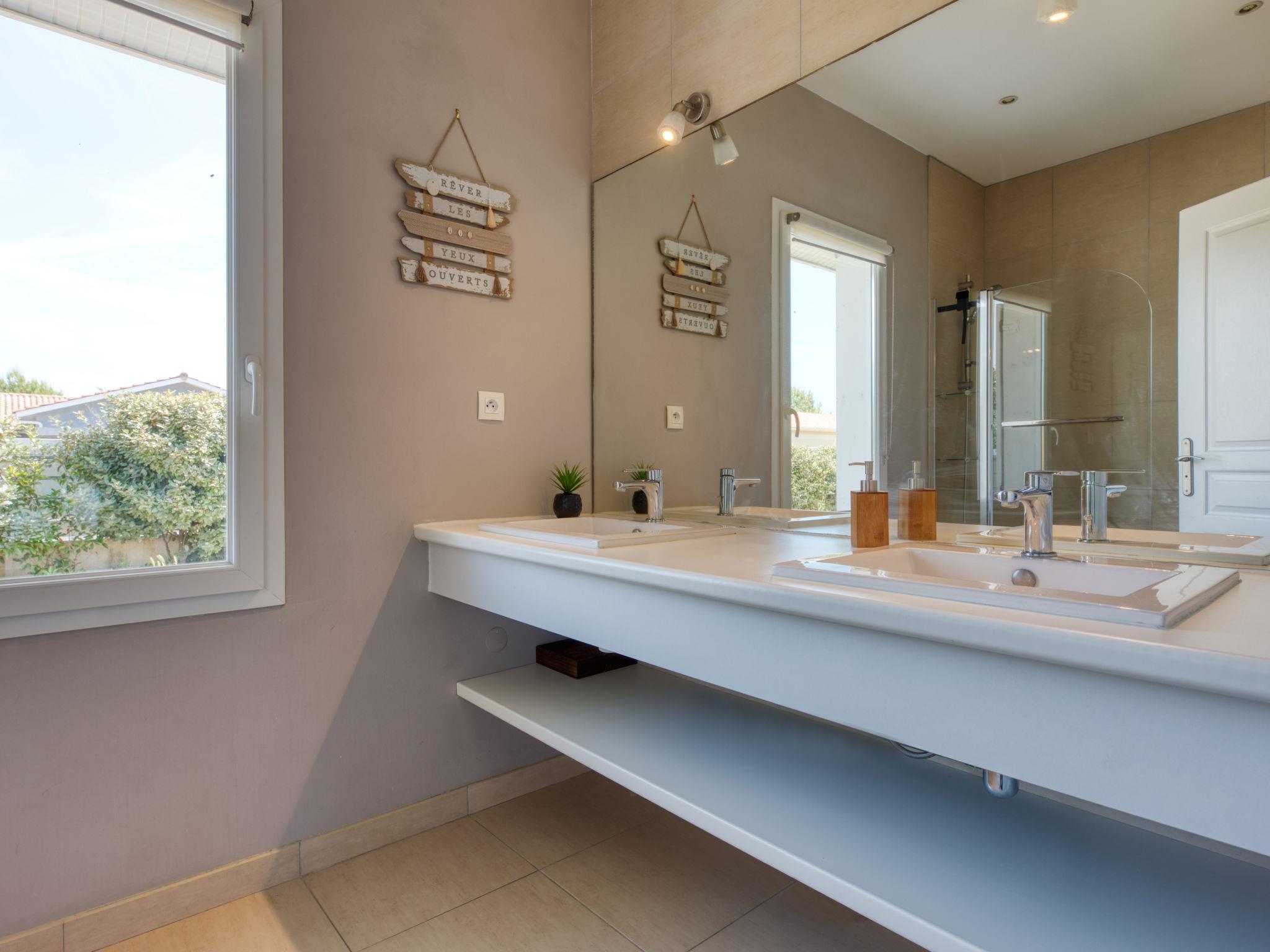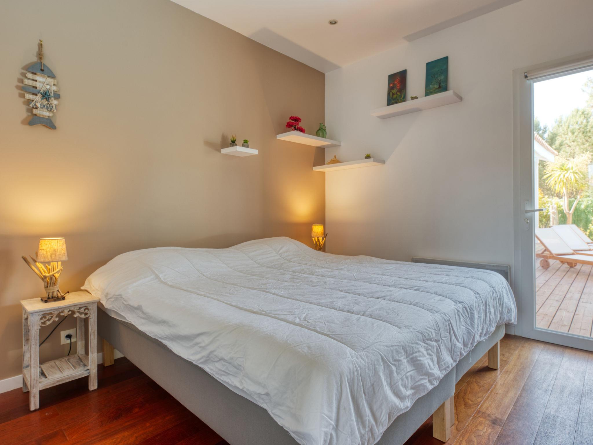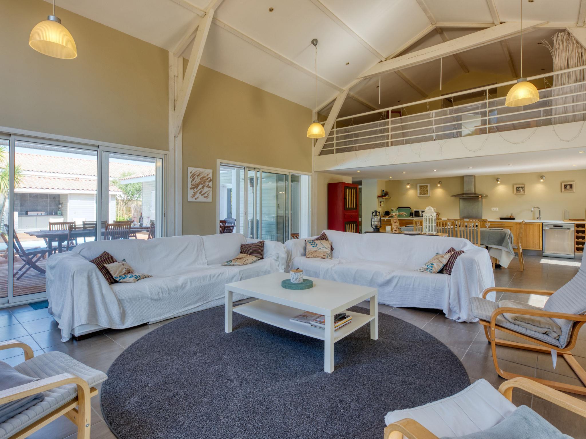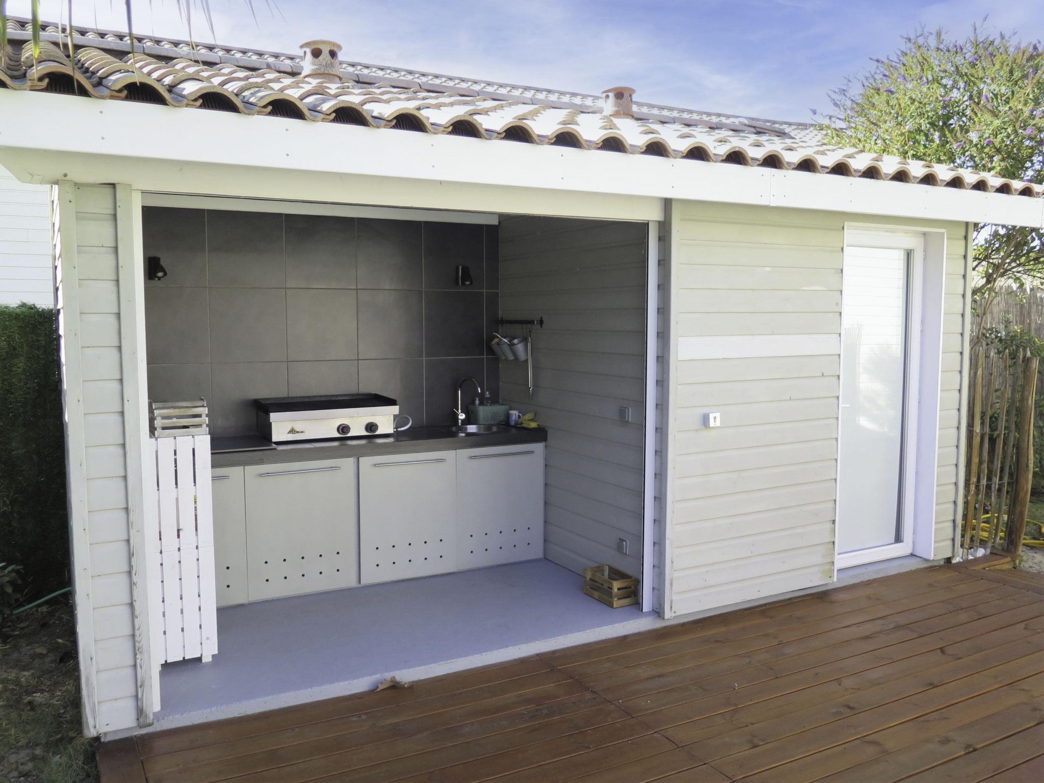 Modern, beautiful, comfortable villa "Jusant". In the district of Vensac-Océan 1.5 km from the centre of Montalivet, 9 km from the centre of Vendays, 85 km from the centre of Bordeaux, in the residential district, 800 m from the sea. Private: property 900 m2 (fenced), well-kept garden, swimming pool angular, heated (8 x 4 m, depth 170 cm, seasonal availability: 01.May. - 31.Oct.) with shutter cover and salt-electrolysis pool-cleaning system. Outdoor shower, table tennis, terrace, parking (for 2 cars) at the house on the premises, public parking on the road. Shop 1.5 km, supermarket 2.5 km, restaurant 1.5 km, bus stop "Av. De l'Europe/Montalivet" 1.5 km, sandy beach "Vensac-Océan" 1 km. Cycle lane 10 m. Nearby attractions: Accrobranche, paintball, karting, surf. The owner does not accept any groups. Neighbourhood highly sensitive to noise. Quietness and good behaviour expected.