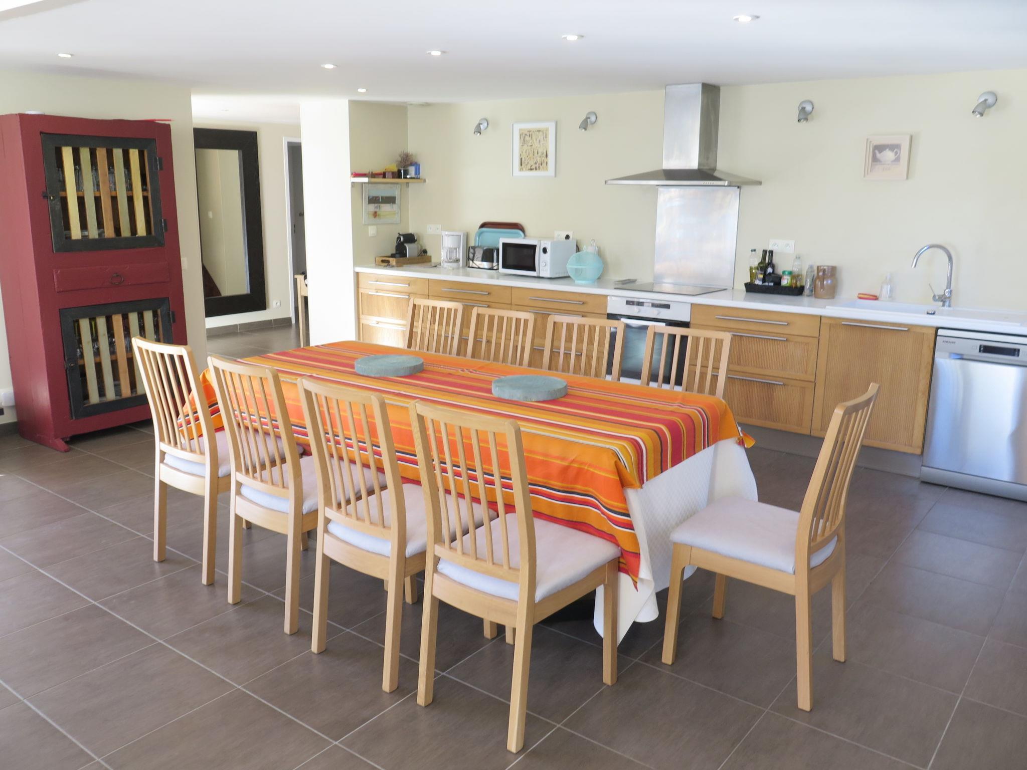 6-room villa 180 m2 on 2 levels. Spacious and bright, comfortable and beautiful furnishings: large entrance hall. Large living/dining room 75 m2 with panoramic window with dining table and TV (flat screen). Exit to the terrace. 1 room with 1 french bed (160 cm, length 200 cm), shower and double hand-basin. Exit to the terrace. 1 room with 1 french bed (140 cm, length 200 cm). Exit to the terrace. 1 room with 2 beds (90 cm, length 200 cm). Exit to the terrace. Large, open kitchen (oven, dishwasher, 4 induction hot plates, toaster, kettle, microwave, freezer, electric coffee machine, Capsules for coffee machine (Nespresso) extra). Exit to the terrace. Bathroom, sep. WC, double hand-basin. Upper floor: gallery with sloping ceilings with TV (flat screen). 1 room with sloping ceilings with 1 french bed (140 cm, length 200 cm). 1 room with sloping ceilings with 2 beds (90 cm, length 200 cm). Shower, sep. WC. Electric heating. Large terrace partly roofed. Terrace furniture, deck chairs (8). Facilities: washing machine, iron, children's high chair, baby cot, hair dryer. Internet (WiFi, free). Please note: suitable for families. Non-smoking house. Smoke alarm. Instead of an enclosed bedroom, some sleeping areas are located in an open-plan area (gallery, alcove, etc.). Offer by a private individual according to Art. 155, IV of CGI.