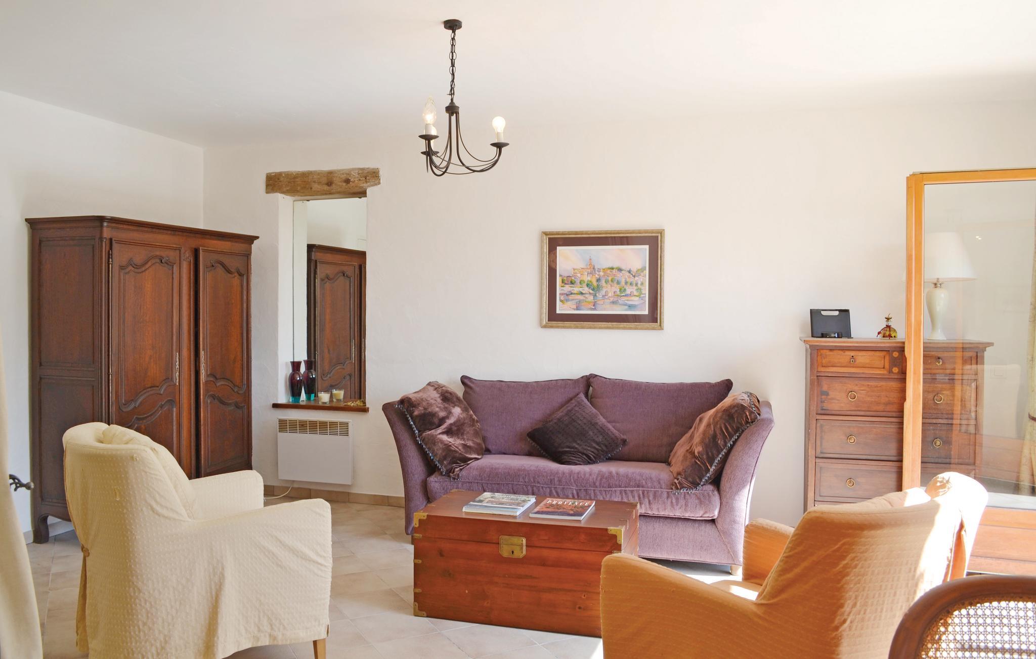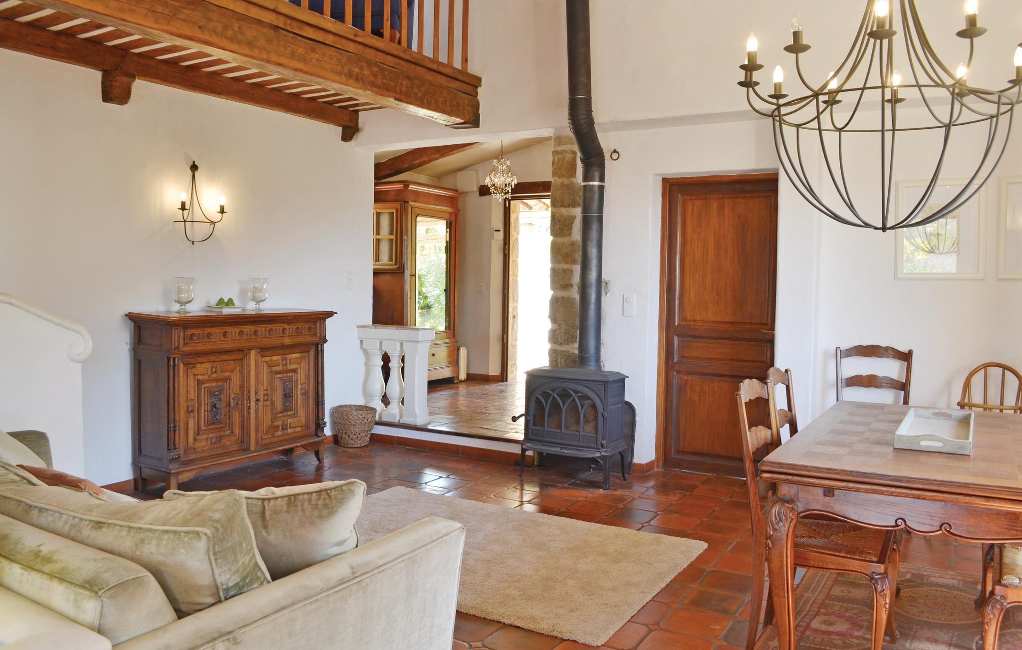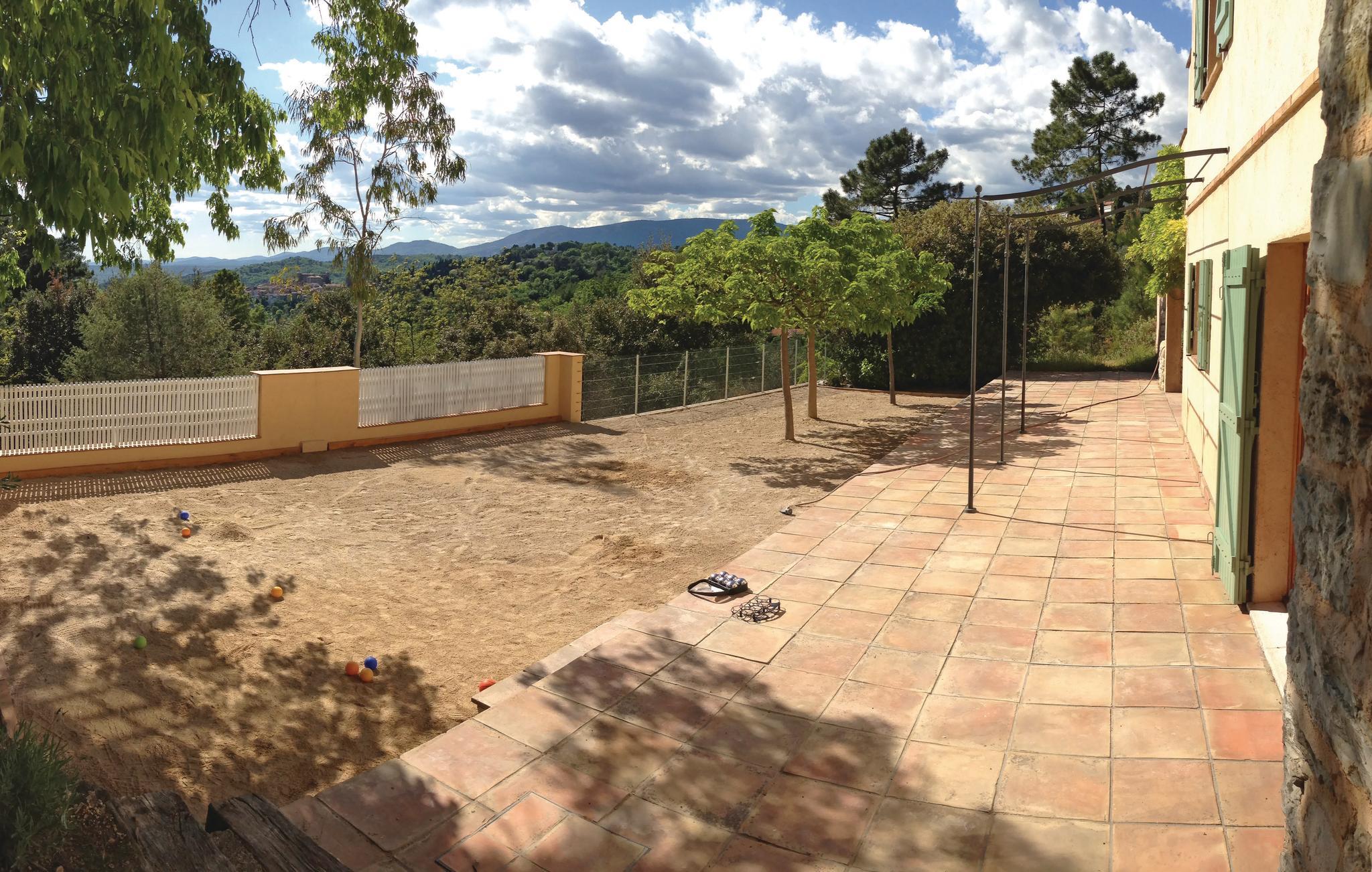 En indbydende villa med privat swimmingpool og en skøn udsigt til den middelalderlige landsby Callian og dets Château. Det er en oase af ro, hvor I roligt kan slappe af - ikke mindst efter en lang opdagelsesudflugt gennem regionen. Villaen har god plads til i alt ni gæster og er opdelt i to afdelinger: Hovedhuset har en rummelig stue og et stort køkken, der åbner ud til to terrasser. I stueetagen findes en lejlighed med to sovepladser og egen terrasse. Huset, som ligger helt ugenert og afskærmet for indsyn, har en absolut rolig og ugenert beliggenhed. Tag et spil boule på den private boulebane eller kast jer ud i et spil tennis. Den familievenlige villa ligger 850 m fra centrum af Montauroux. Udover Seillans og Fayence hører også dette sted, som iøvrigt har mange restauranter, til de fortryllende bjerglandsbyer ved Pays de Fayence. Omgivet af et pragtfuldt landskab lokker disse landsbyer med en rig kulturarv, regionale kulinariske oplevelser såvel som kunstnere. Hertil kommer de mange udstillinger og koncerter der arrangeres om sommeren. Hvis I gerne vil bade ligger badesøen Lac de Saint-Cassien indenfor 5 km såvel som Middelhavets strande 25 km. Til Cannes, Mandelieu og Frèjus er der en halv times kørsel (30 km). En seng til et ekstra barn kan stilles til rådighed. Poolen omgives af et terrasseområde. Grunden er anlagt i forskellige niveauer og egner sig ikke til små børn.