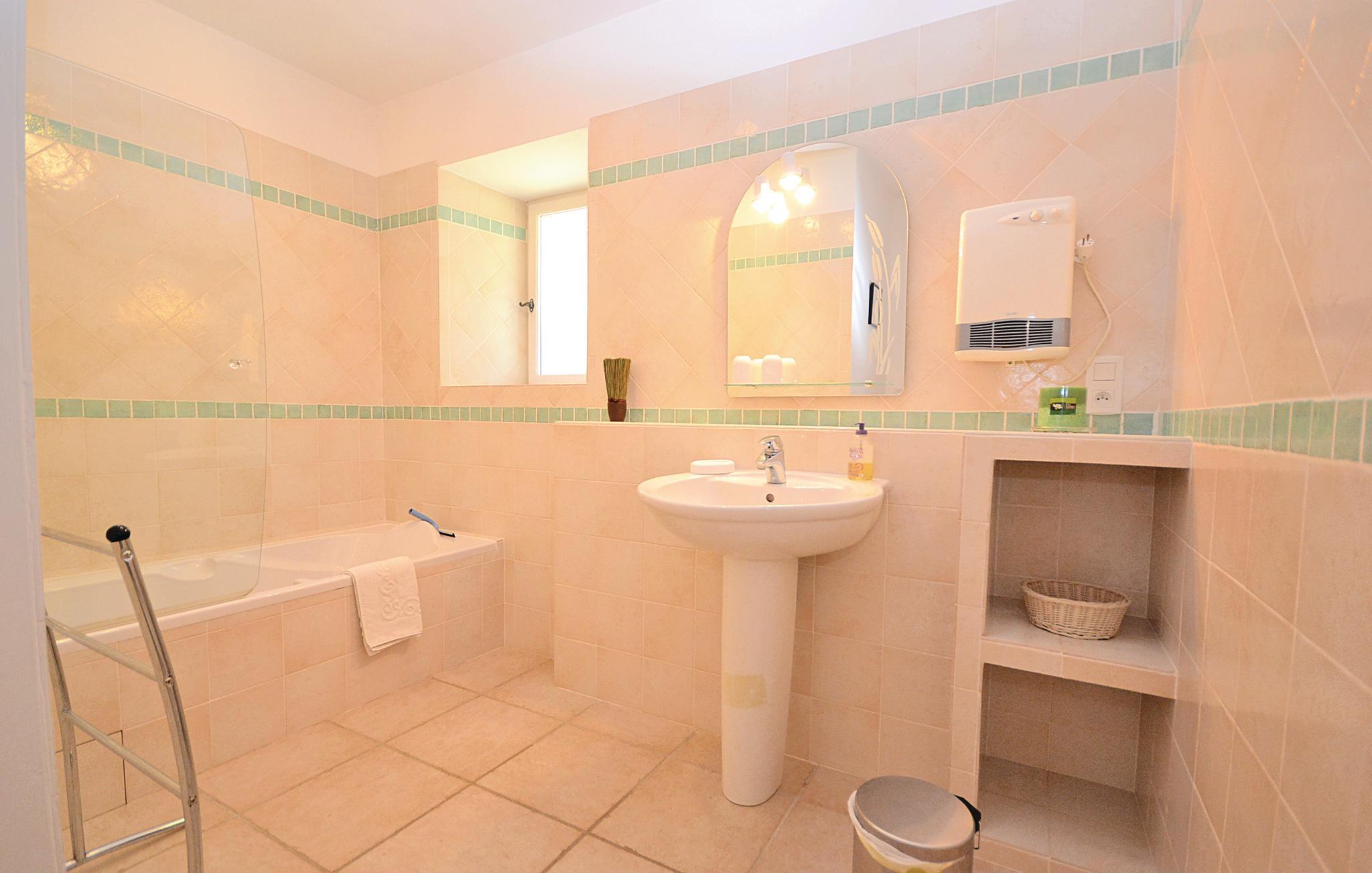 Nyd roen på disse steder og skønheden i dette smukke palæ, der er meget godt vedligeholdt. Opholdsrummene er på første sal, tilgængelige via en udvendig trappe med træbjælker og lyse farver. Hver af de 3 smukke soveværelser har sit eget badeværelse, hvoraf det ene har badekar og 2 separate toiletter. I kan nyde en stor panoramaterrasse med udsigt over det smukke land beplantet med frugttræer i hjertet af lavendelmarkerne og ejerne. Huset har terrasser på bagsiden og er uden naboer, så I nyder godt af en vidunderlig privat og fuldstændig sikker swimmingpool med overdækket terrasse. Det er perfekt til solbadning og tilbyder en smuk udsigt over de omkringliggende vinmarker.
