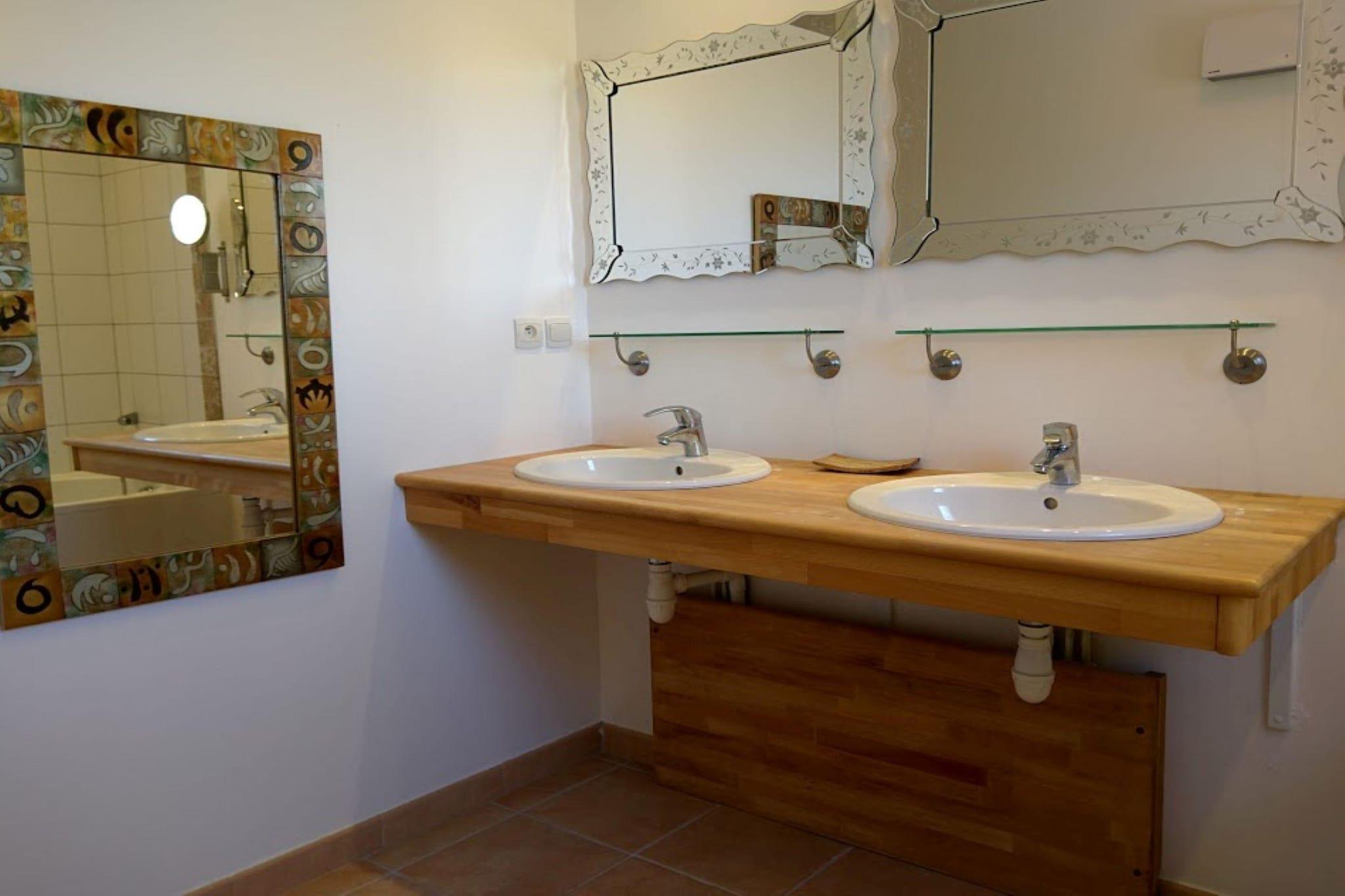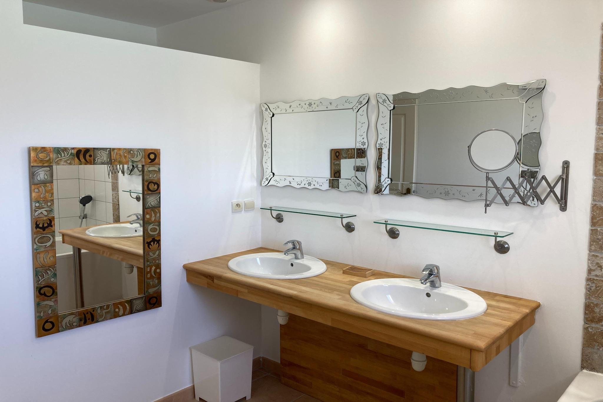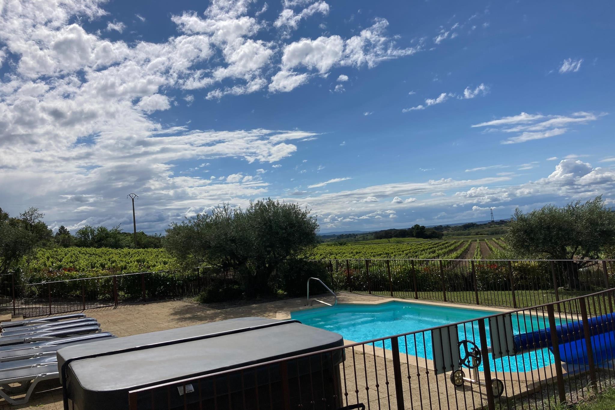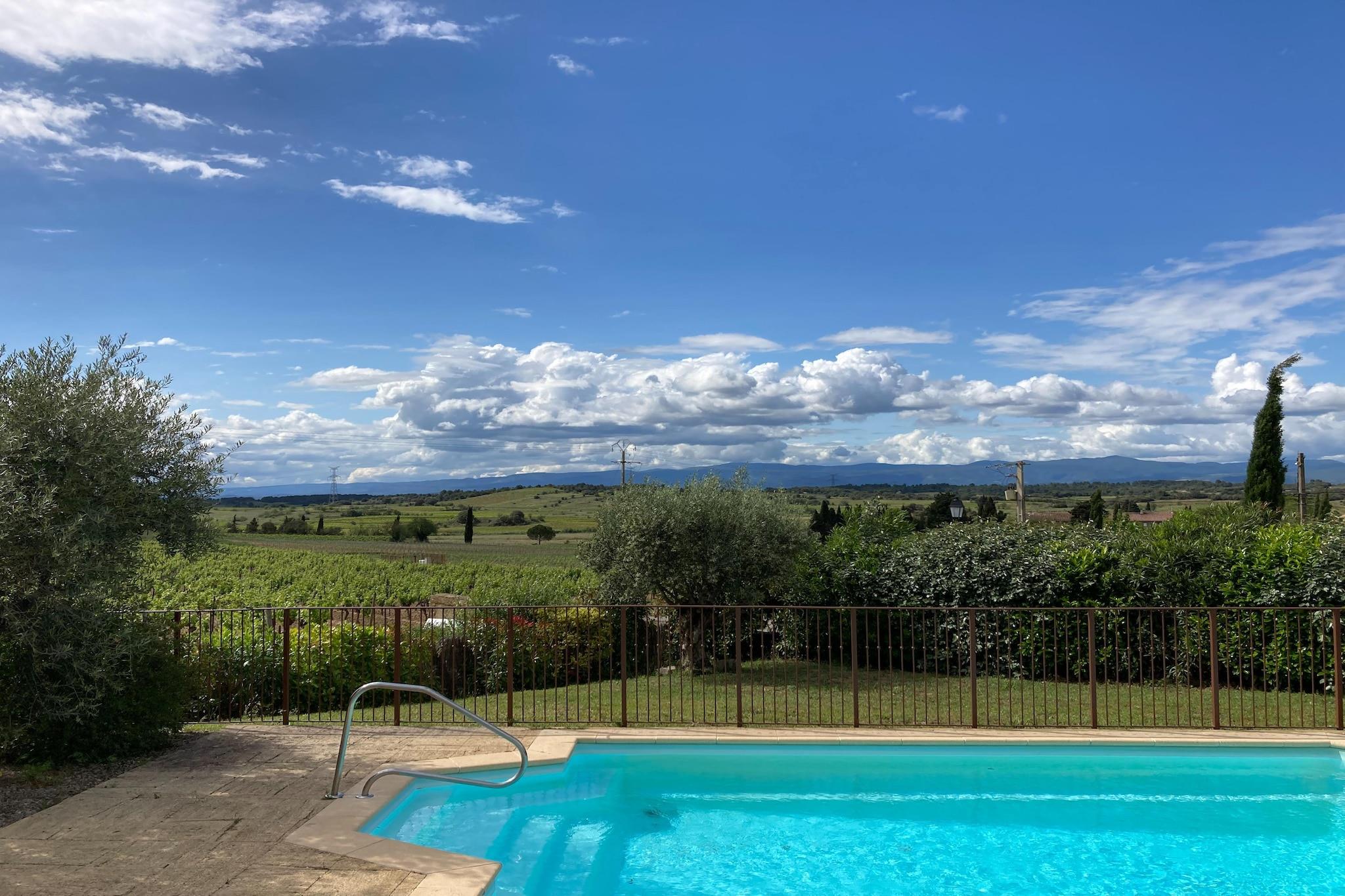 Denne 4-værelses villa i Montbrun-des-Corbières er et dejligt tilflugtssted for op til otte gæster, ideelt for familier med børn. Det har en privat swimmingpool og et beroligende boblebad til ultimativ afslapning. Terrassen, liggestolene og grillpladsen skaber perfekte udendørs rammer, mens aircondition sikrer komfort indendørs. To kæledyr er velkomne mod et mindre gebyr, og parkering er tilgængelig. Villaen er omgivet af vinmarker, gamle kirker og den naturskønne Montagne Noire og byder på en malerisk kulisse. Canal du Midi ligger kun 7 km væk, ideel til fredelige gåture eller bådtur. Eventyrsøgende kan nyde vandreture, kanosejlads og cykle i nærheden, mens Narbonne Plage ligger 49 km derfra for strandelskere. Tennisbaner, golfbaner og vandsport er alle inden for rækkevidde. Bekvemt beliggende nær restauranter (11 km), supermarkeder (7,5 km) og bagerier, er villaen også tæt på Carcassonne Lufthavn (30 km) og togstationen (7 km). Uanset om du udforsker landskabet eller slapper af ved poolen, lover denne villa et mindeværdigt og foryngende ophold.