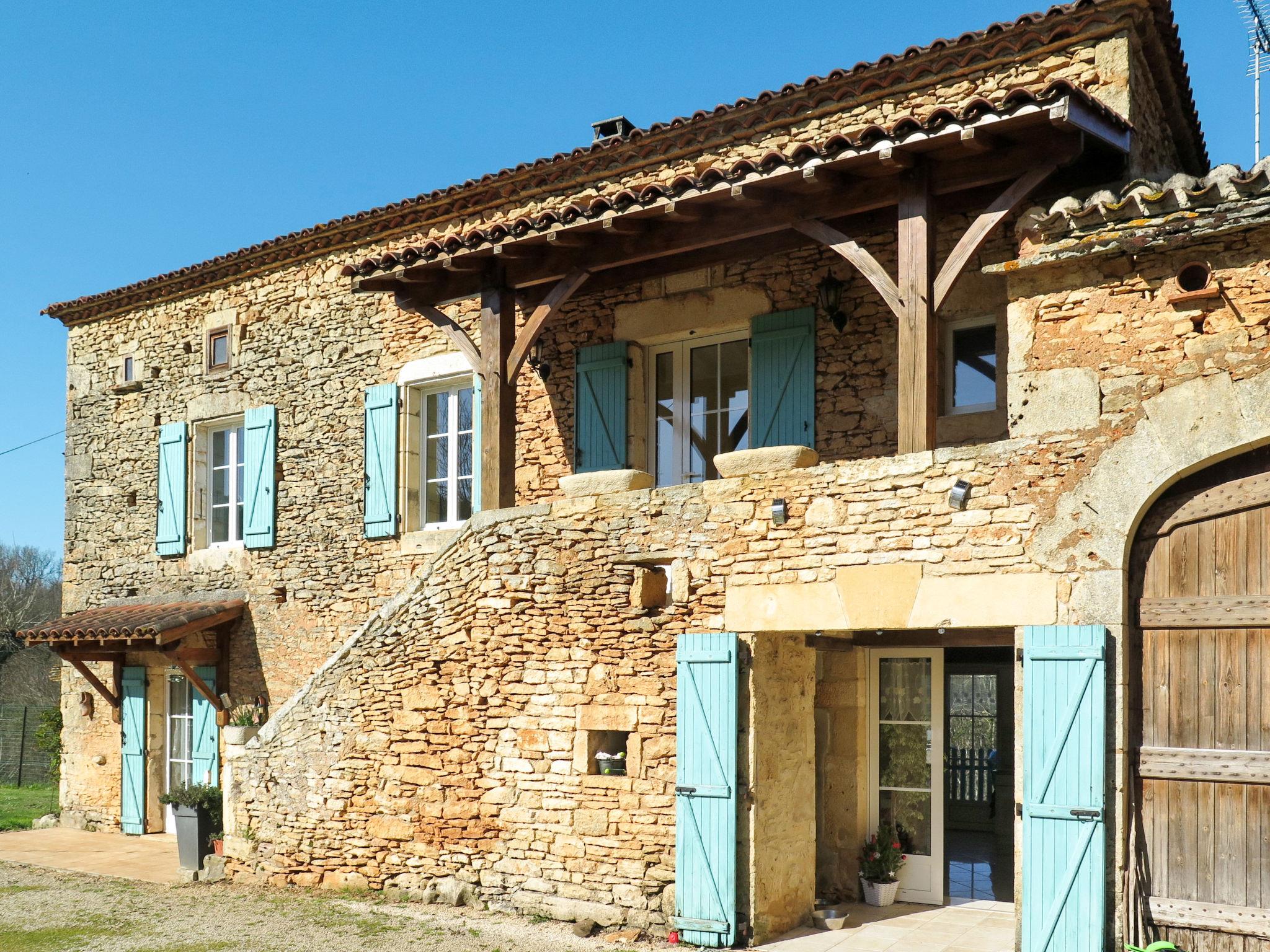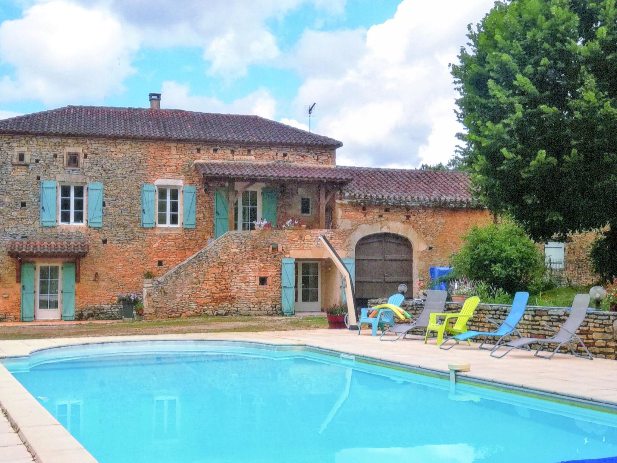 Rustic, comfortable country house "Les Grèzes", surrounded by trees and meadows. 2 km from the centre of Montcabrier, 3 km from the centre of Duravel, 7.5 km from the centre of Puy l’Évêque, in a secluded position, in the countryside. Private: large garden (fenced) with lawn 700 m2 trees, swimming pool (10 x 5 m, depth 100 - 170 cm, seasonal availability: 01.Jan. - 31.Dec.) with internal staircase and shutter cover. Table tennis, terrace, garden furniture. In the house: storage room for bicycles. Parking at the house on the premises. Shop 3 km, supermarket 7.5 km, bus stop "Fumel-Place du Postel" 12 km.