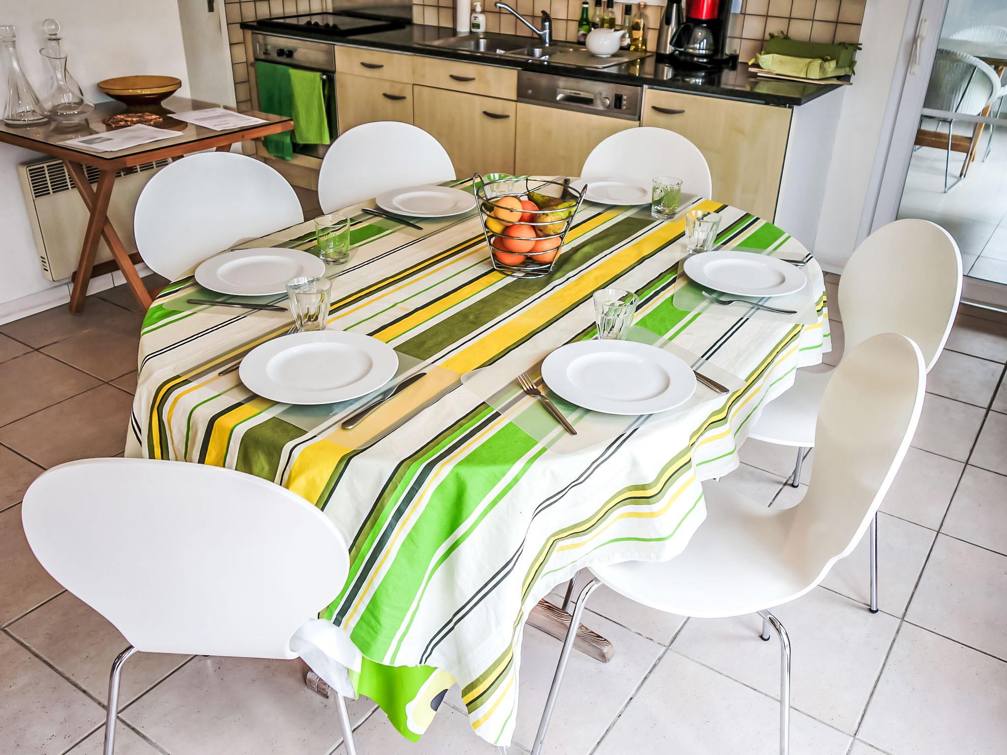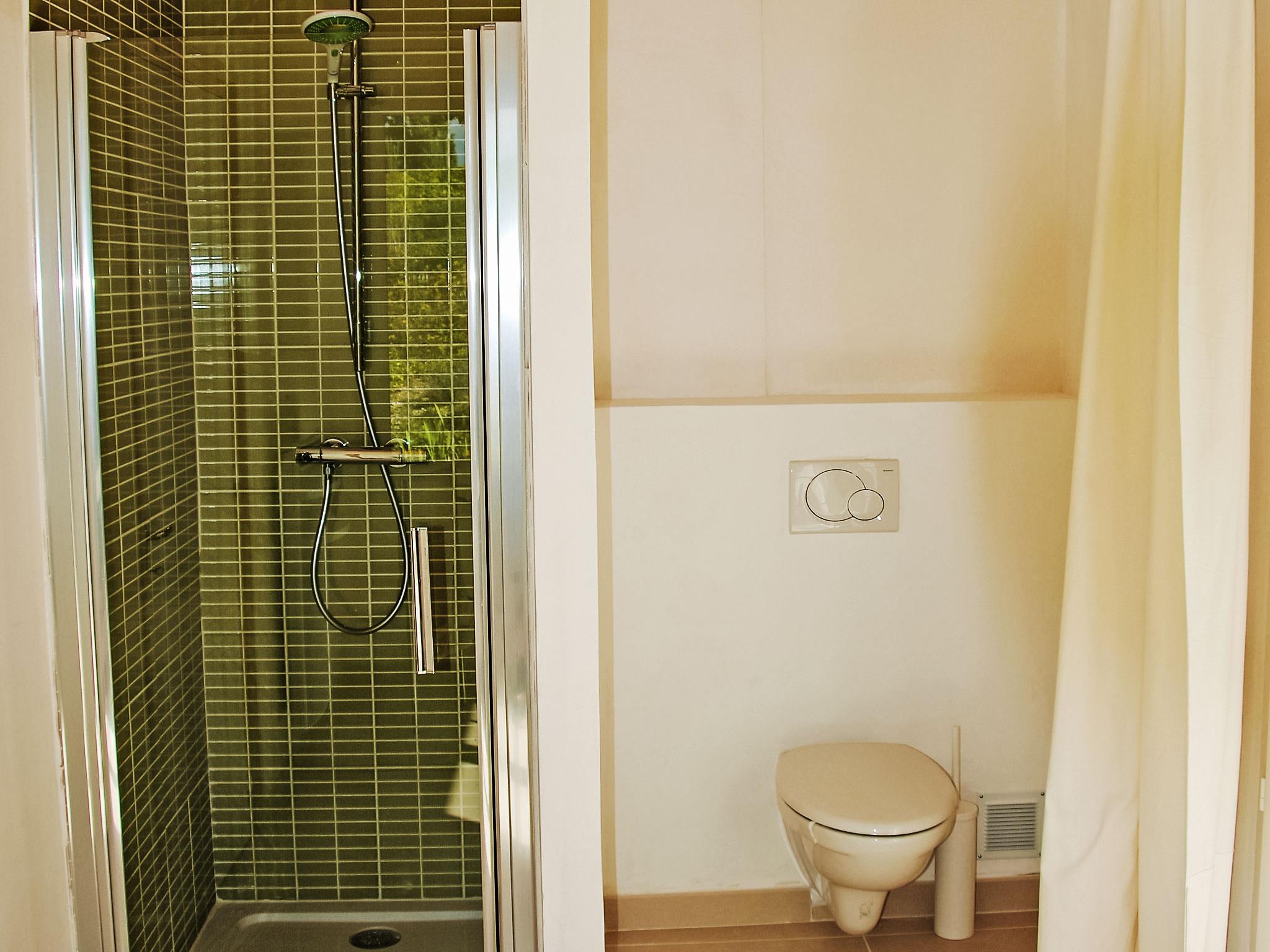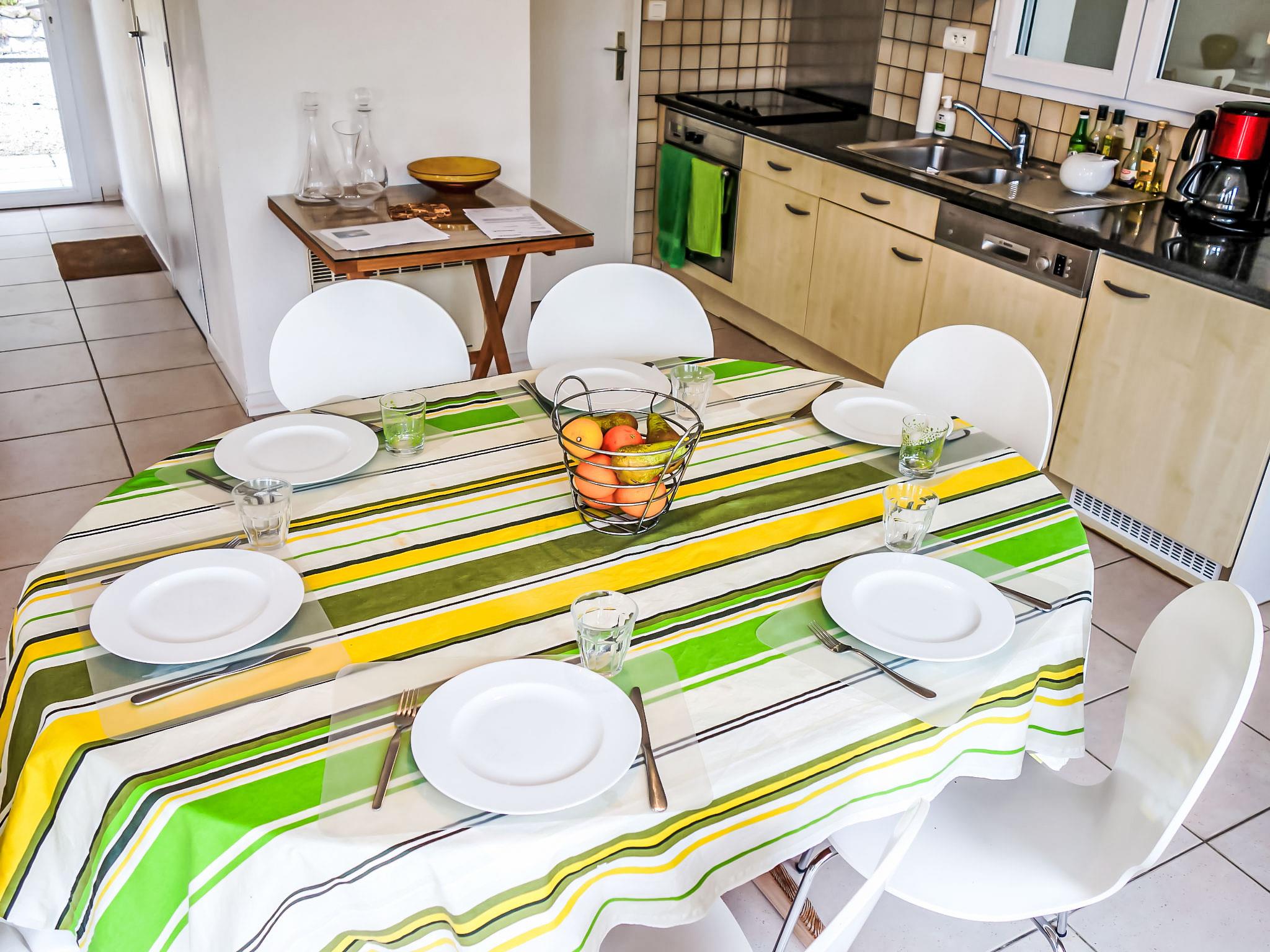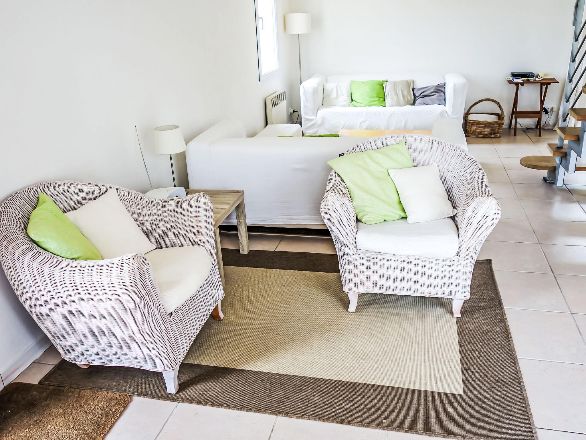 5-room house 150 m2 on 2 levels. Beautiful and cosy furnishings: living/dining room 60 m2 with satellite TV (flat screen). Exit to the terrace. Large lounge with panoramic window with open-hearth fireplace, shower/WC and satellite TV (flat screen). Exit to the terrace. Open kitchen (oven, dishwasher, 4 ceramic glass hob hotplates, toaster, kettle, microwave, electric coffee machine, Capsules for coffee machine (Nespresso) extra). Sep. WC. Upper floor: 1 room with 1 french bed (140 cm, length 190 cm). 1 children's room with 2 x 2 bunk beds (90 cm, length 190 cm). 1 room with 1 french bed (160 cm, length 200 cm). Bath/shower, sep. WC, double hand-basin. Electric heating (extra). Terrace 20 m2, roofed. Terrace furniture, barbecue (portable), deck chairs (8). Panoramic view of the countryside and the resort. Facilities: washing machine, iron, children's high chair, baby cot for up to 2 year olds. Internet (WiFi, free). Please note: suitable for families. Non-smoking house. Smoke alarm. Nespresso machine. Bose bluetooth home station.
