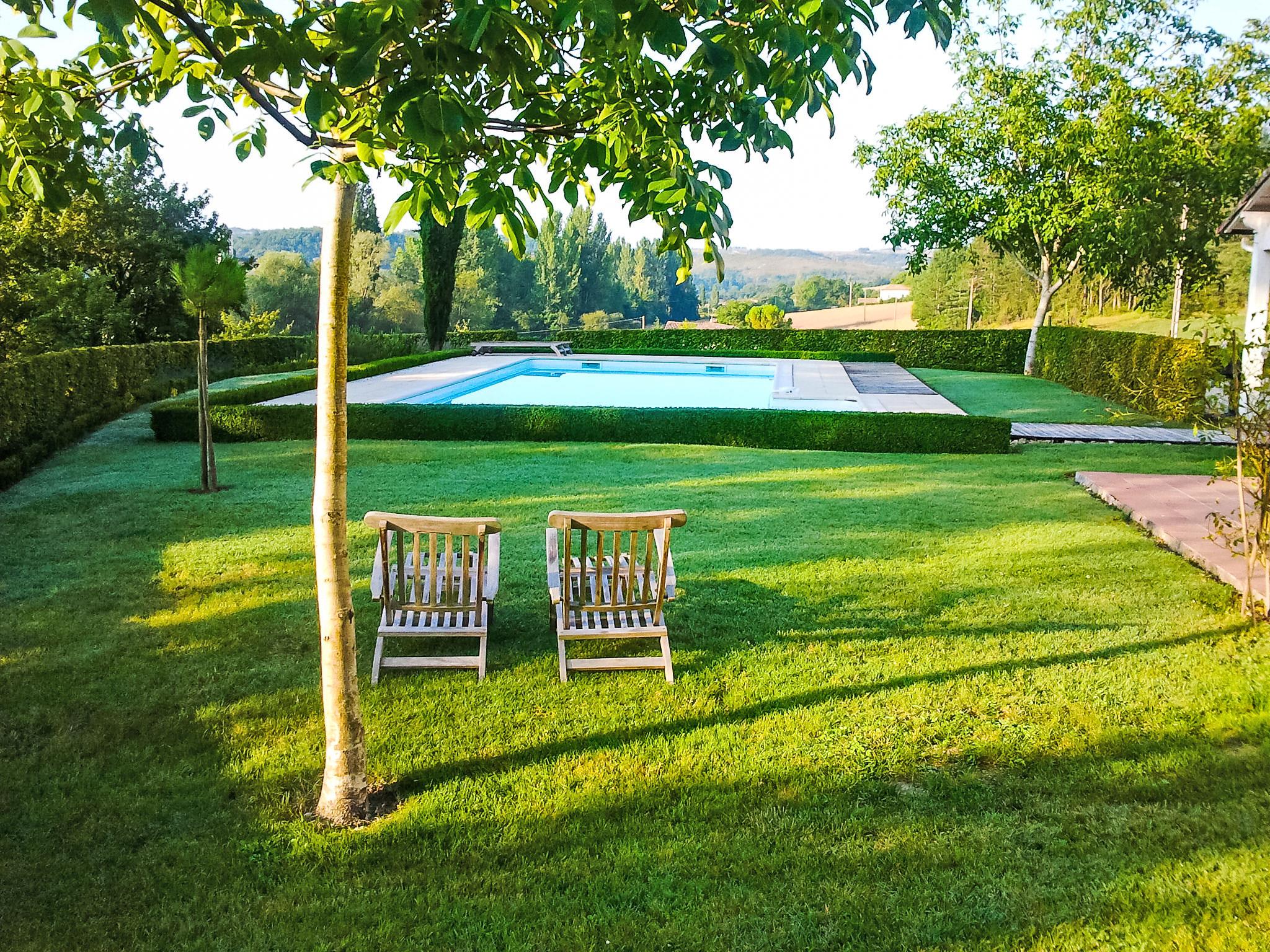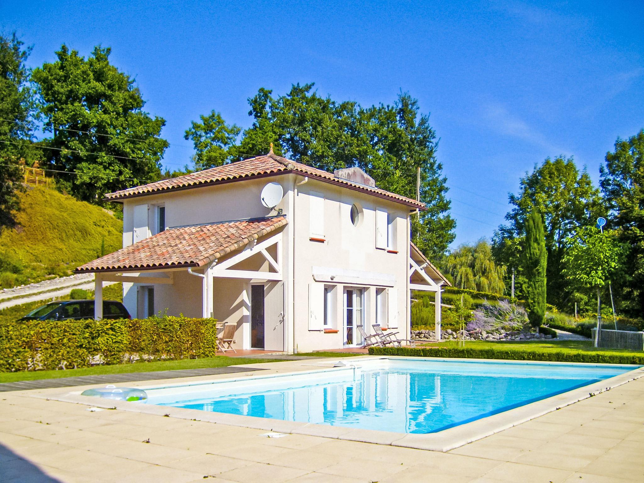 St Pantaléon 6 km from Montcuq: Single-family house "Lapeyriere". On the outskirts, 500 m from the centre, in a quiet position, in the countryside. For shared use: swimming pool (10 x 5 m, depth 100 - 250 cm, seasonal availability: 15.May. - 30.Sep.). Private: well-kept garden 500 m2 with flowers. Motor access (100 m via unmade road). Parking at the house on the premises. Shop 5 km, grocery 5 km, supermarket 5 km, restaurant 5 km, bus stop "Merle-Cahors" 14 km. Tennis 5 km. Nearby attractions: Cahors 20 km, Grottes de Lascaux 30 km, Sarlat 40 km, Gouffre de Padirac 50 km, Rocamadour 55 km. Please note: car recommended.