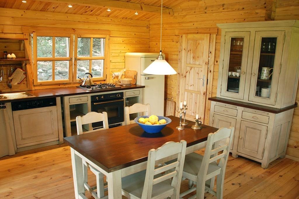 Hytten ligger omgivet af gamle egetræer og mimosaer i en mandelplantage. Den har plads til fire personer og kan prale af møbler af høj kvalitet. Ejendommen har også en gammel olivenmølle ved bækken og en økologisk cateringvirksomhed til de tidspunkter, hvor du ikke har lyst til at lave mad.