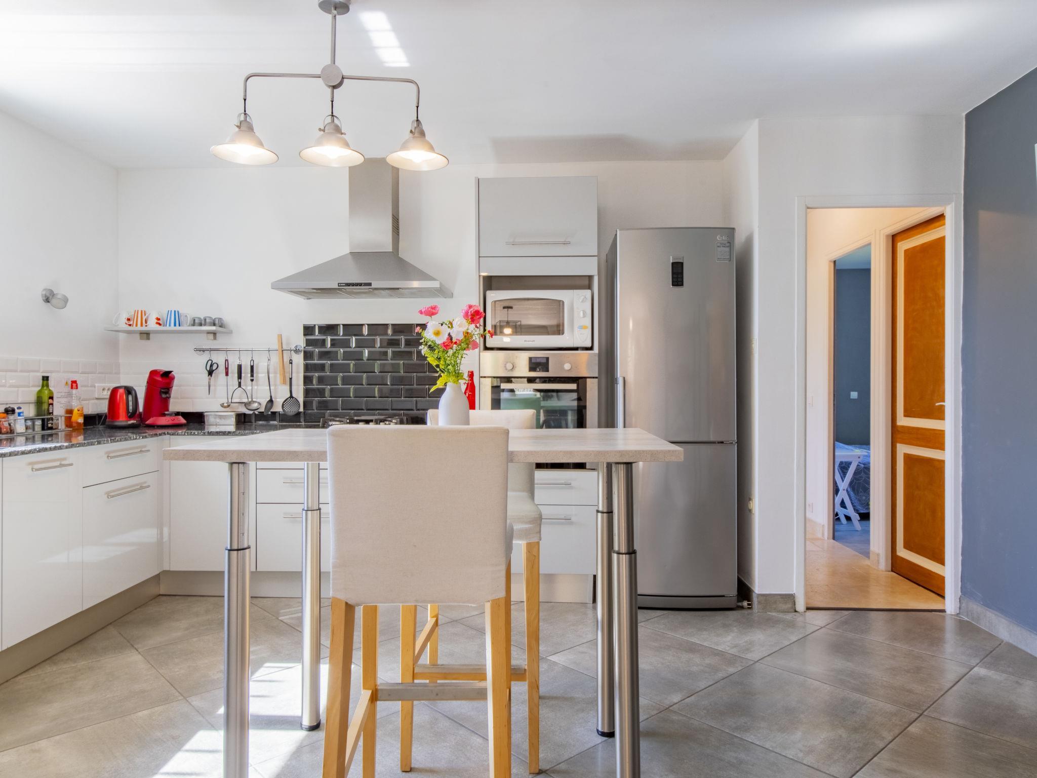 4-room house 120 m2. Comfortable and beautiful furnishings: living/dining room with TV (flat screen). Exit to the terrace. 1 room with 1 french bed (180 cm, length 200 cm). 1 room with 2 beds (90 cm, length 190 cm). 1 room with 1 french bed (140 cm, length 190 cm). Open kitchen (oven, dishwasher, 4 gas rings, toaster, kettle, microwave, freezer, electric coffee machine, Capsules for coffee machine (SENSEO) extra). Shower, sep. WC. Terrace roofed. Terrace furniture, barbecue, deck chairs (6). Facilities: washing machine, iron, children's high chair, baby cot for up to 2 year olds. Internet (WiFi, free). Please note: non-smoking house. Maximum 1 pet/ dog allowed. Smoke alarm. Offer by a private individual according to Art. 155, IV of CGI.