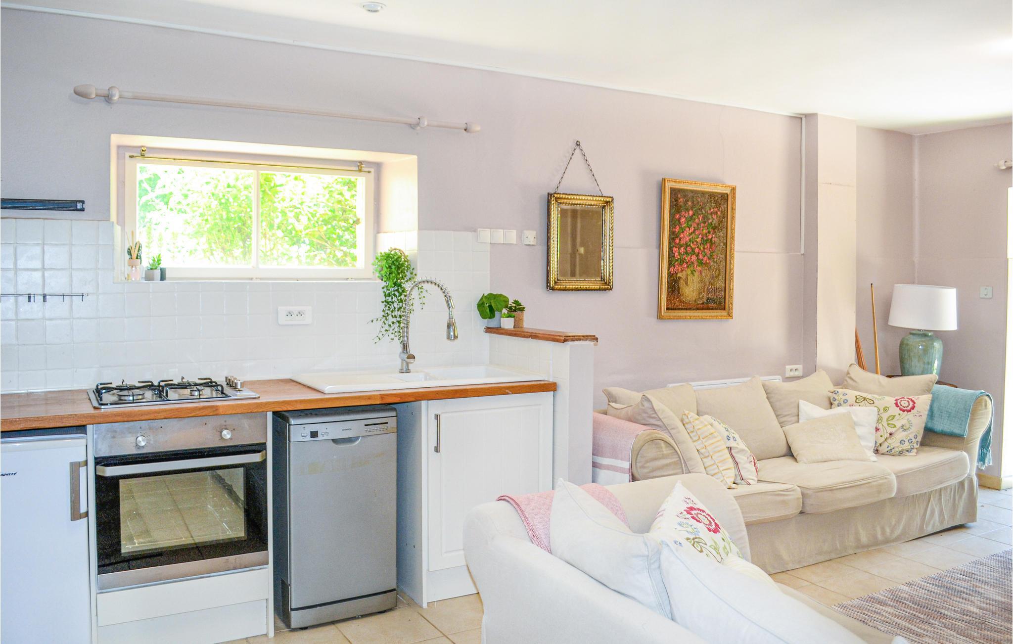 Dette charmerende naturstenshus fra 1800 med synlige bjælker og rå mure i flere rum er det perfekte domicil til jeres ferie i Frankrig.