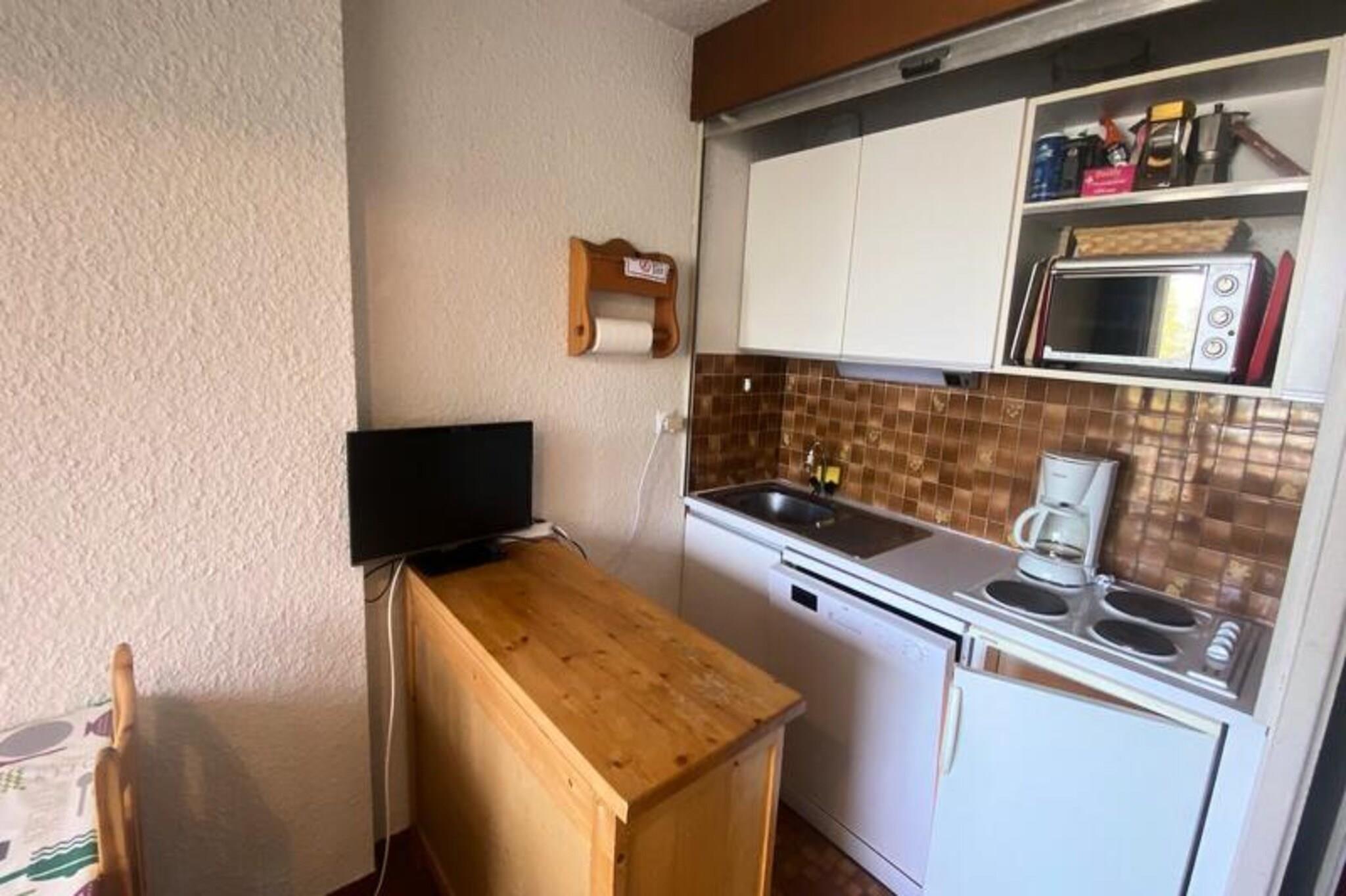 This cozy studio apartment, located directly on the ski slopes, offers 30m² of space for up to 4 guests. It features a separate mountain corner with 2 bunk beds and a convertible sofa in the living room, perfect for families or small groups. The apartment is non-smoking and does not allow pets, ensuring a clean and quiet environment. Guests will enjoy a south-east facing view of the slopes and a west-facing balcony with mountain views. The residence provides a reserved parking space, accessible by remote control, and an elevator for added convenience. The property is ideally situated for skiing enthusiasts, with ski-in/ski-out access and proximity to the Clot ski lift (50m) and Prarial chairlift (80m). For those new to skiing, the ESF and Club Piou Piou are just 80m away. A restaurant and snack bar are located on the ground floor, while additional shops and eateries can be found 450m away. The Durancia Nuxe Aquatic Center and Spa is only 200m from the residence, accessible via a free ski bus. The central reservation office is 100m from the snow front for easy key collection. The apartment includes a fully equipped kitchen with a refrigerator, dishwasher, hotplates, microwave, and coffee maker. The bathroom features a bathtub, sink, bidet, and towel rack, while the separate WC adds convenience. A ski locker is provided for your gear, and guests can also access a shared basement room with billiard tables, ideal for socializing or relaxing after a day on the slopes.