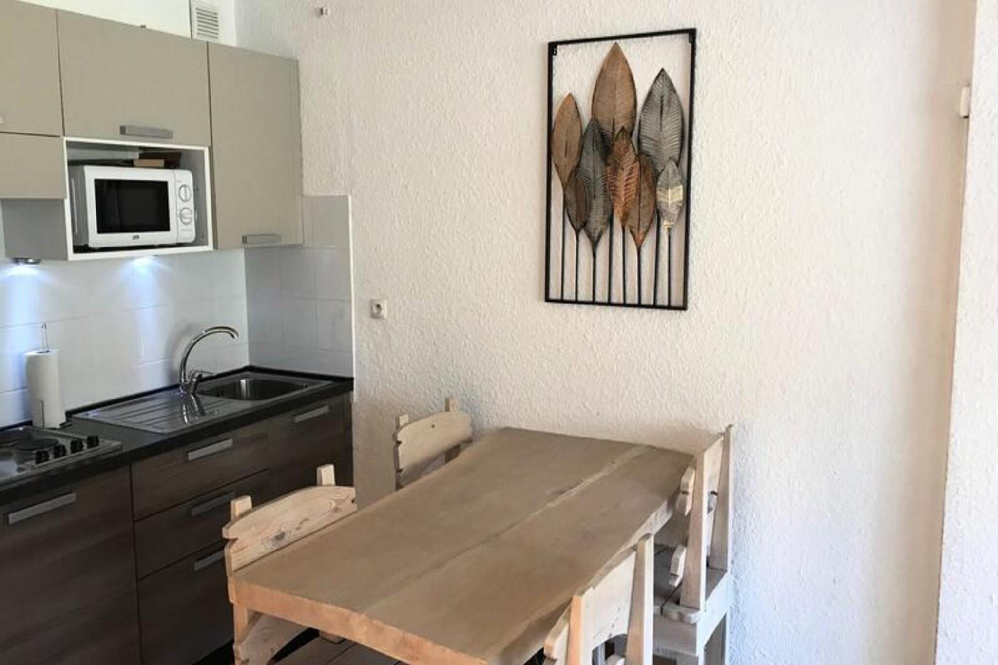 This renovated studio apartment comfortably accommodates up to 4 guests with two bunk beds and a “rapido” sofa bed. It is pet-friendly, allowing one pet for an additional fee. The apartment offers a balcony with beautiful views of the slopes, a ski locker for storage, and private parking with remote access. The property is non-smoking, ensuring a clean and fresh environment throughout the stay. Located just a short distance from the slopes, the apartment offers direct ski access and is close to ski lifts. Guests can enjoy convenient amenities like a restaurant/snack bar on the ground floor and a variety of shops and eateries only 450m away. Durancia Nuxe Aquatic Center and Spa is just 200m from the apartment, and a free ski bus provides easy transportation around the area. Additional services like ski pass discounts and balneotherapy deals at the agency are also available. The apartment comes equipped with a fully functional kitchen, including a microwave, dishwasher, raclette machine, and all necessary kitchenware. The bathroom features a walk-in shower, bidet, electric towel dryer, and ample storage. For added convenience, guests can enjoy a washer dryer, ironing board, and storage cupboard for supplies. Optional services like linen rental and Wi-Fi are available upon request.