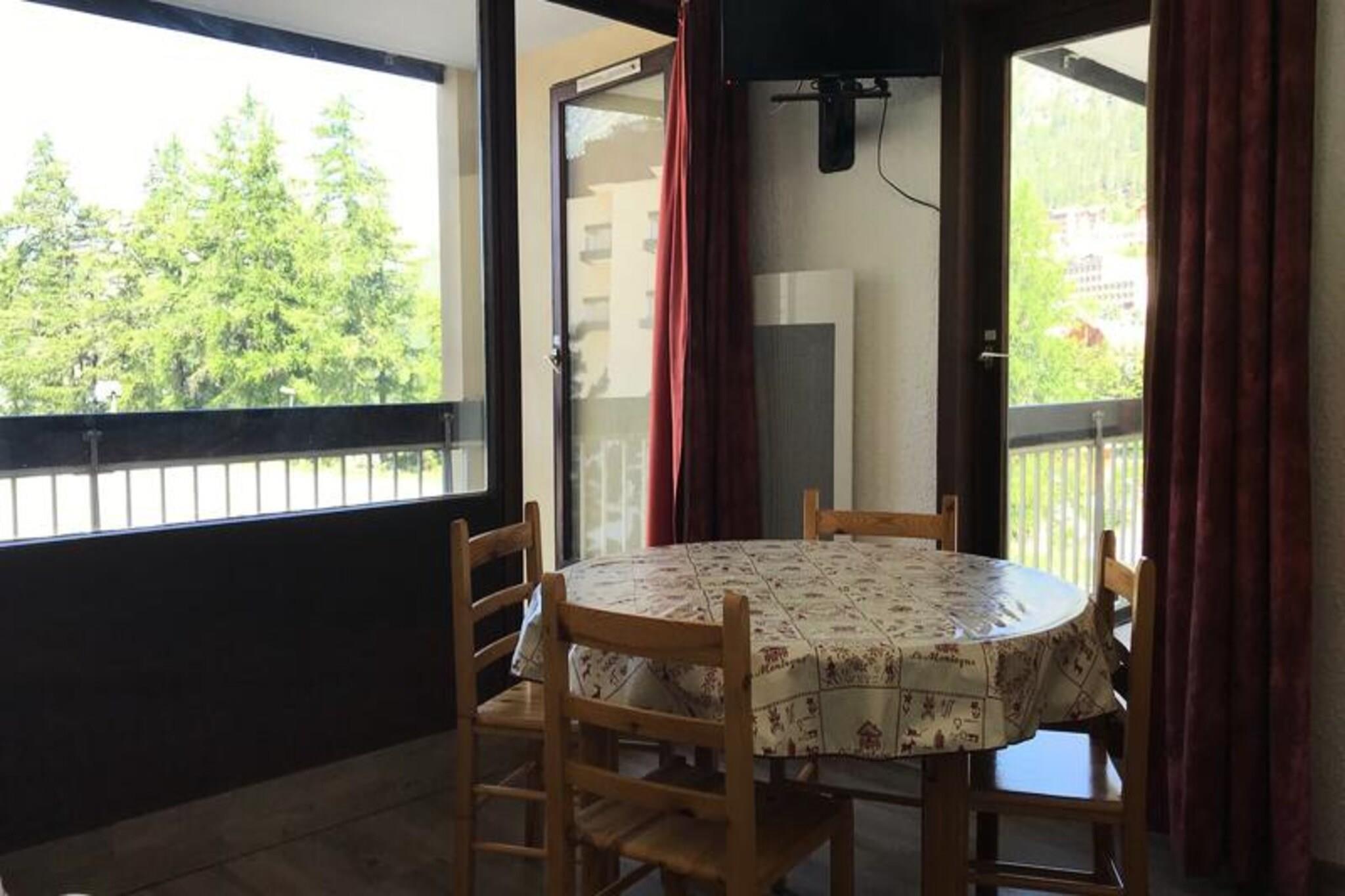 Denne hyggelige studielejlighed er ideel til op til fire personer, med et layout, der inkluderer et bjerghjørne med køjesenge til to og en sovesofa i stuen. Lejligheden byder på moderne komfort med et tv, en spiseplads til fire og en privat balkon med udsigt over bjergene. Kæledyr er velkomne, og ejendommen omfatter et skiskab og privat parkering forbeholdt beboerne. Lejligheden ligger på første sal og er røgfri for alle gæsters komfort. Denne lejlighed har en bekvem beliggenhed og giver direkte adgang til pisterne, med ESF og Club Piou Piou kun 80 meter væk og de nærmeste skilifter, inklusive Clot og Prarial, kun 50 til 80 meter fra din dør. En gratis skibus tager dig til det nærliggende Durancia Nuxe Aquatic Center and Spa, som ligger kun 200 meter væk. Til shopping og spisning er der en superette 450 meter væk, og der er en restaurant/snackbar i stueetagen af ??bygningen. Inde i lejligheden har det fuldt udstyrede køkken en keramisk kogeplade med 4 brændere, mikroovn, opvaskemaskine og forskellige apparater til at tilberede måltider. Badeværelset har en nyrenoveret brusekabine, vaskeskab, spejl og væghængt elektrisk håndklædetørrer. Yderligere tjenester såsom liftkort, leje af udstyr og rabatter på den nærliggende spa er tilgængelige. Senge- og håndklæder samt slutrengøring er ikke inkluderet, men kan bestilles på forhånd.