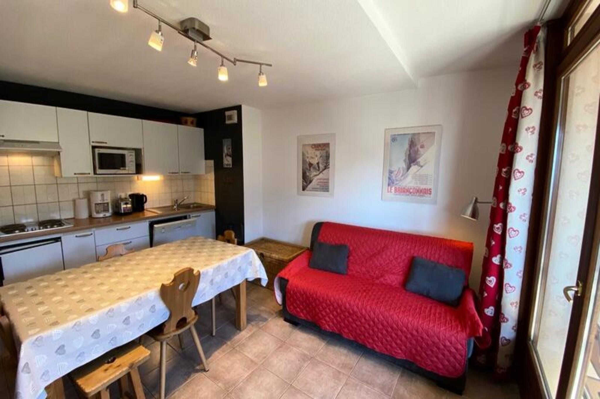 This spacious 41 m² apartment is perfect for up to 4 people, offering a comfortable stay with a double bedroom and a mountain corner with bunk beds, separated by a door. The living room features a sofa, TV, and dining area with seating for four, creating a cozy space for relaxation and meals. The apartment is non-smoking and pet-friendly, with a large south-facing balcony that offers stunning views of the slopes and Mount Janus. A ski locker is provided for your convenience, and outdoor parking is reserved for the residence. A deposit is required upon arrival. The apartment is ideally located, with easy access to local attractions. The free skibus stops in the residence parking lot, making it convenient to reach the slopes and the ESF & Club Piou Piou, just 800 meters away. Nearby, you’ll find a superette, shops, restaurants, a pharmacy, and a bus station all within 800 meters. The Durancia Nuxe Aquatic Center and Spa, located 1.5 km away, offers relaxation and wellness services, and the central reservation office is only 800 meters from the apartment. The fully equipped kitchen includes a fridge, dishwasher, microwave, 4 electric hotplates, coffee maker, kettle, and toaster, ensuring a comfortable stay for preparing meals. The bathroom features a spacious shower cubicle with a sink and a wall-mounted towel dryer. Additional services, such as bed linen, towels, and end-of-stay cleaning, can be arranged for an extra fee. The apartment also offers access to a shuttle, ensuring easy transport throughout the resort.